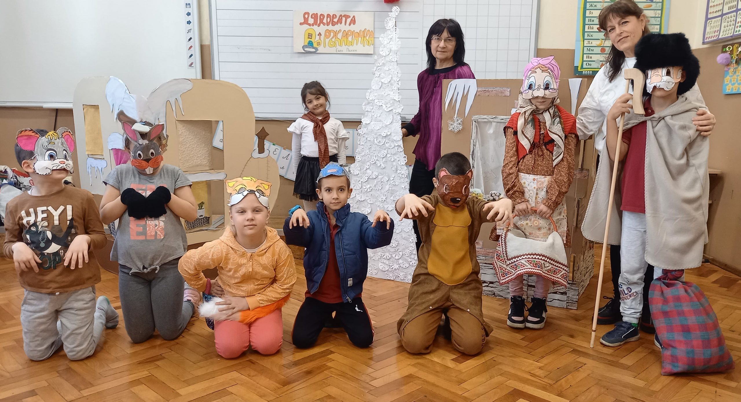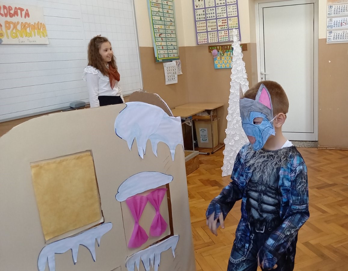 С огромно желание и проявена артистичност, начинаещите актьори репетираха почти всеки ден .Децата бяха разделени на три групи и всяка от тях изнесе представление пред малчуганите от подготвителната група и ученици от 1б и 1в клас. Навсякъде бяха посрещнати и изпратени с бурни овации. Малките ученици се запознаха и визуално с автора на приказката – Елин Пелин и видяха нов вариант за края й. Децата от 1а клас разбраха, колко е сериозен трудът на артиста. Колко е дълга подготовката и репетициите, и колко кратко е самото представление. С голям интерес публиката следеше играта на артистите, слушаше разказа на разказвача и търсеше поуката в приказката. Стигнаха до идеята, че щом животните, които са врагове в природата, могат да живеят заедно, значи и хората могат да бъдат задружни.