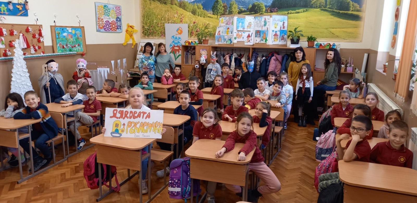 1 март е Денят на самодееца и любителското художествено творчество. По този повод учениците от 1а клас представиха драматизация на приказката „Дядовата ръкавичка“ по Елин Пелин. Цели два месеца отне подготовката за представлението. В часовете за занимания по интереси всеки самодеец самизработи маска на своя герой. С голямо въодушевление учениците нарисуваха приказната „Дядова ръкавичка“ и подредиха творбите си на изложба в класната стая. С помощта на ръководителите си Розалия Нанкова и Нели Събева изработиха декорите. Малките творци много бързо влязоха в ролята на избрания от тях герой. За това голяма заслуга имат и родителите с намиране на подходящ костюм.