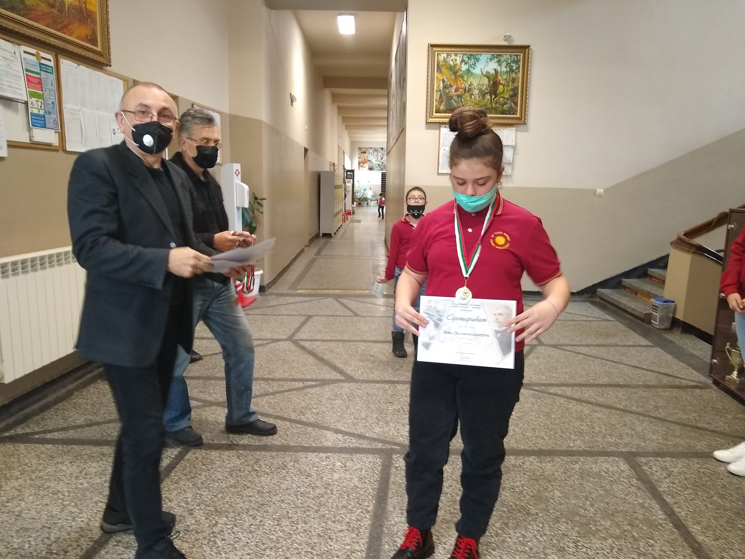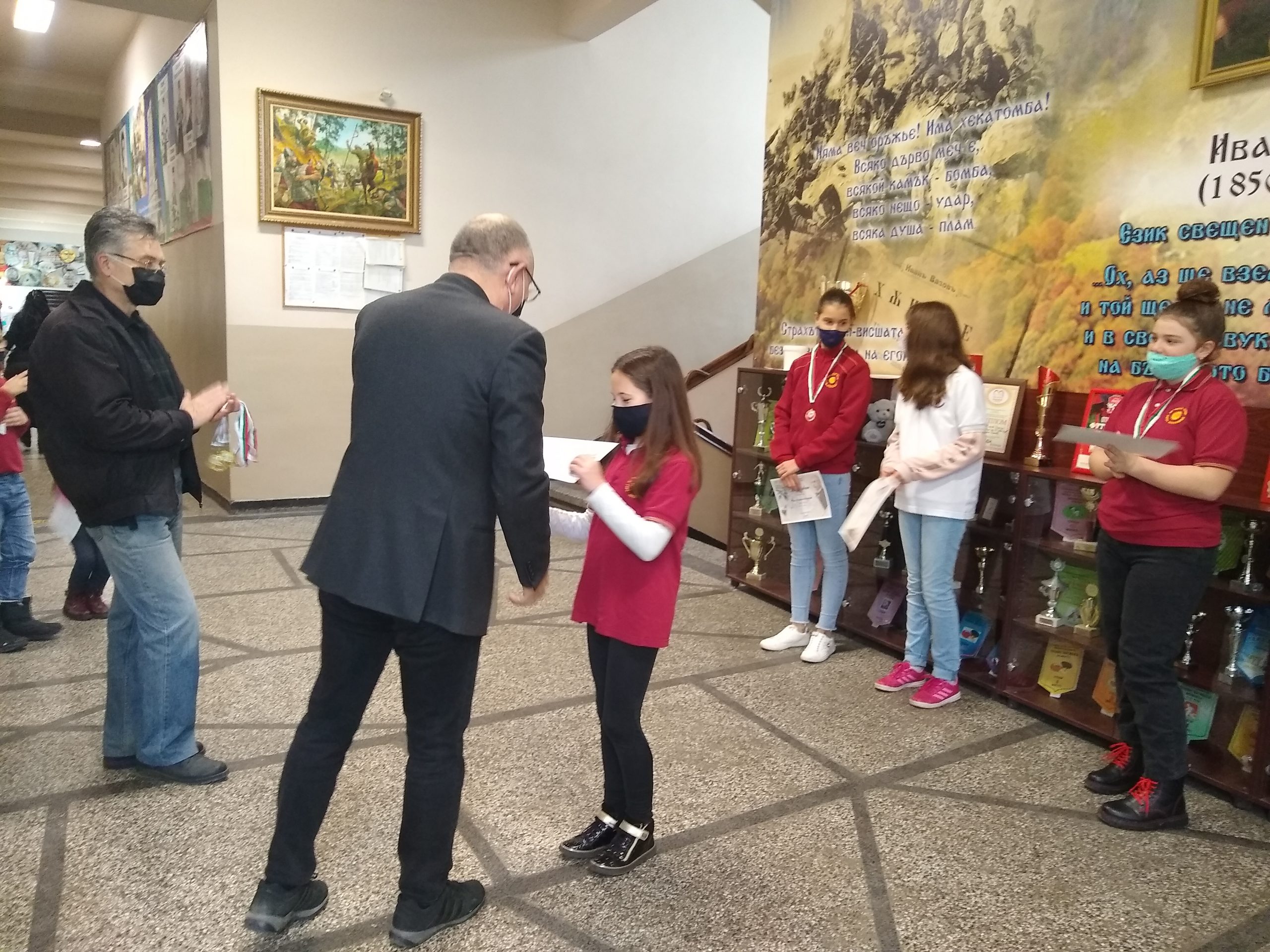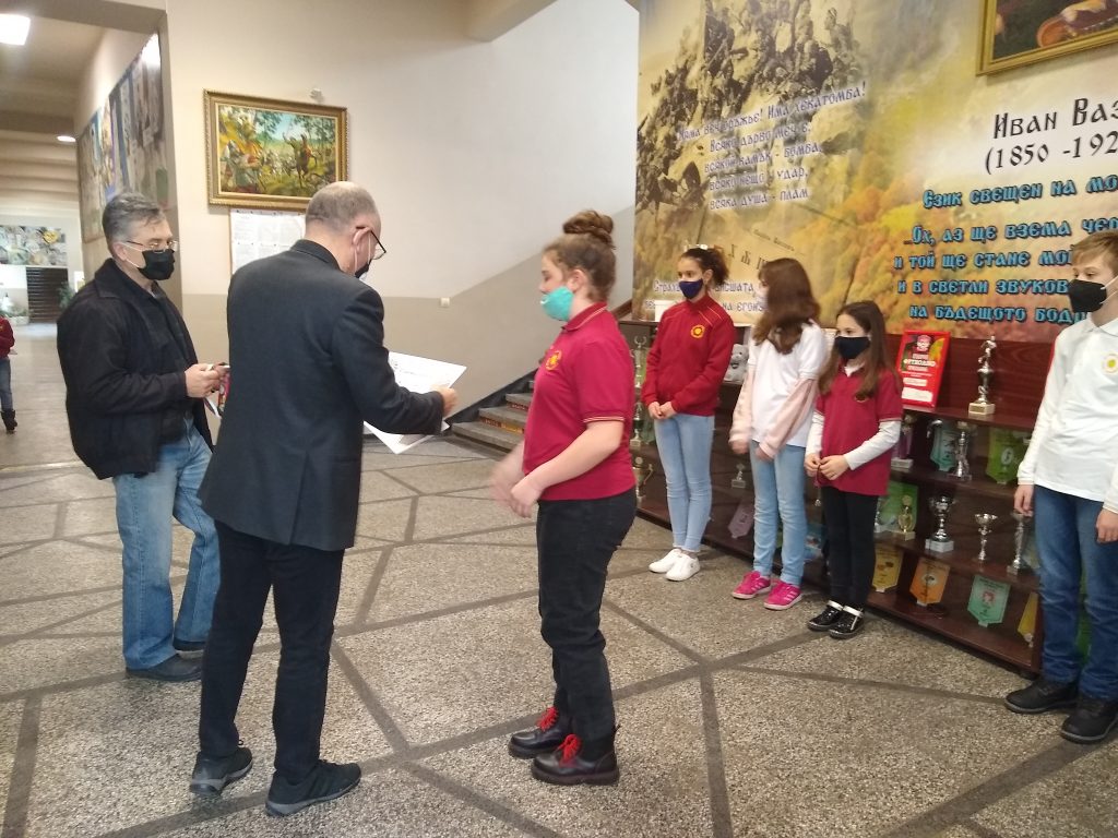 На специална церемония Директорът на училището –  г-н Момъков с радост връчи 5 златни и 7 бронзови медали и грамоти за отлично представяне на учениците от прогимназиален етап на основното образование.