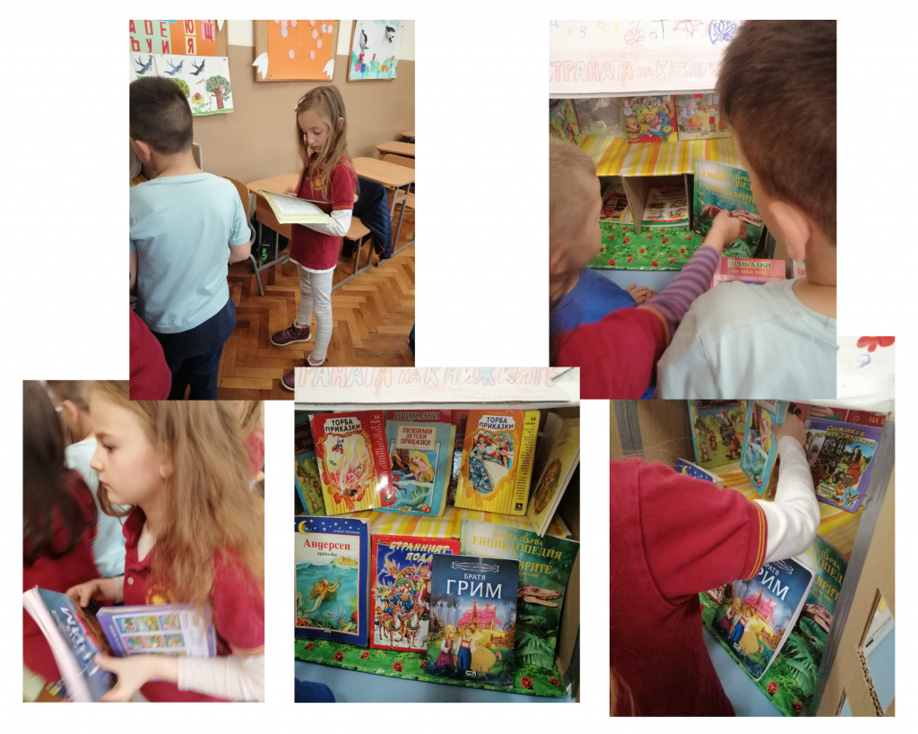 Малчуганите от I „а“ клас отбелязаха Международния ден на детската книга – 2 април. Празникът се свързва с рождената дата на писателя Ханс Кристиан Андерсен, който казва, че „единственият начин да си щастлив, е да си полезен на света“..  Освен фантастични картинки, някои детски приказки „рисуват“ много истини и ценни уроци, които е хубаво да ни бъдат припомняни. Заедно с класния си ръководител – госпожа Стойка Цонева, учениците изработиха книжки и книгоразделители.   Цяла семица в следобедните часове, малките ученици от 1 „а“ клас създаваха в класната стая своя малка библиотека. Сами я украсиха и изпълниха с интересни книжки. Всяко дете донесе по една или няколко, за да ги сподели с другарчетата си. Първокласниците с интерес не само разглеждат, но и четат детските книжки, защото вече знаят буквичките. Заедно с техния ръководител Албена Тодорова, малките ученици имат още многом идеи за декорация на тяхната библиотека. Ще носят още книжки и вече са готови да влязат смело в „Къщата на книжките“. Обещават да ги пазят и да не спират да четат.