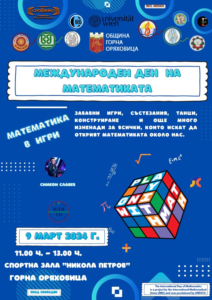 За втора поредна година Горна Оряховица ще бъде част от Международния ден на математиката на 9 март 2024 г. в Спортна зала „Никола Петров от 11.00 часа до 13.00 часа