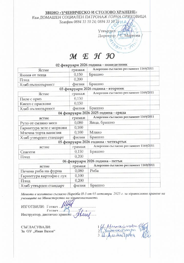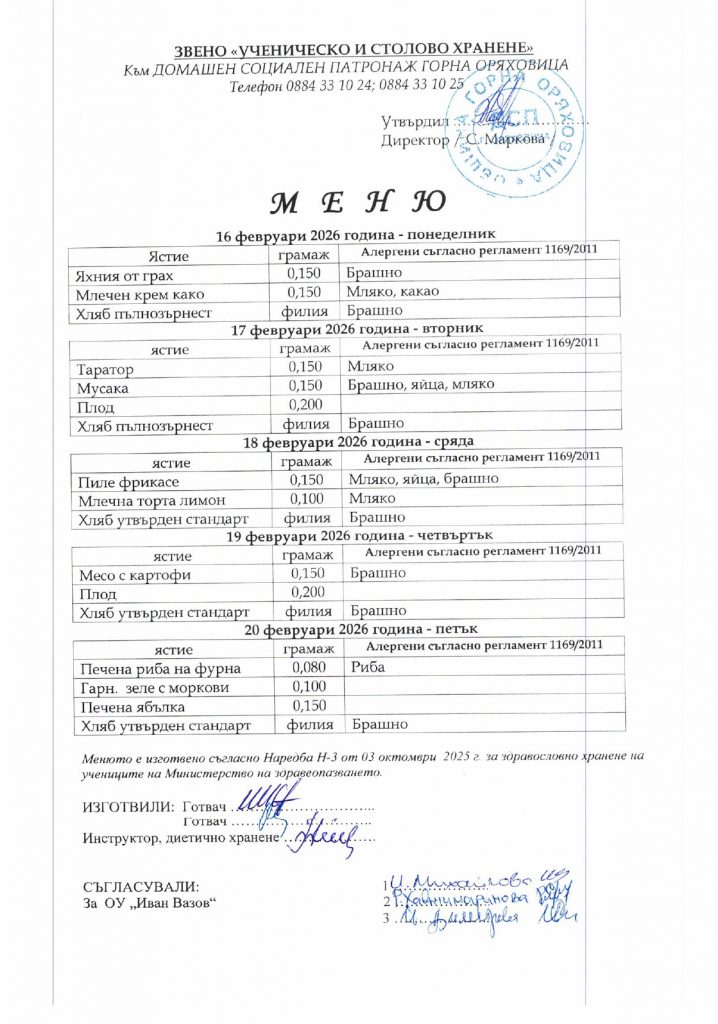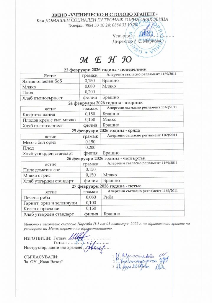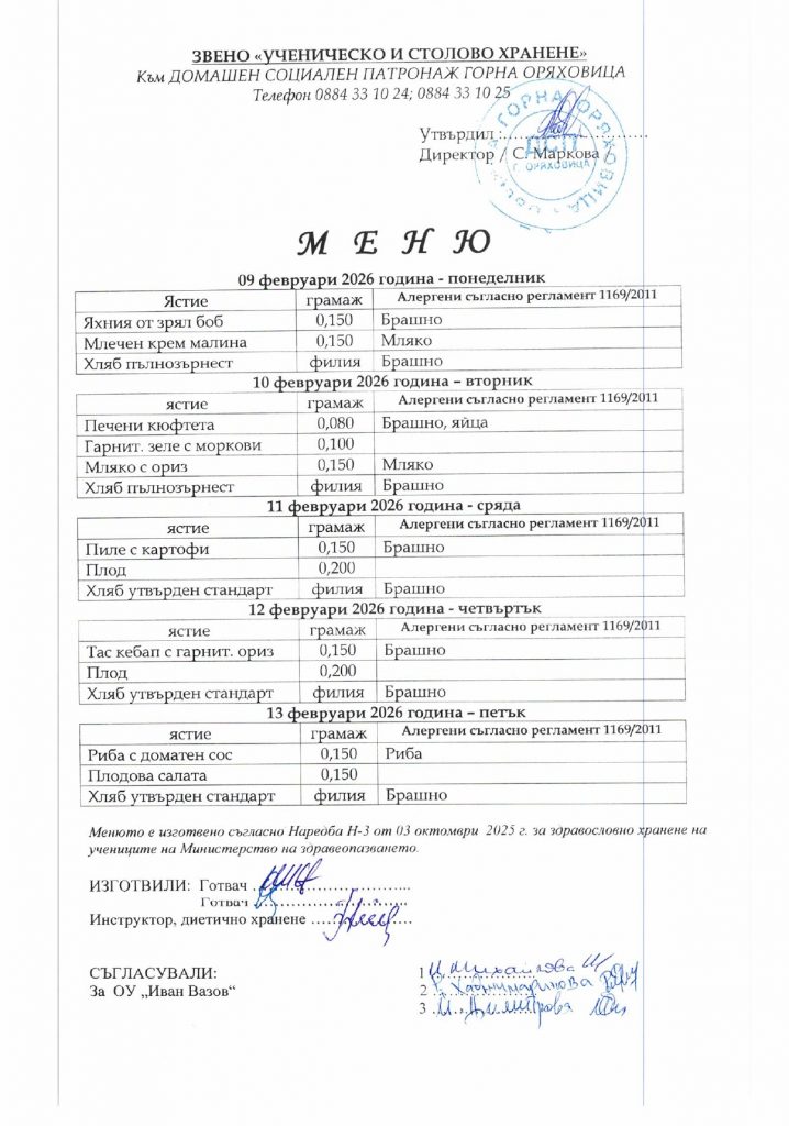 Звено „Ученическо и столово хранене“ – гр. Горна Оряховица