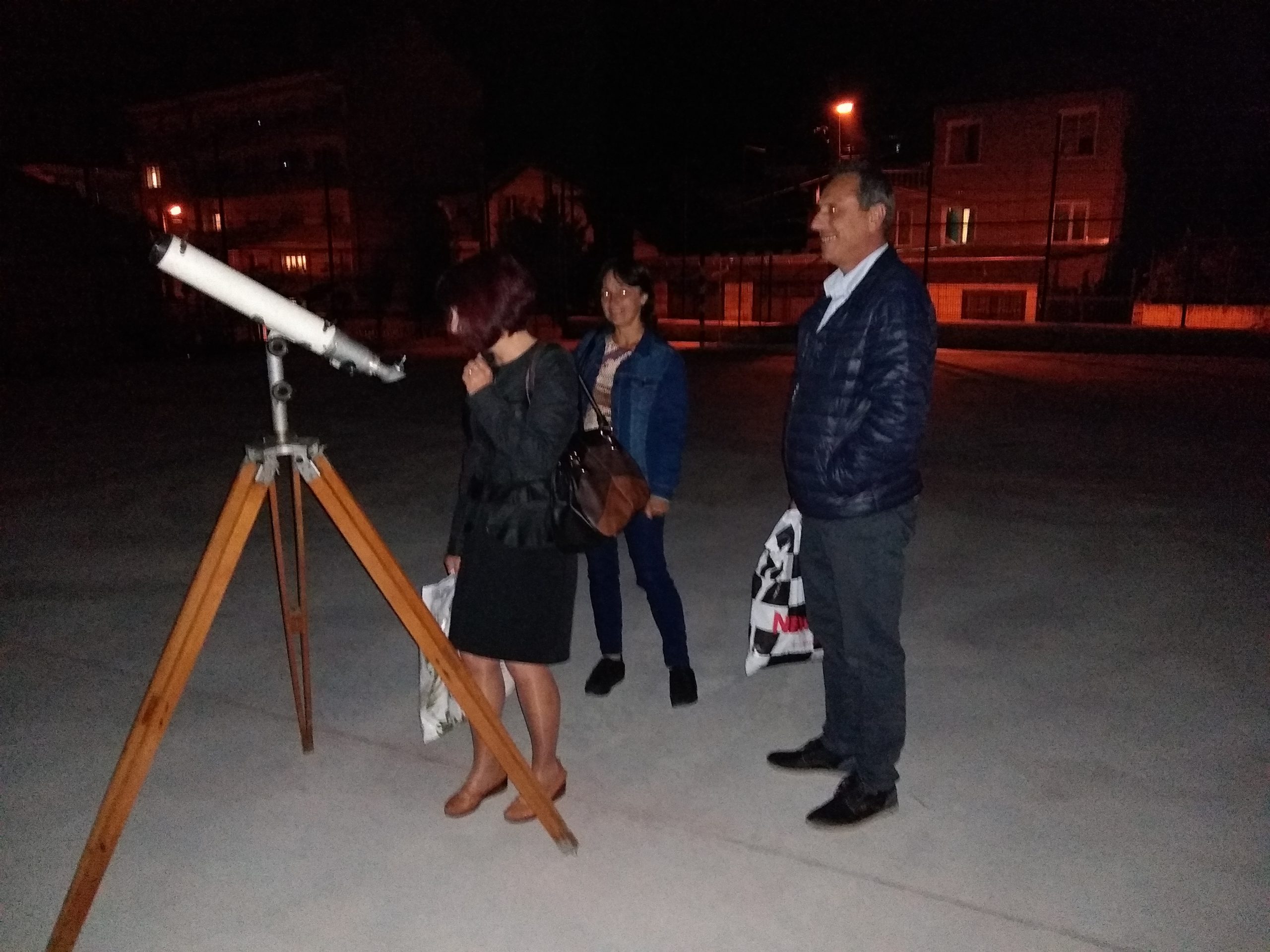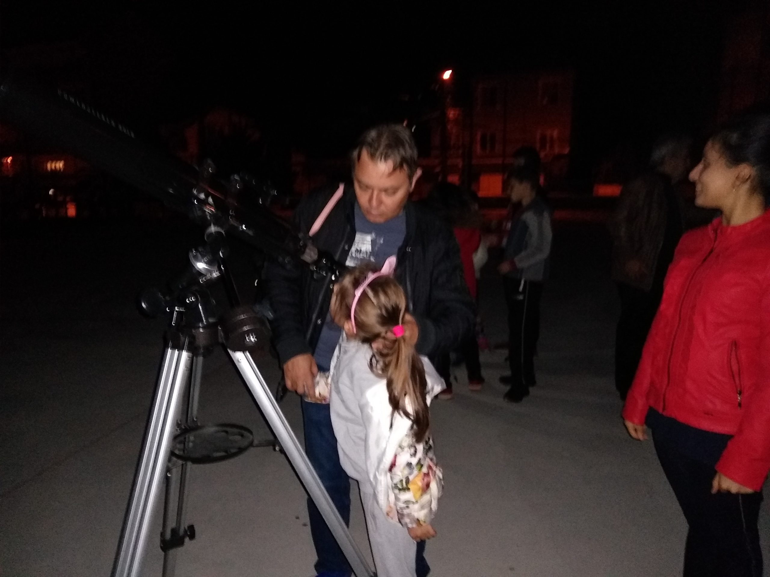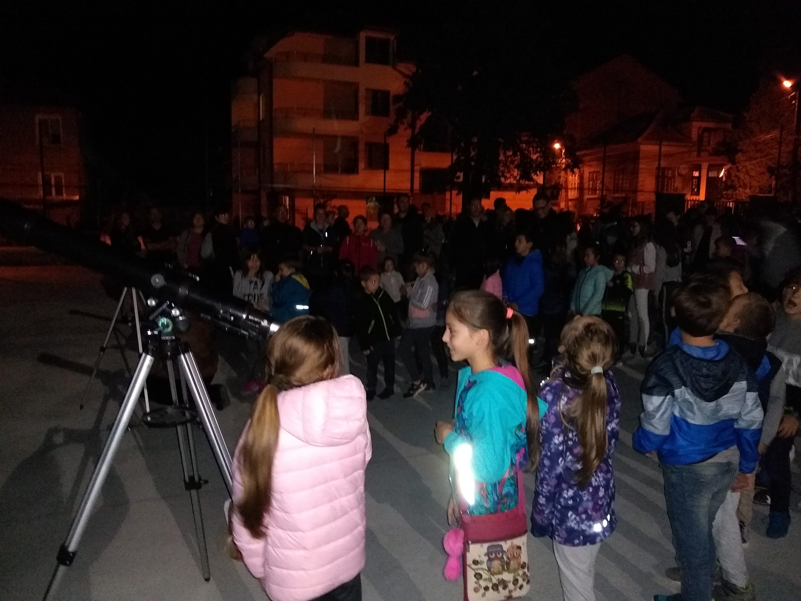 В международния ден на ученика – 15 октомври 2020 г., ученици, родители и учители от ОУ „Иван Вазов“ превърнаха училищния двор в площадка за вечерно астрономическо наблюдение. В нощното небе през есента могат да се видят много красиви обекти, сред които лесно се различават не само звездите. Две ярко греещи тела, които можем да видим с невъоръжено око, са планетите Юпитер и Сатурн.