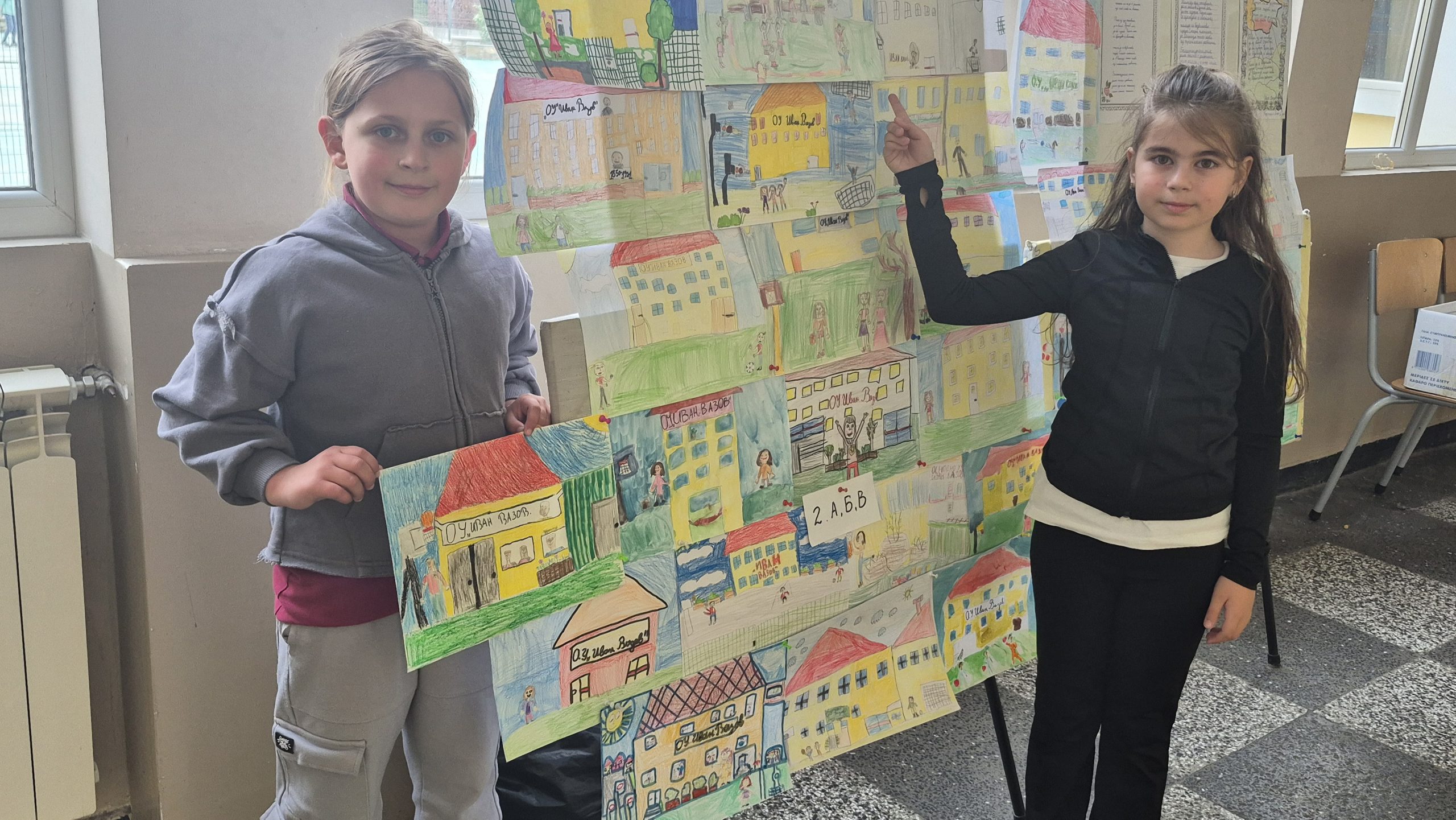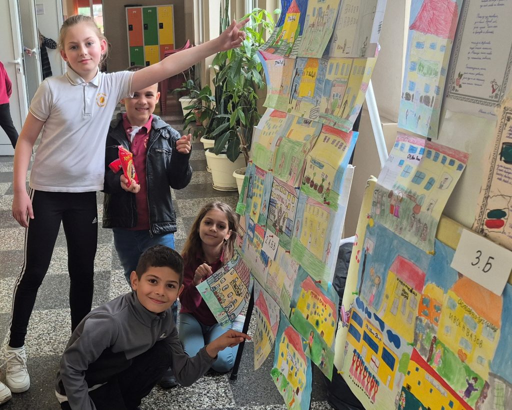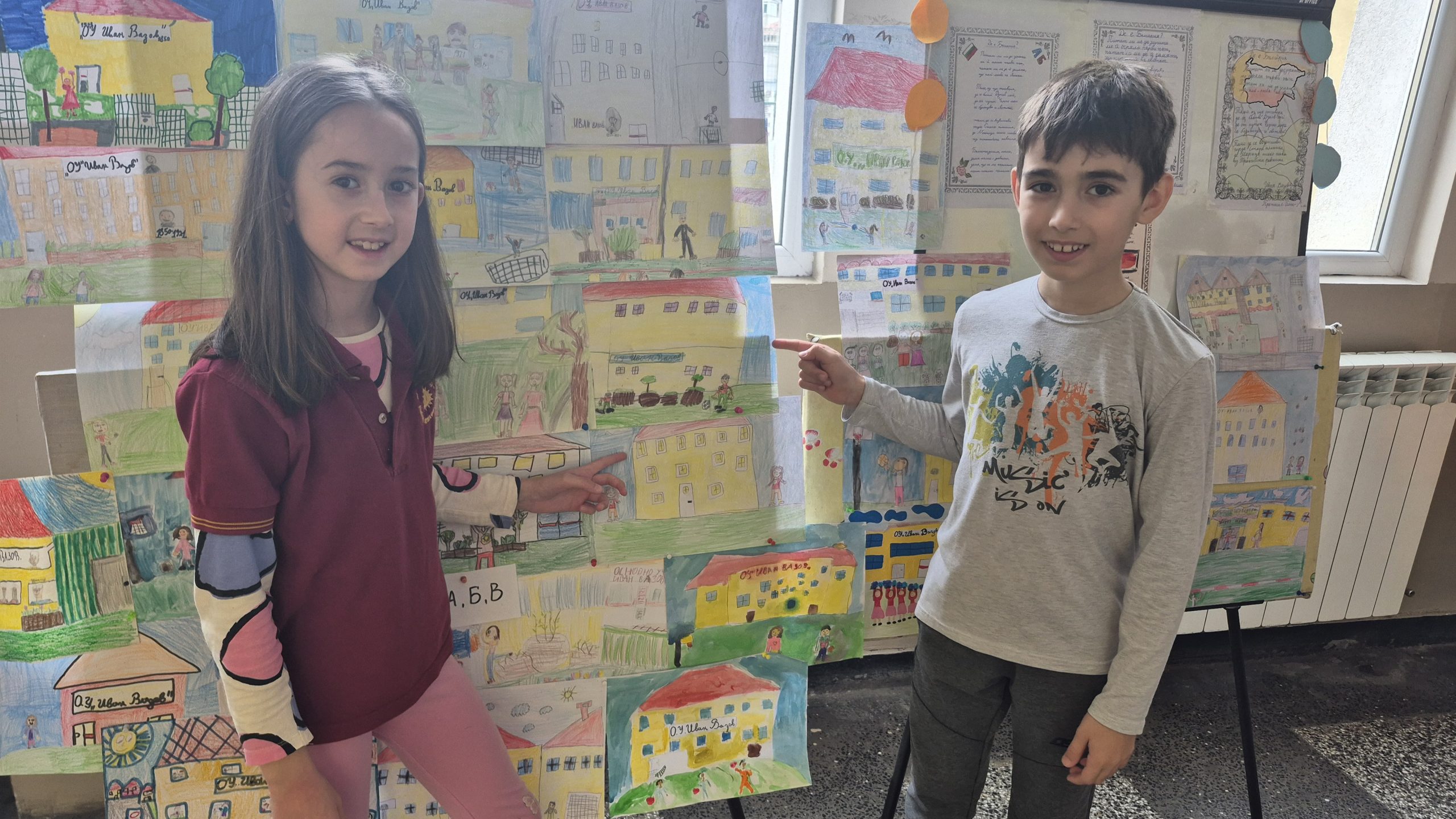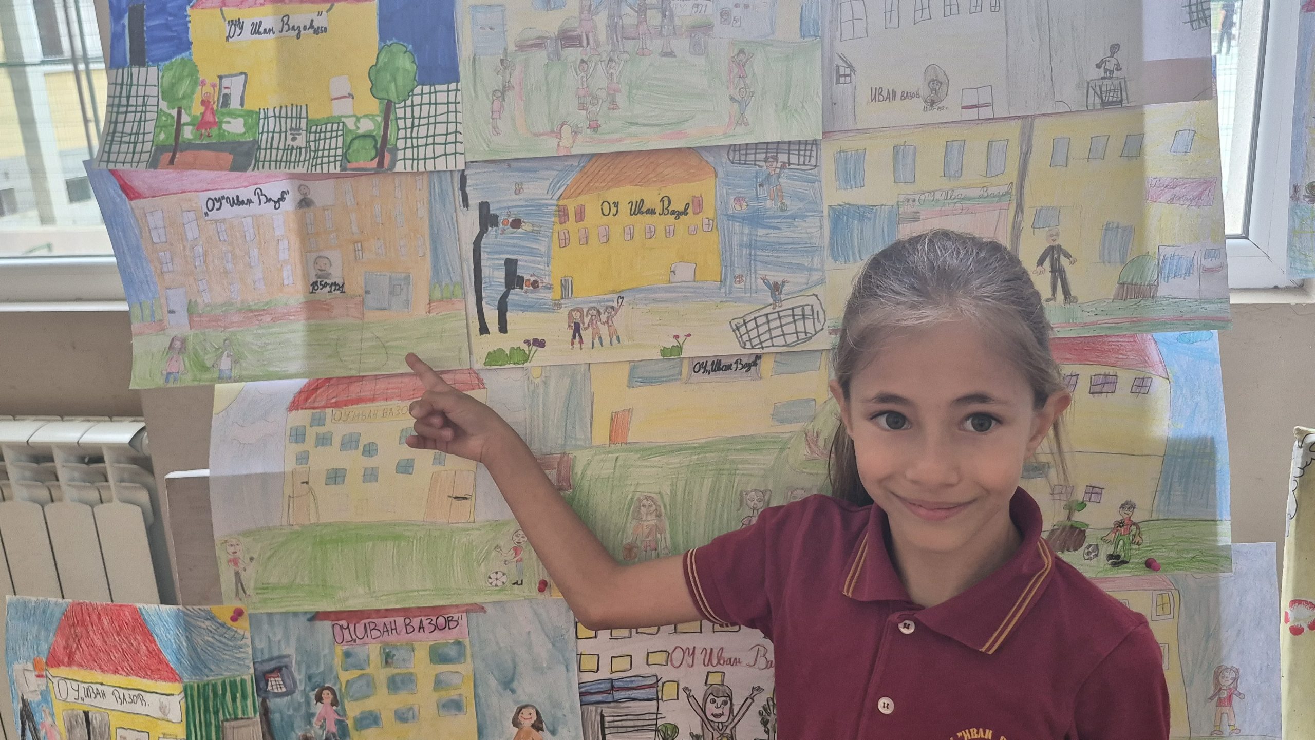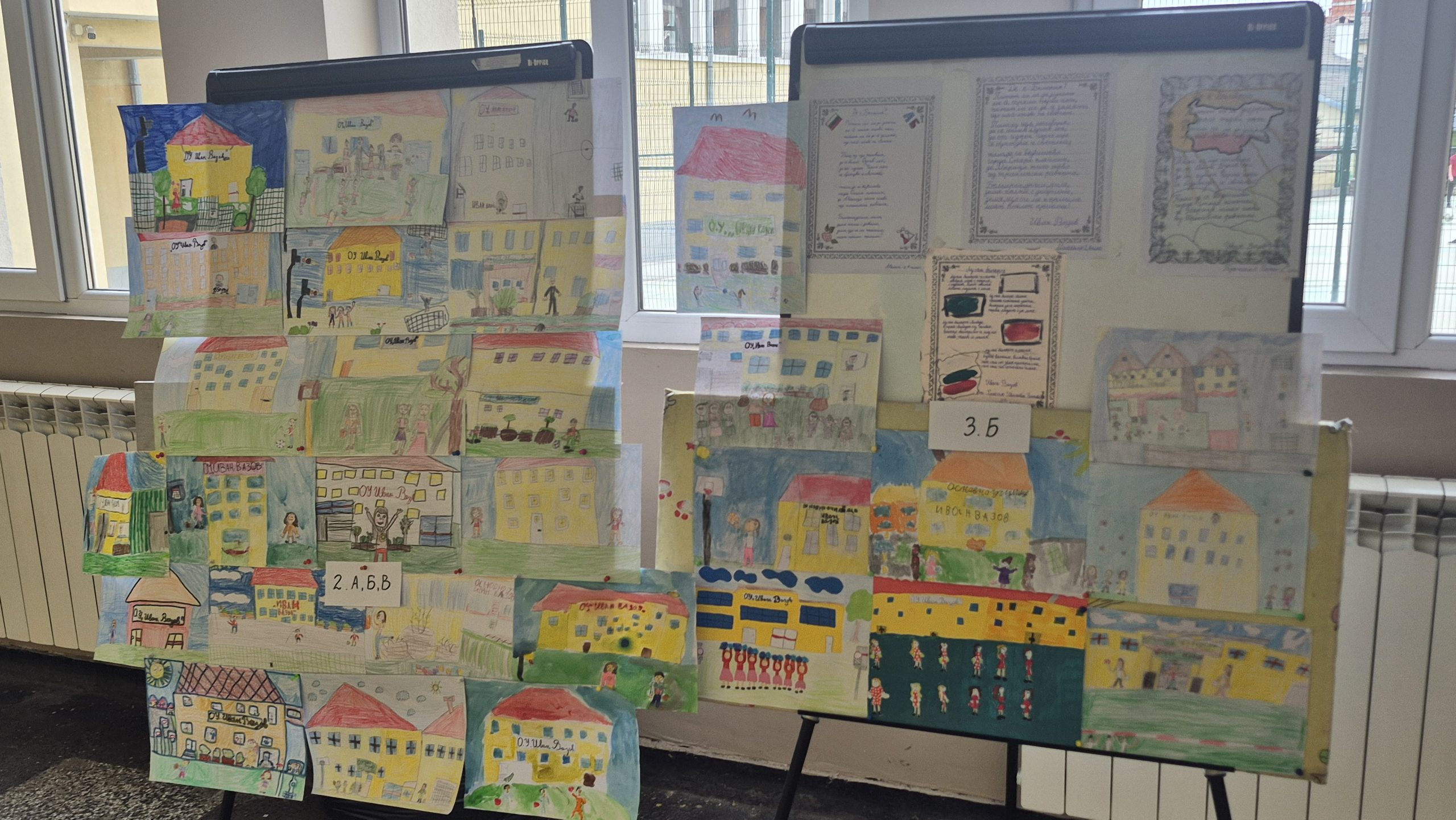 По повод празника на ОУ „Иван Вазов“ учениците от 2. А, Б, В и 3. Б клас с учителя по изобразително изкуство Розалия Нанкова нарисуваха и подредиха изложба по темата „Моето училище празнува“.