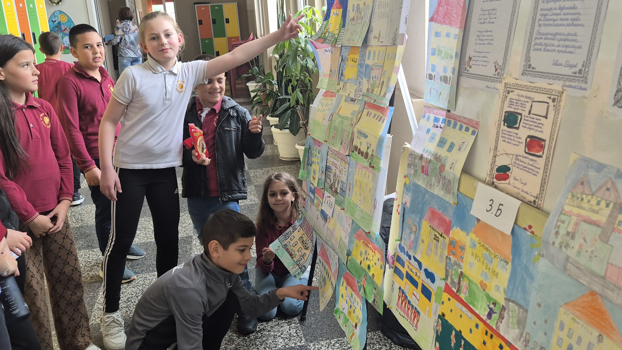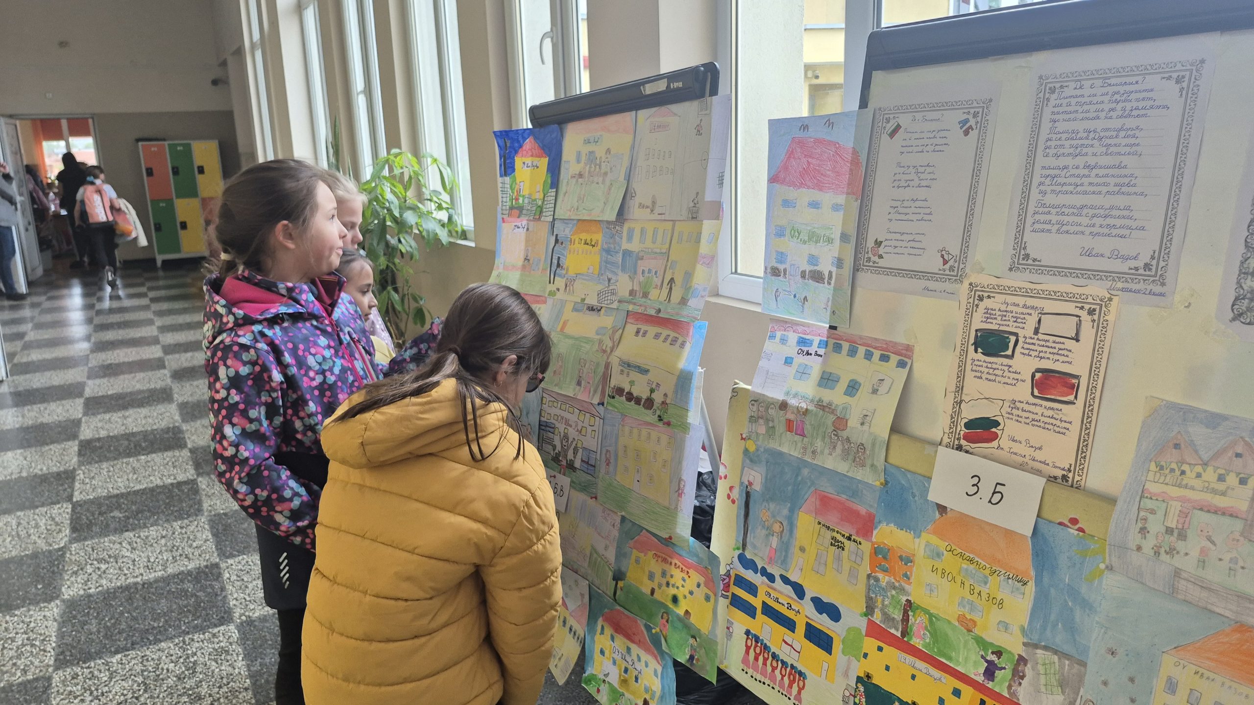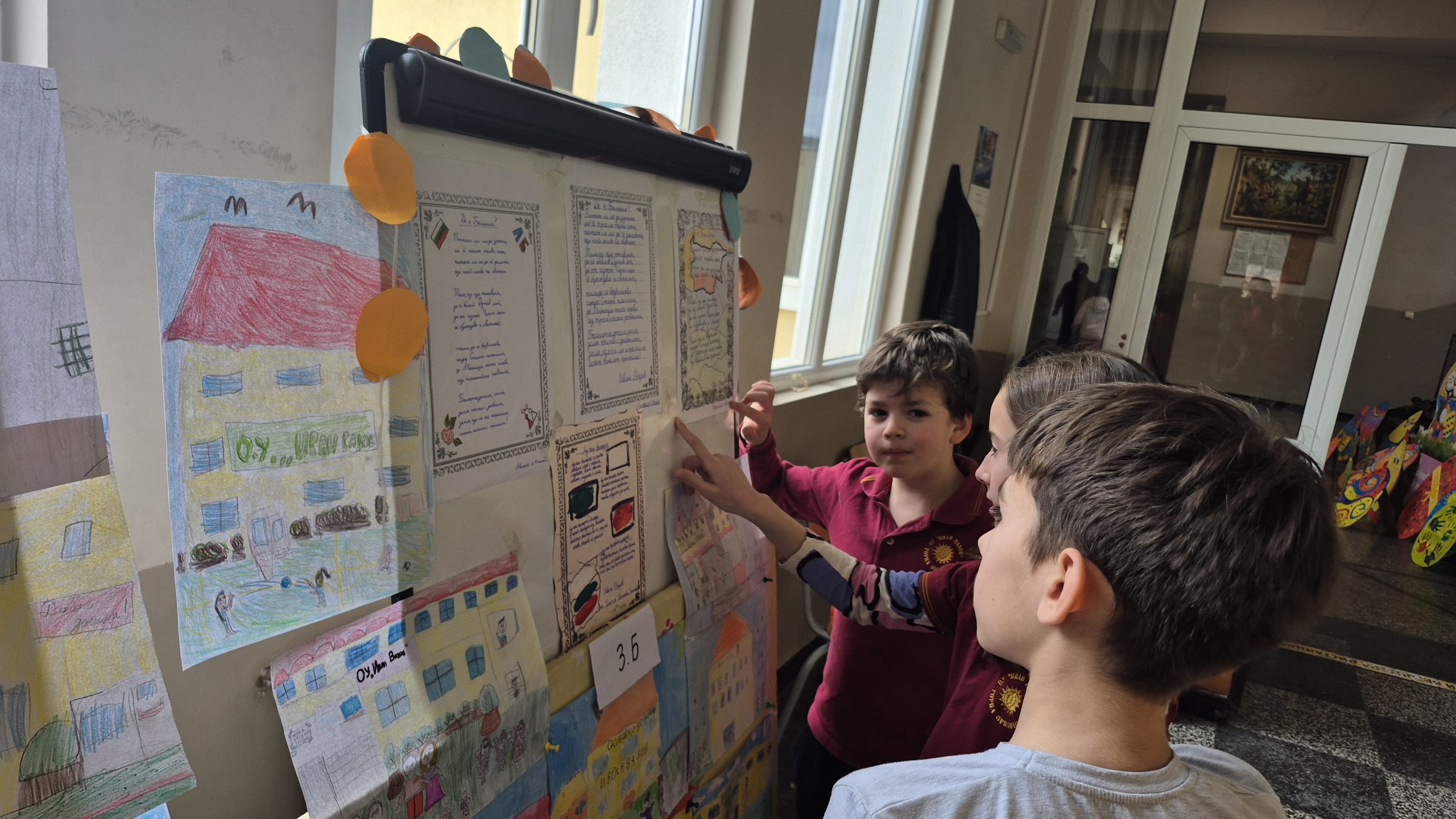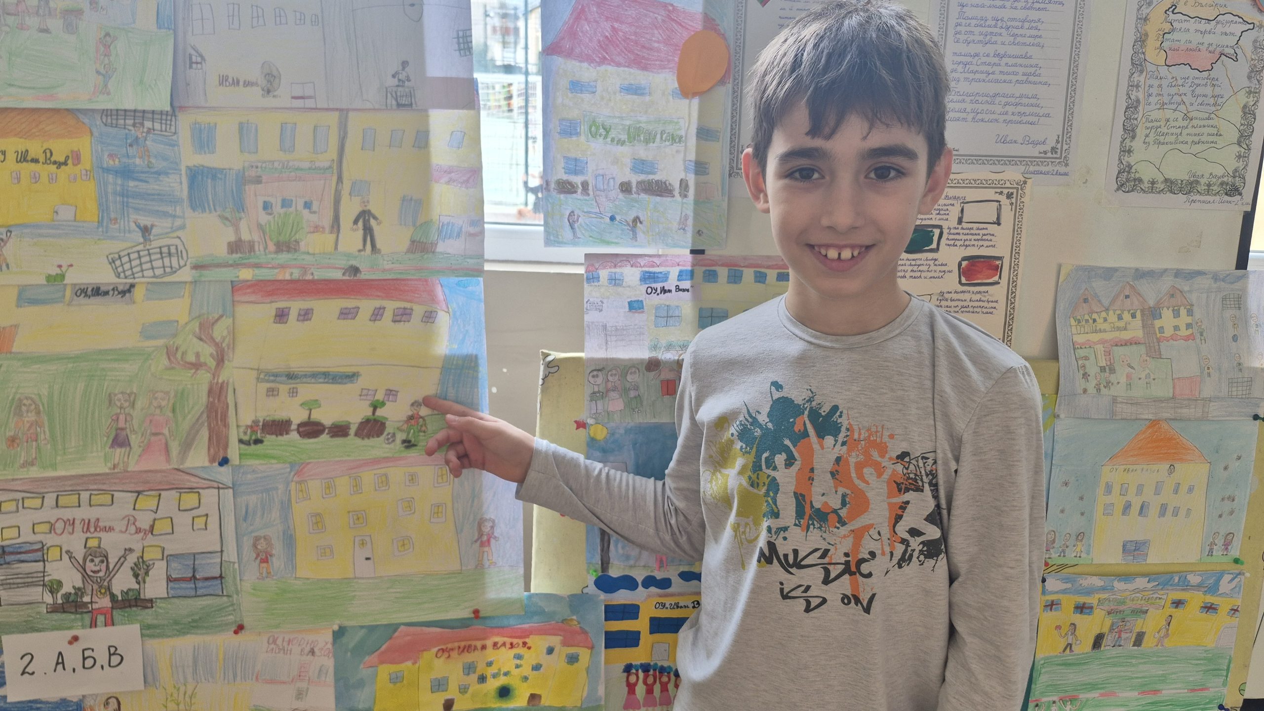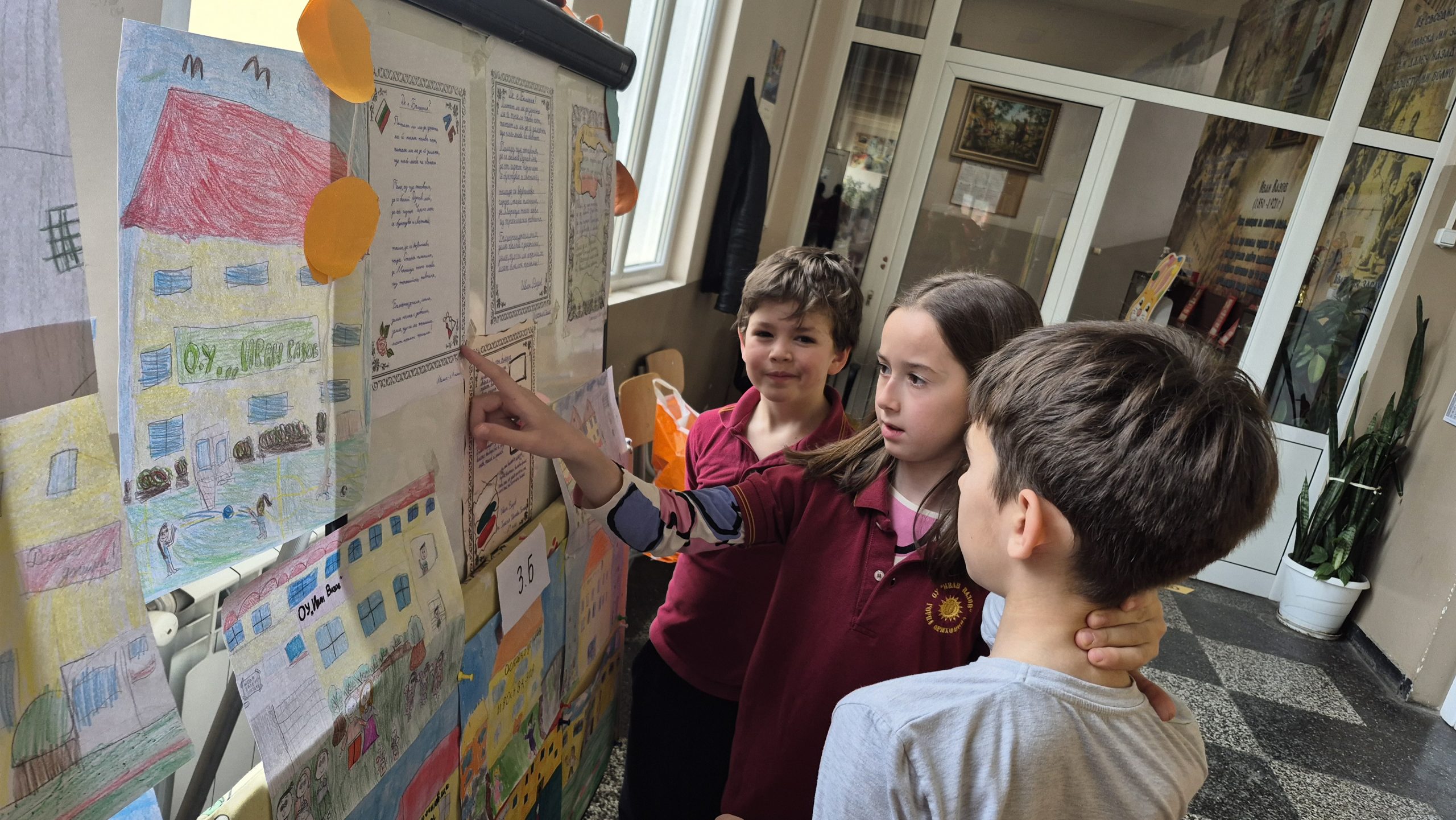 По повод празника на ОУ „Иван Вазов“ учениците от 2. А, Б, В и 3. Б клас с учителя по изобразително изкуство Розалия Нанкова нарисуваха и подредиха изложба по темата „Моето училище празнува“.