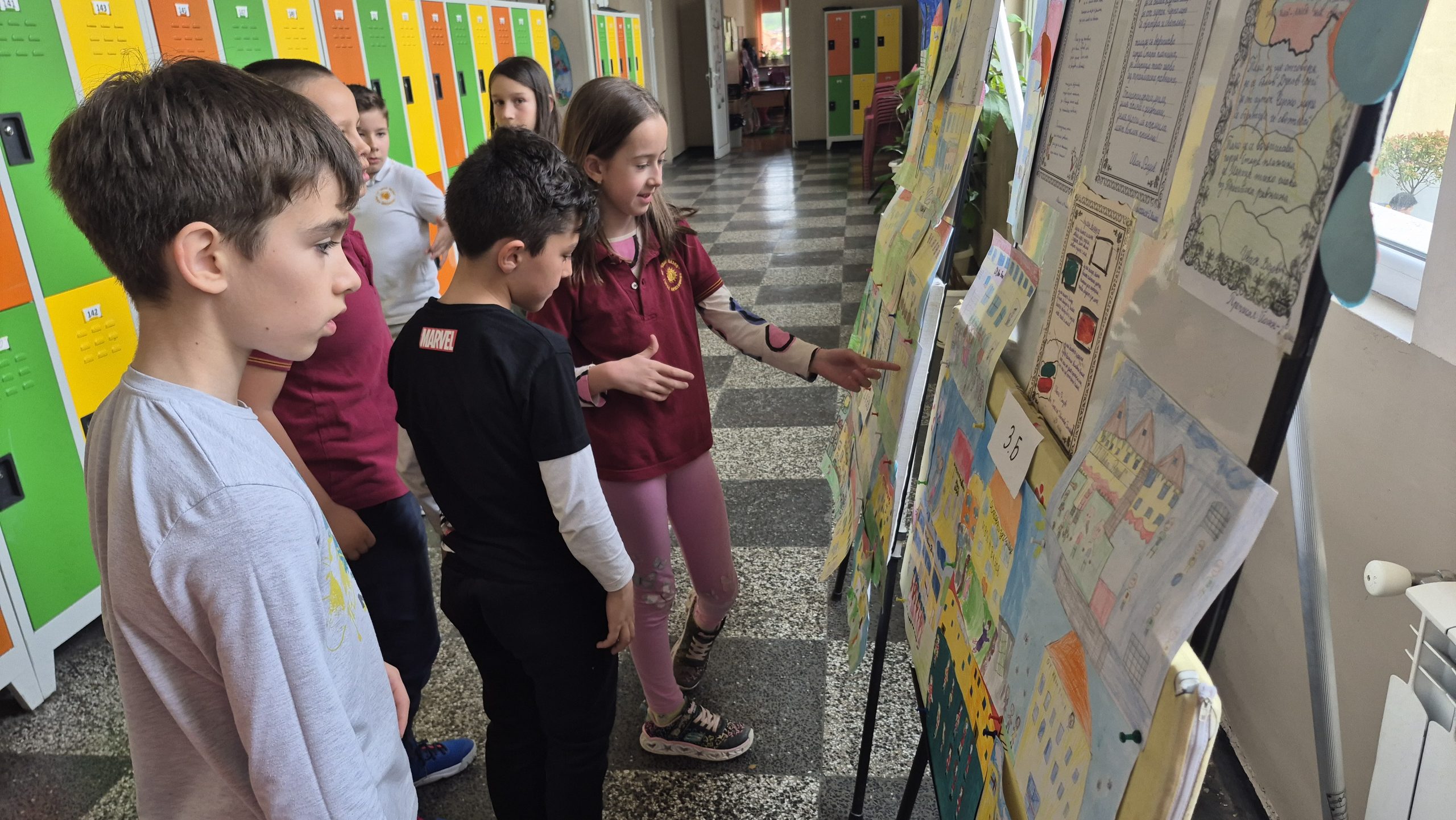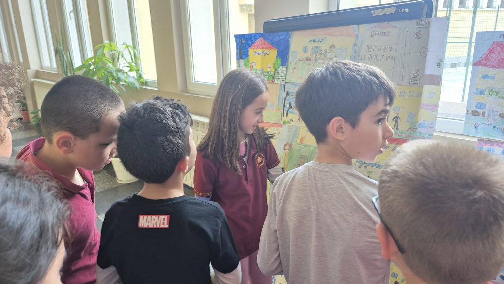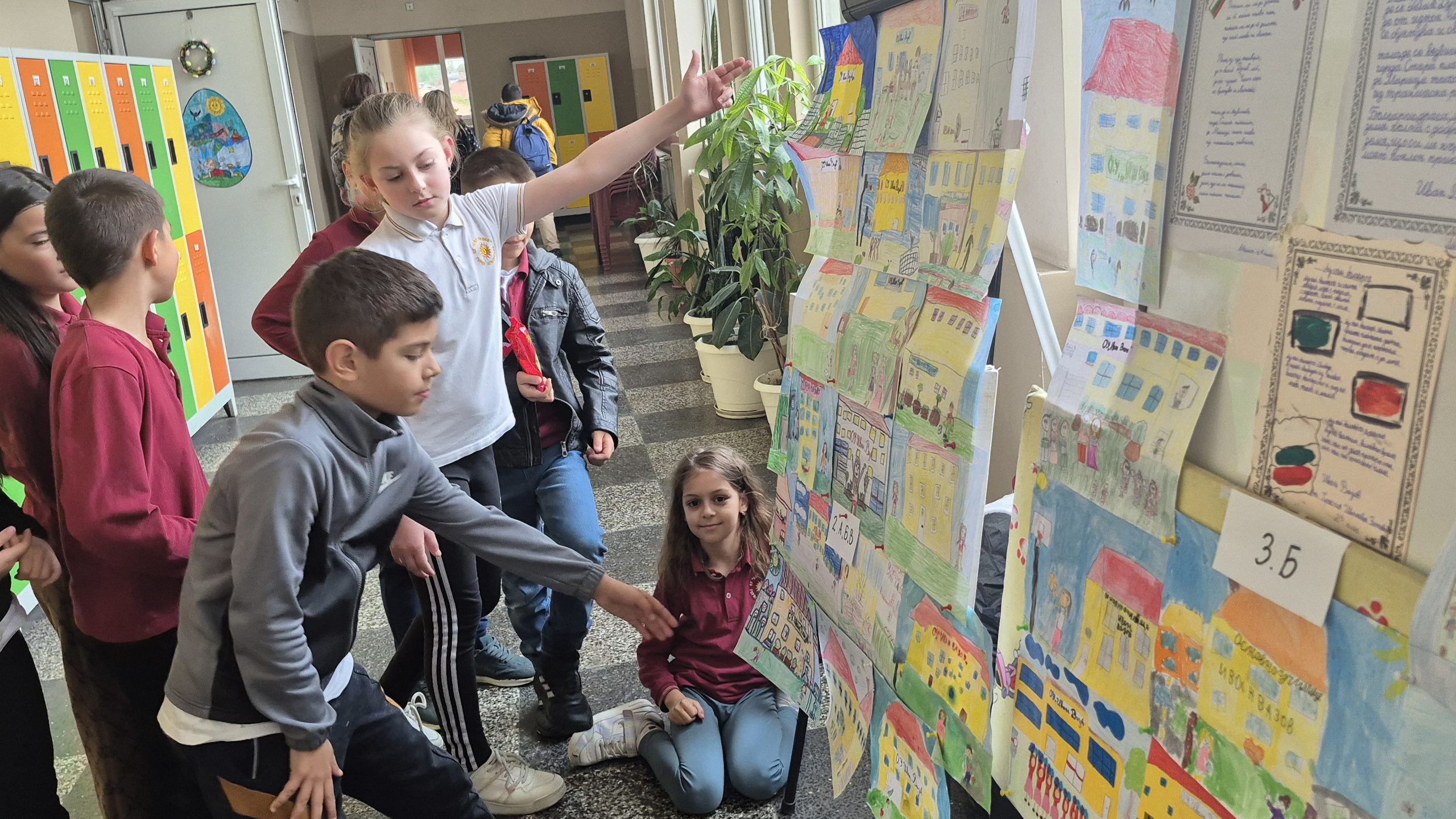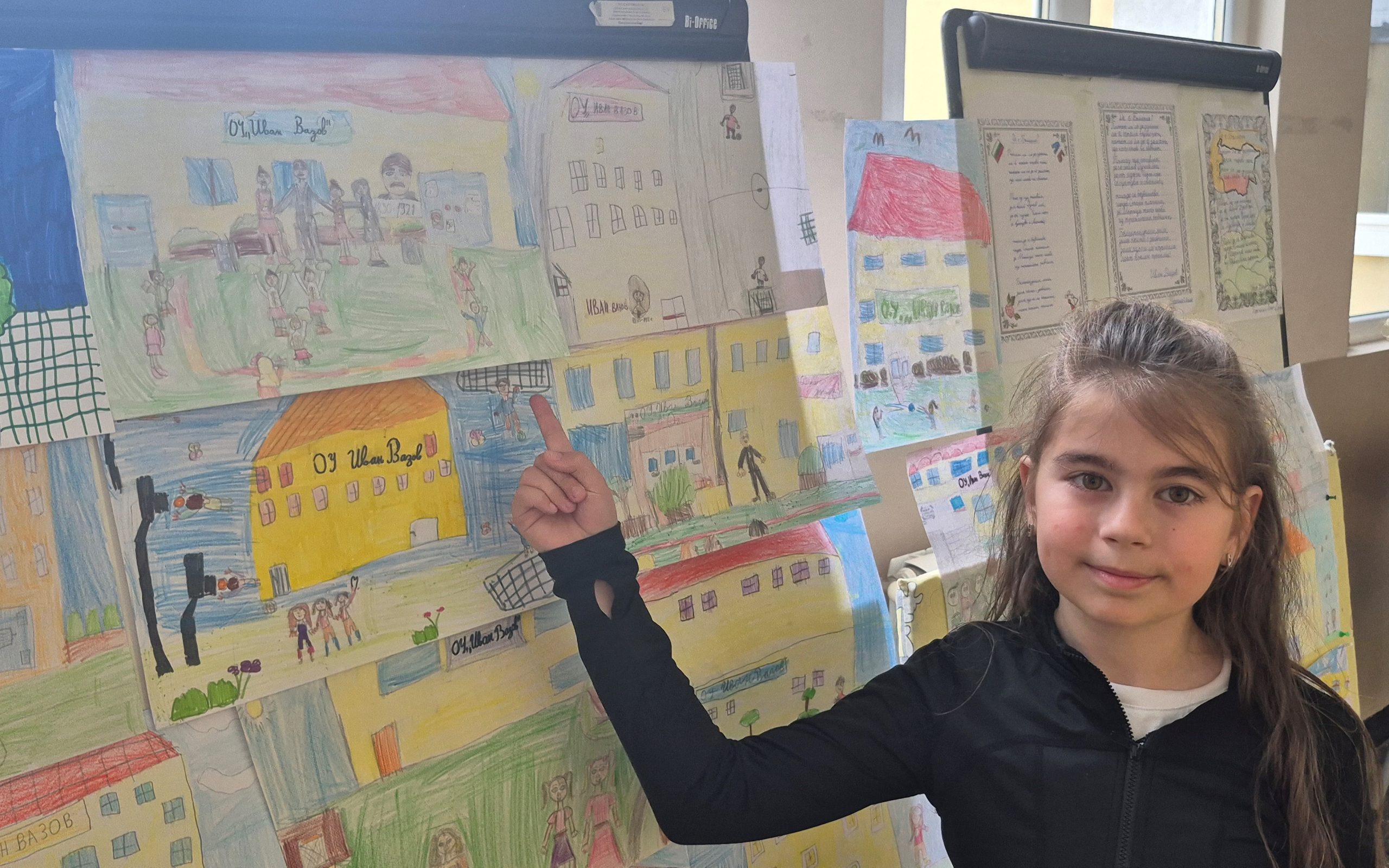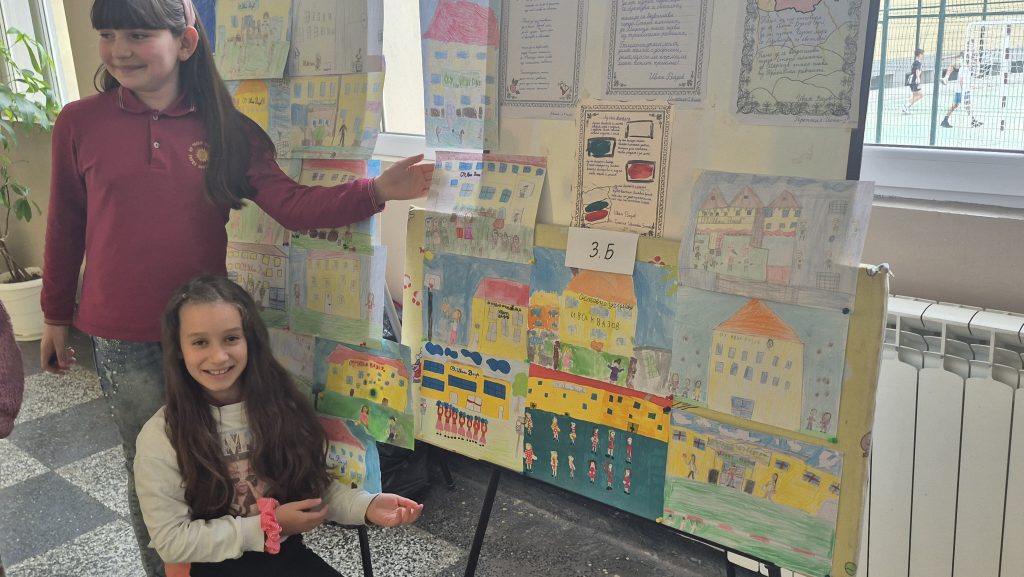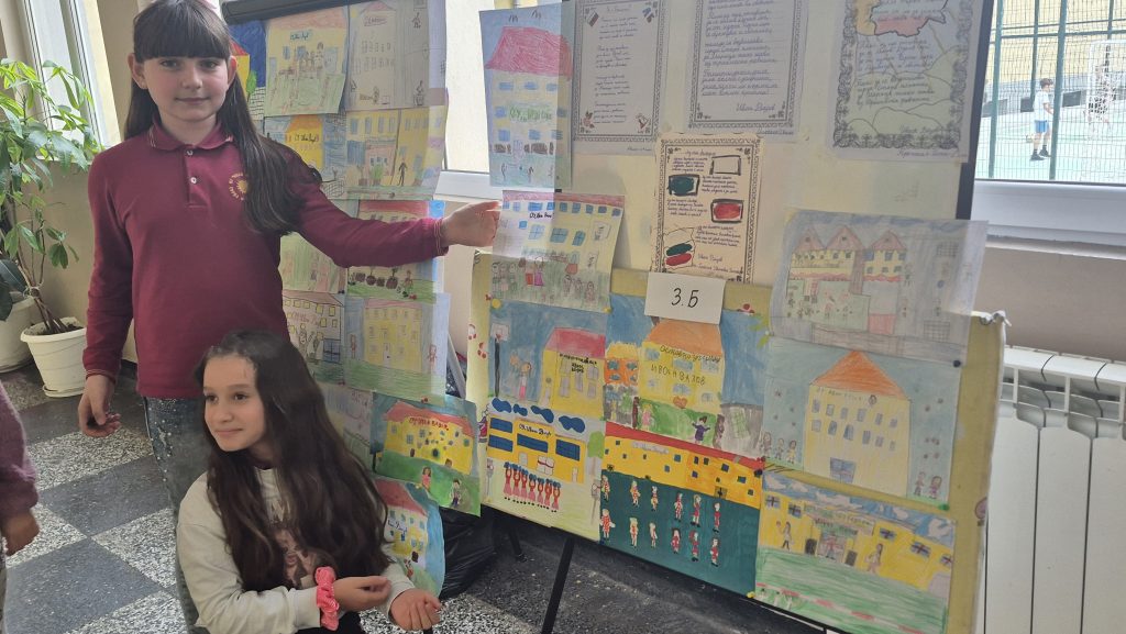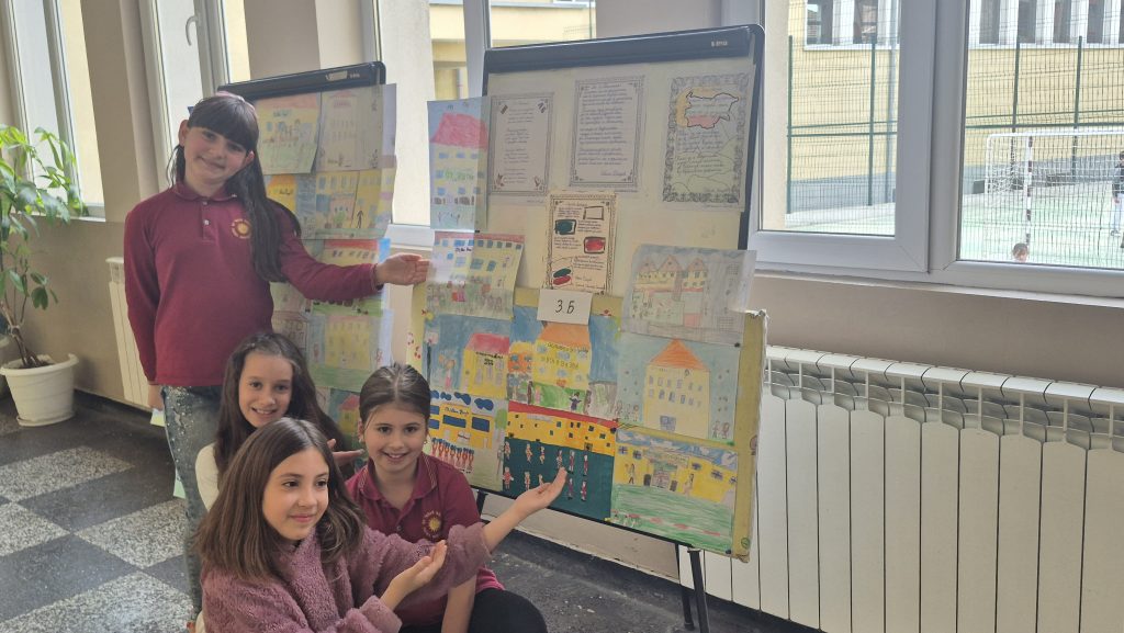 По повод празника на ОУ „Иван Вазов“ учениците от 2. А, Б, В и 3. Б клас с учителя по изобразително изкуство Розалия Нанкова нарисуваха и подредиха изложба по темата „Моето училище празнува“.