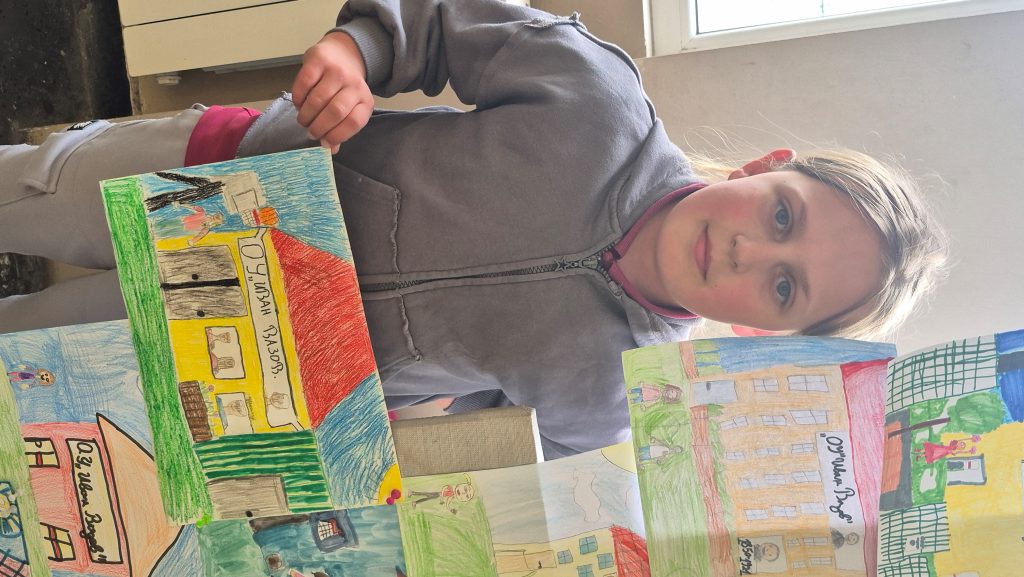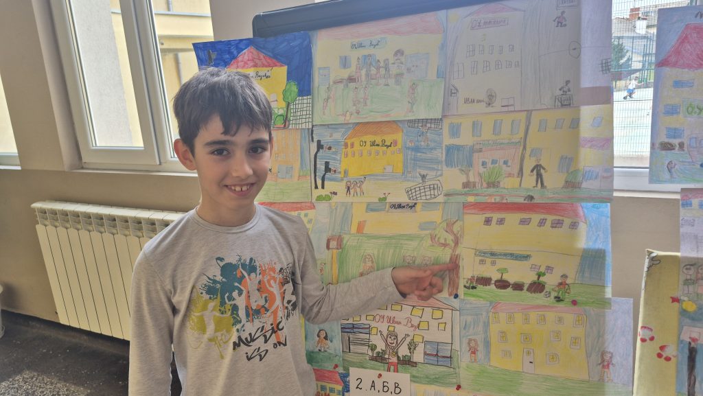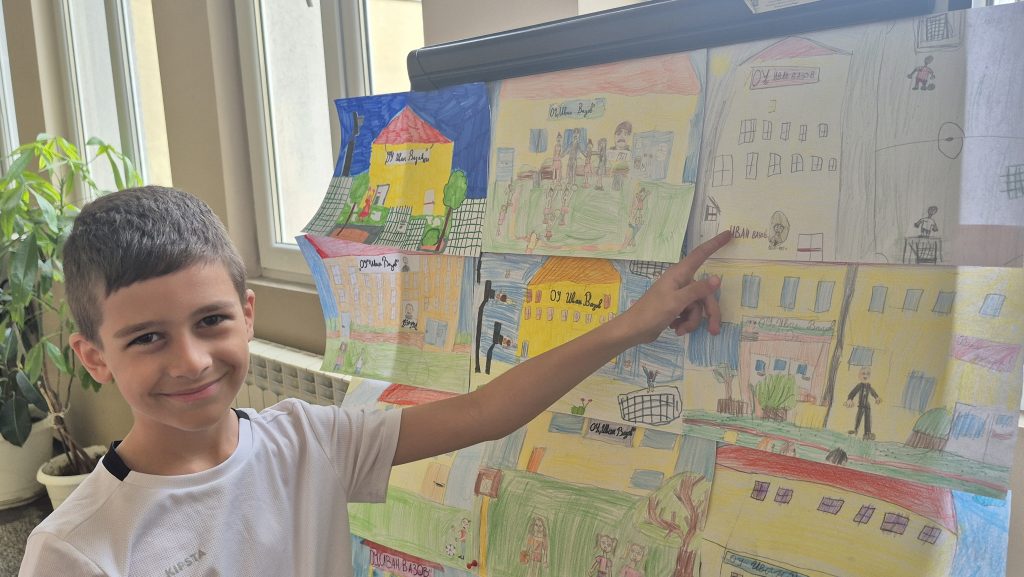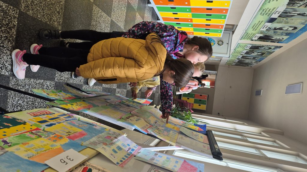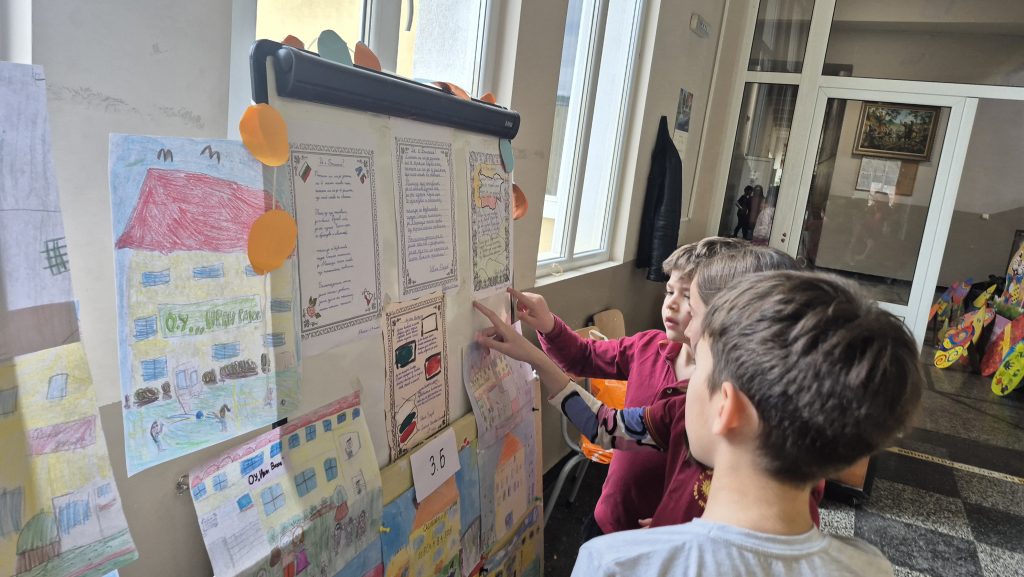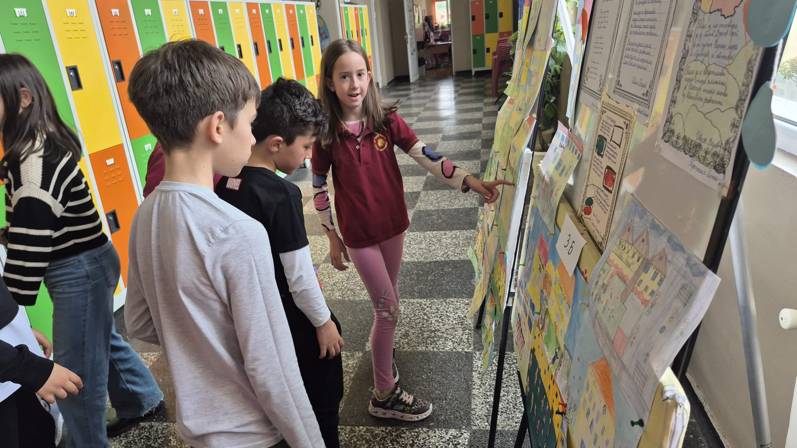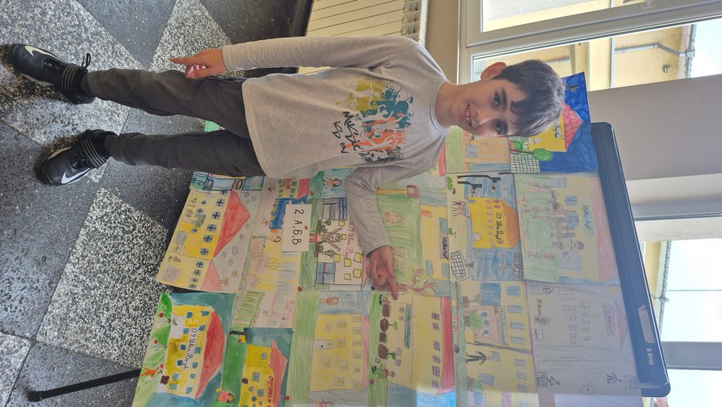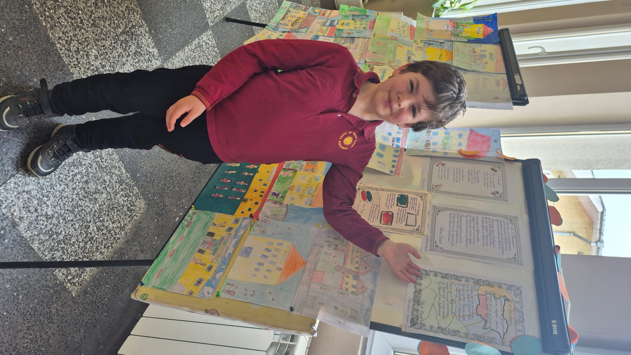 По повод празника на ОУ „Иван Вазов“ учениците от 2. А, Б, В и 3. Б клас с учителя по изобразително изкуство Розалия Нанкова нарисуваха и подредиха изложба по темата „Моето училище празнува“.