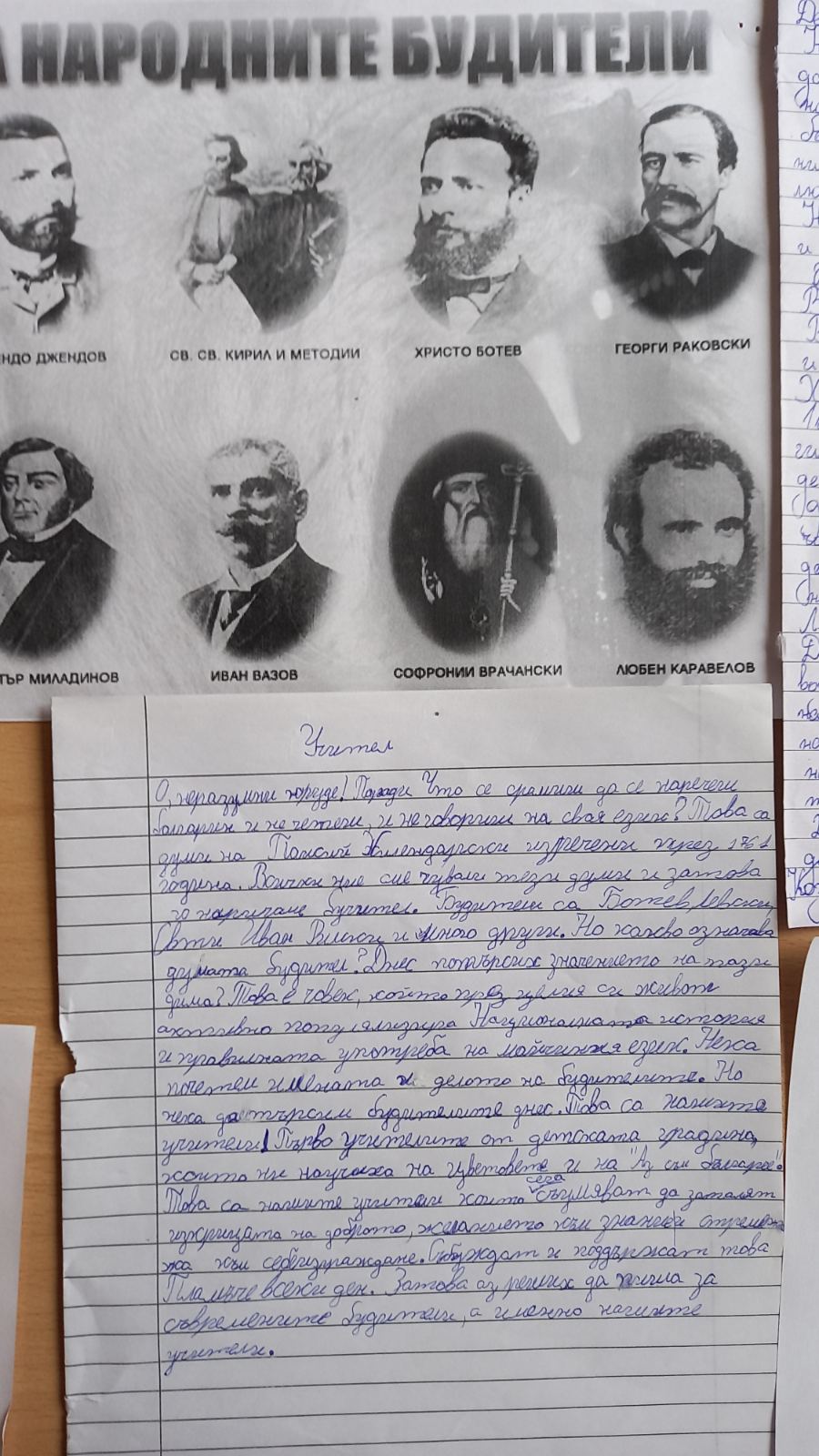 Учениците от 4 Б клас, с класен ръководител Антоня Цанева, подготвиха и представиха материали за народните будители в час на класа и отдадоха почит на всички книжовници за 1 Ноември-Ден на народните будители.