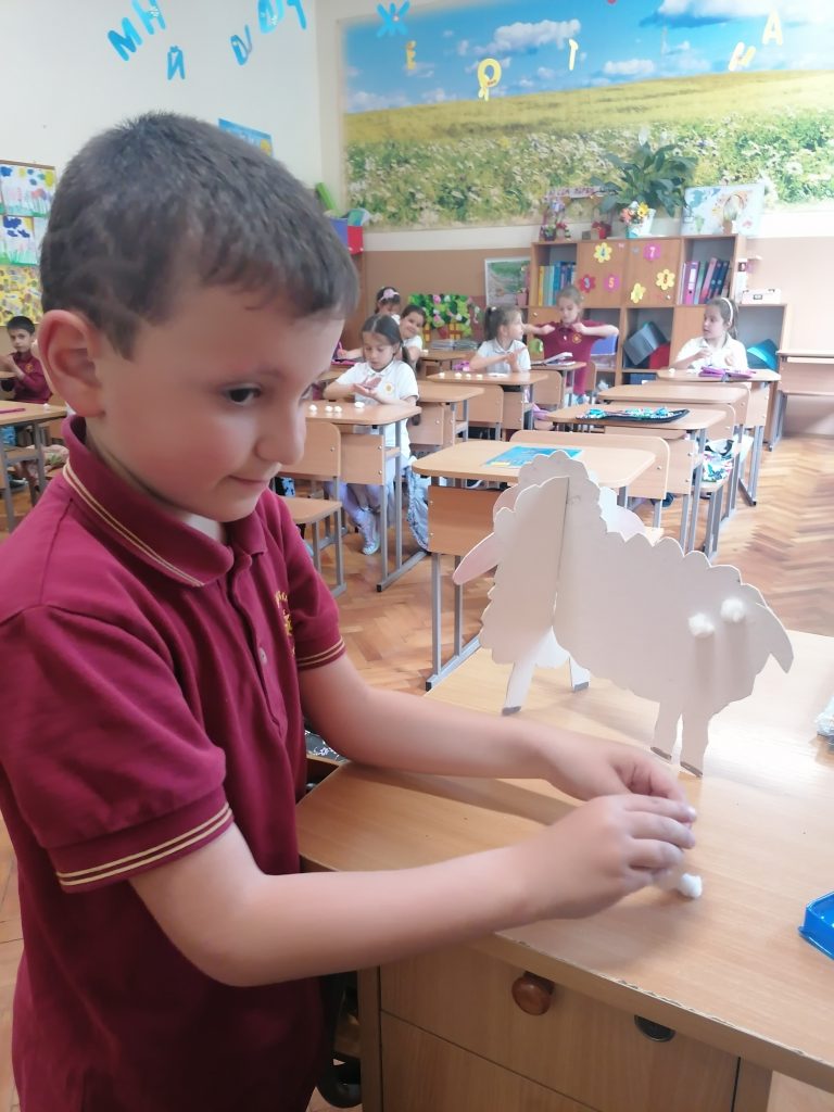 Дни преди Гергьовден , първокласниците от трите групи ЦДО си припомниха традициите, свързани с празнуването му. Заедно с учителите им, изработиха изложба, свързана с един от символите на празника. Три малки агънца красят коридора на училището и създават празнично настроение.Преподавателите Светлана Хаджикостова, Албена Тодорова, Ирина Стефанова и техните ученици Ви желаят весело посрещане на празника!