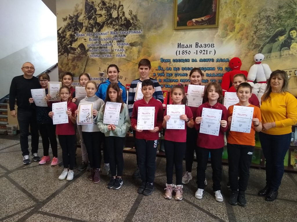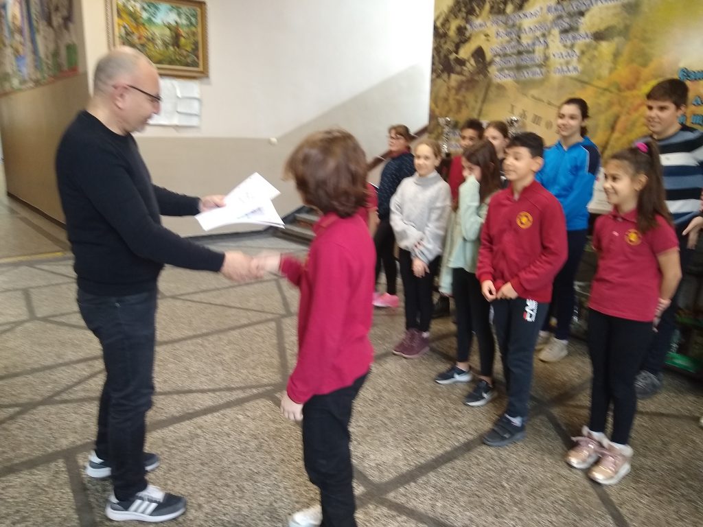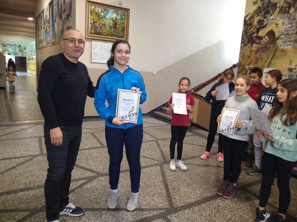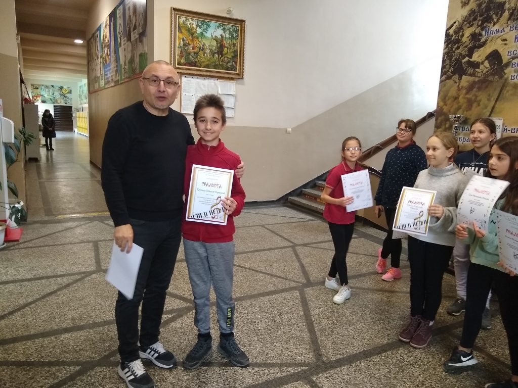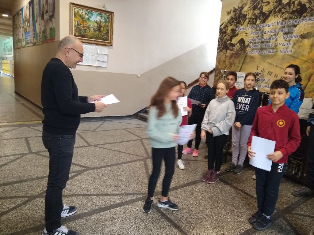 За национален кръг се класираха Христо Гиргинов от 5а , Цвета Иванова от 6а, Михаела Милушева от 6в и Стефан Николов от 7а клас.