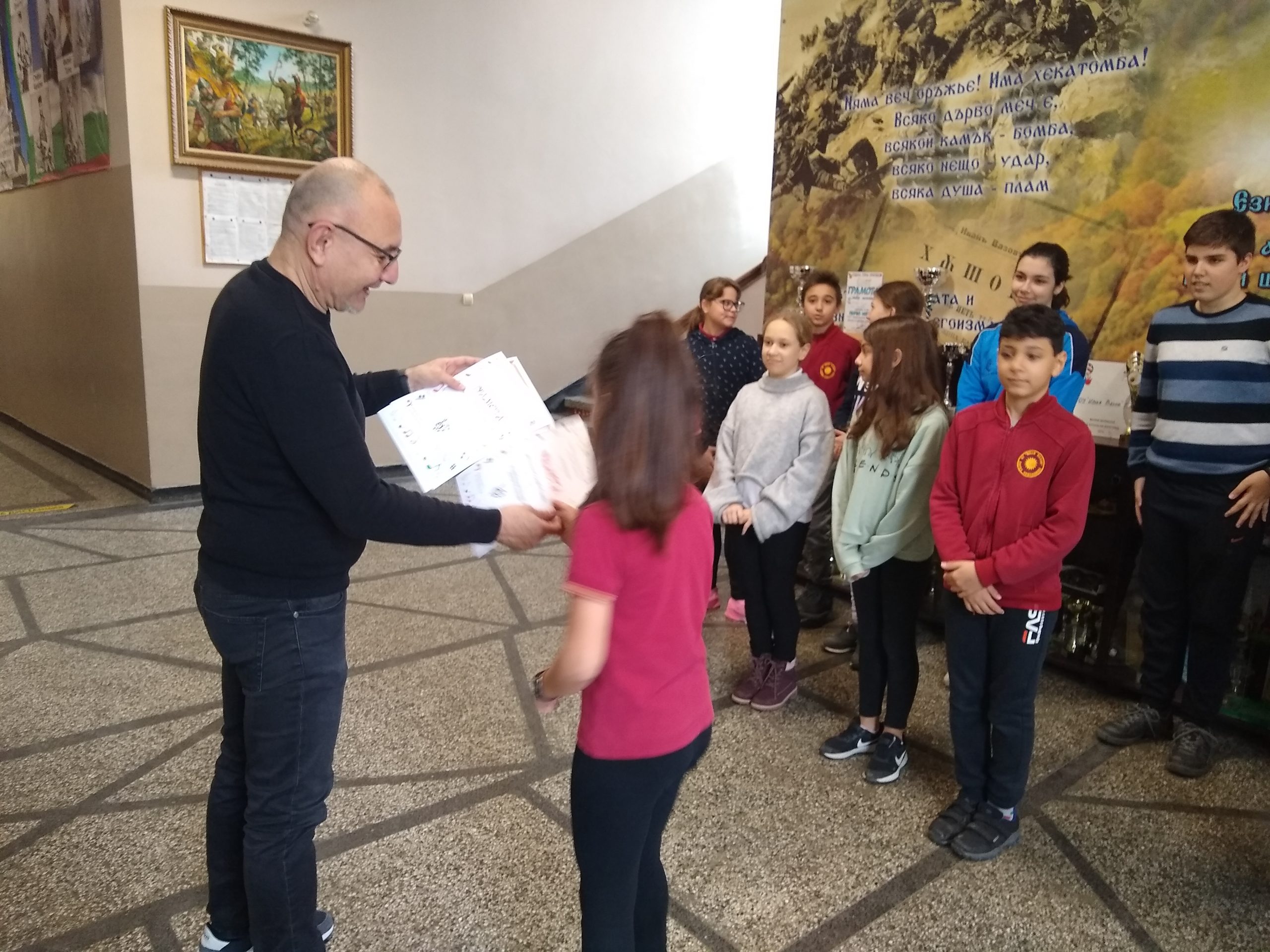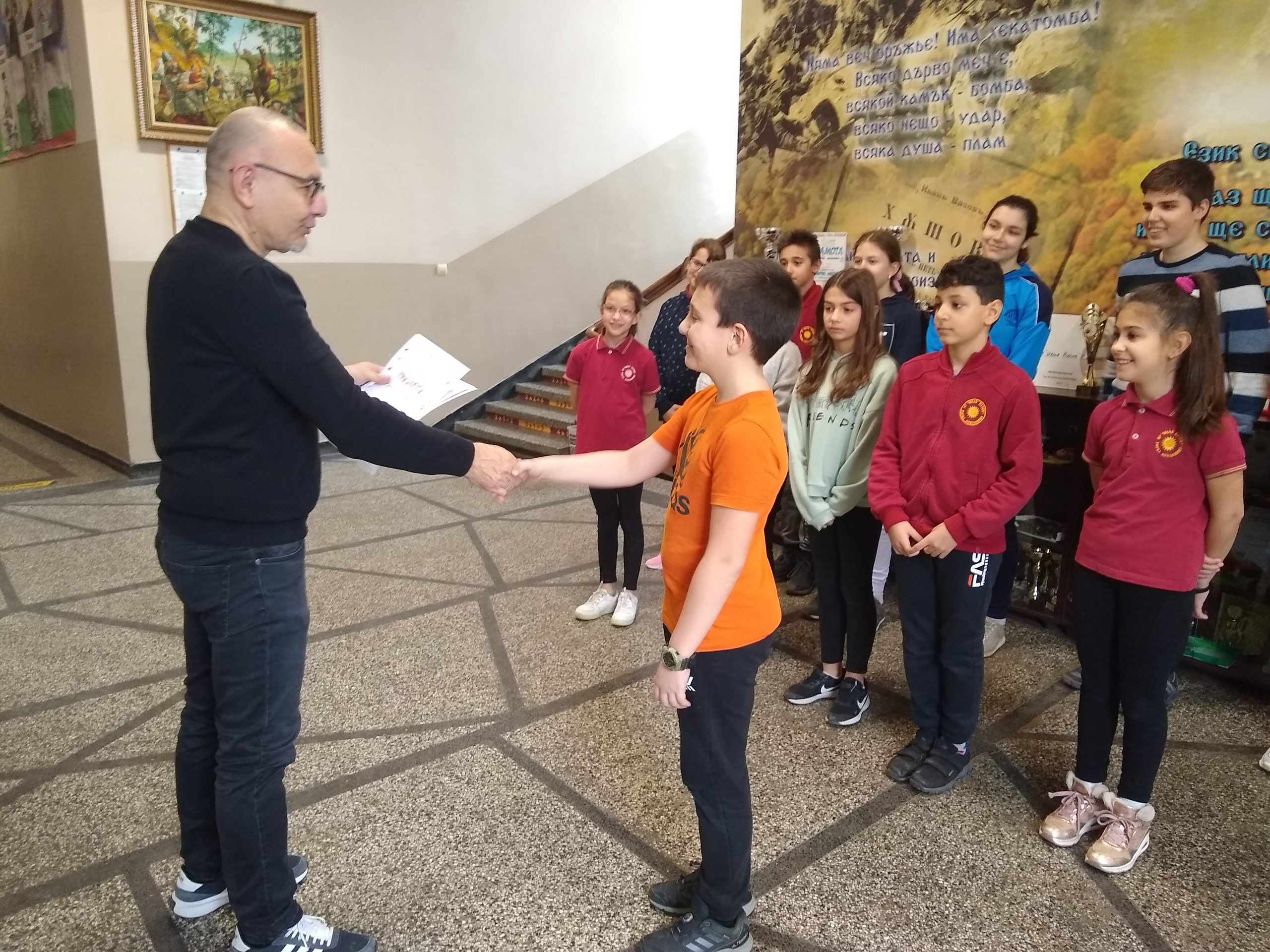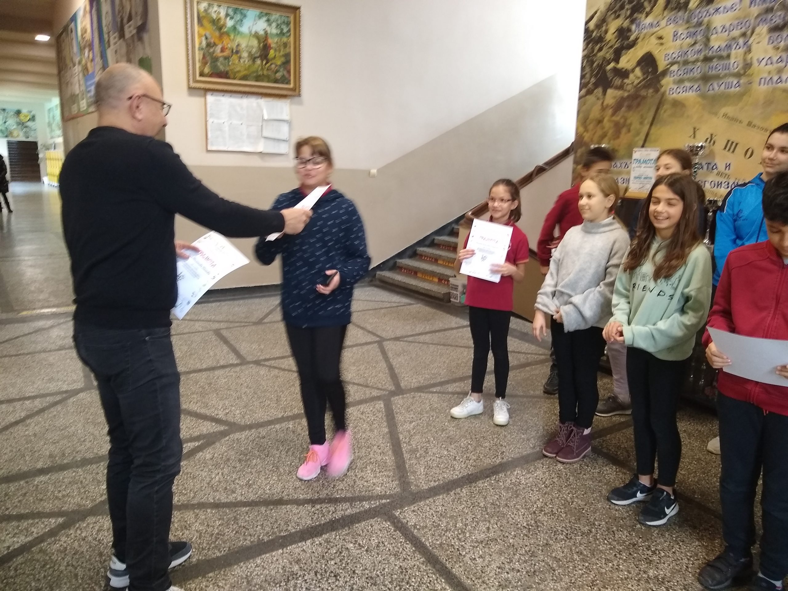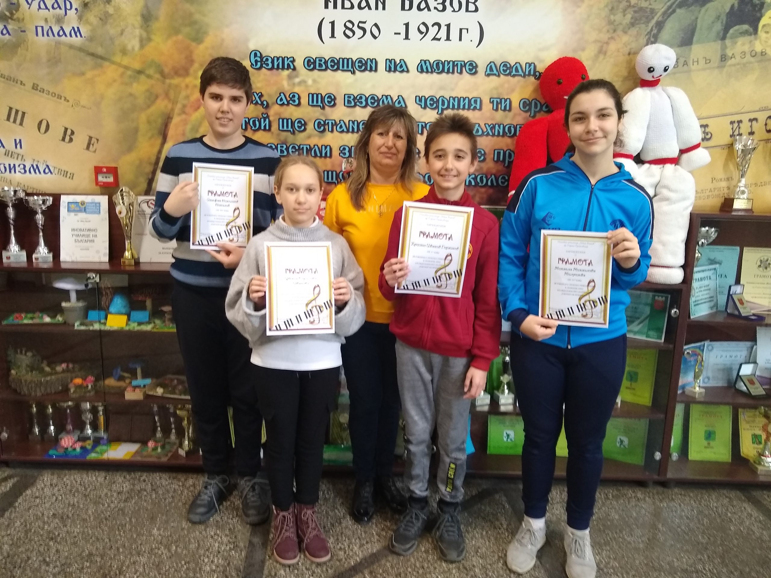 За национален кръг се класираха Христо Гиргинов от 5а , Цвета Иванова от 6а, Михаела Милушева от 6в и Стефан Николов от 7а клас.