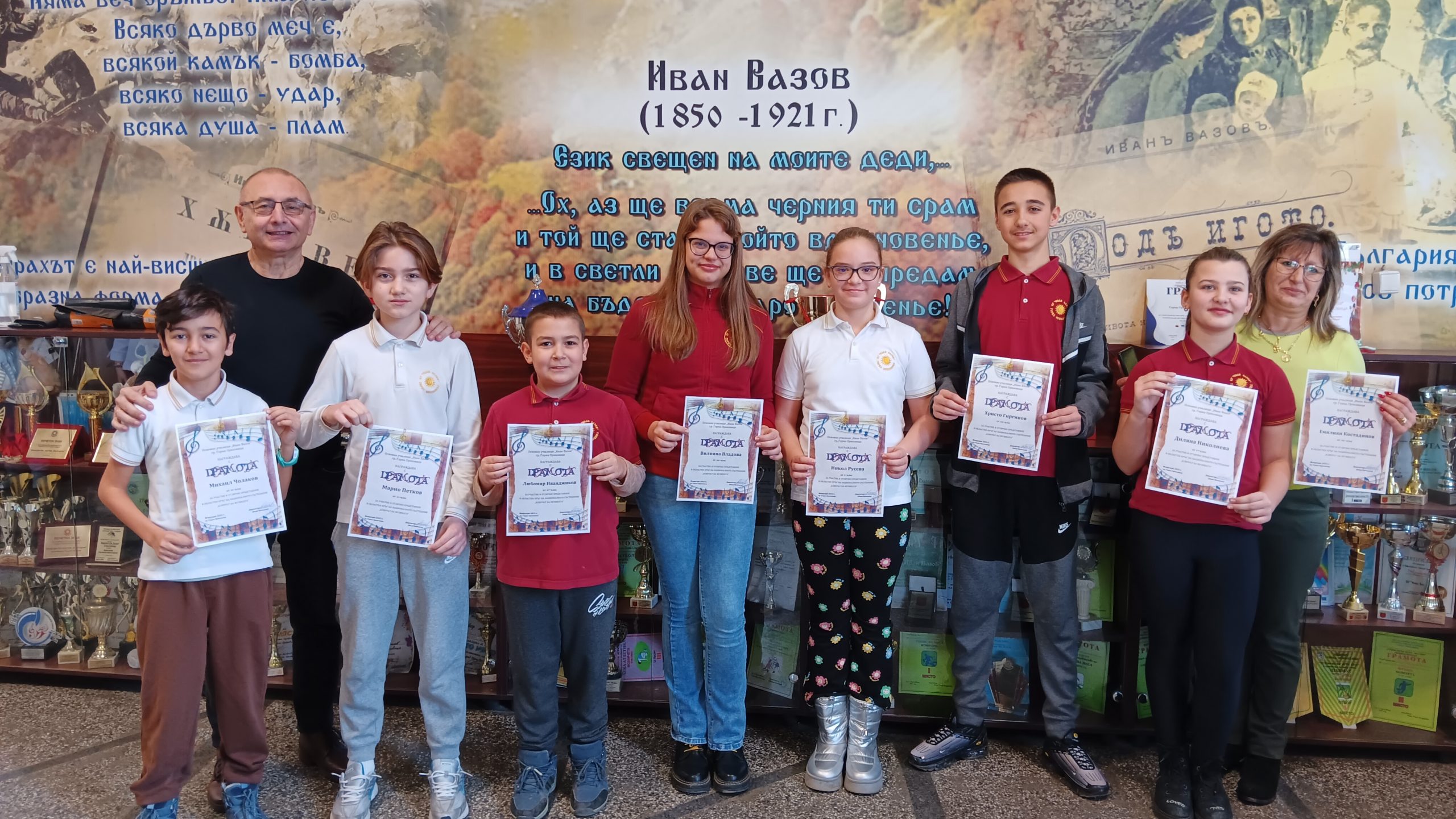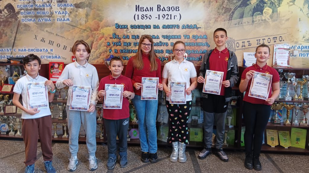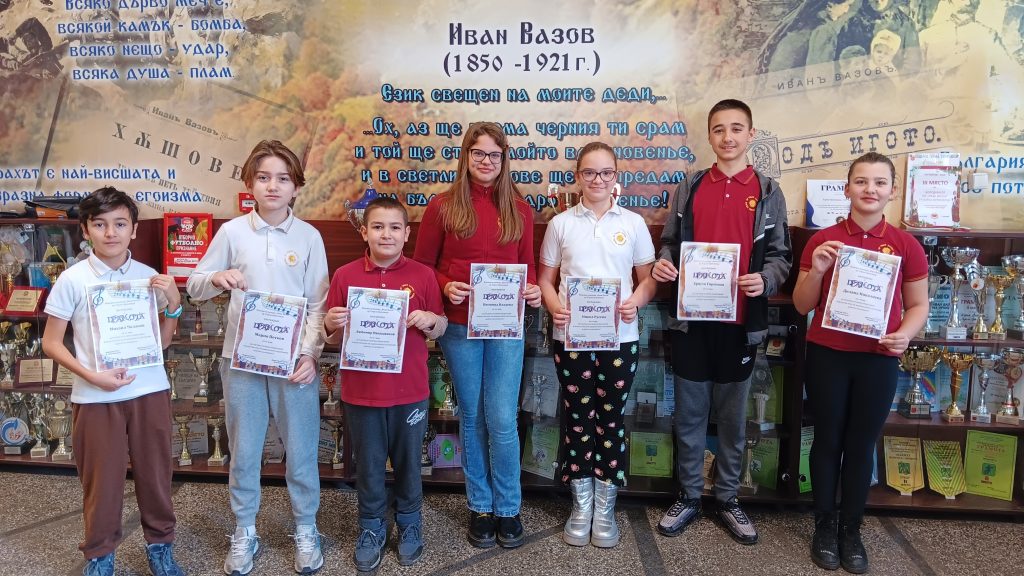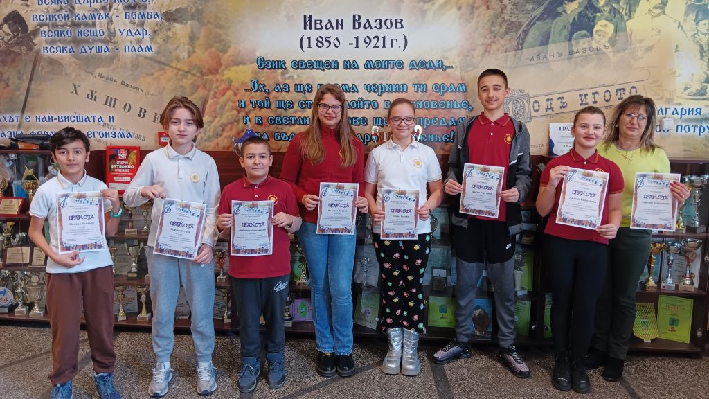 Радостни сме да споделим, че от 8 участници в областен кръг, Никол Русева -Va, Вилияна Владова –VII а и Христо Гиргинов – VII a клас се класираха за Националния, който ще се проведе на 21-24.03.2025г. в АМТТИ „Проф. Асен Диамандиев“ гр. Пловдив.