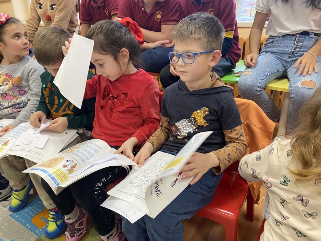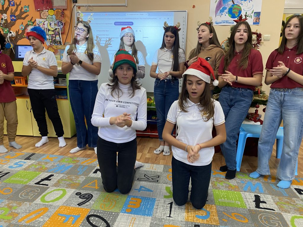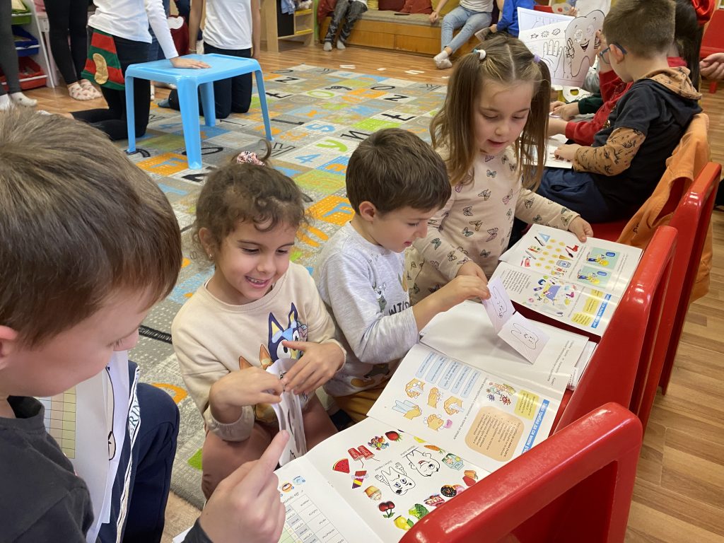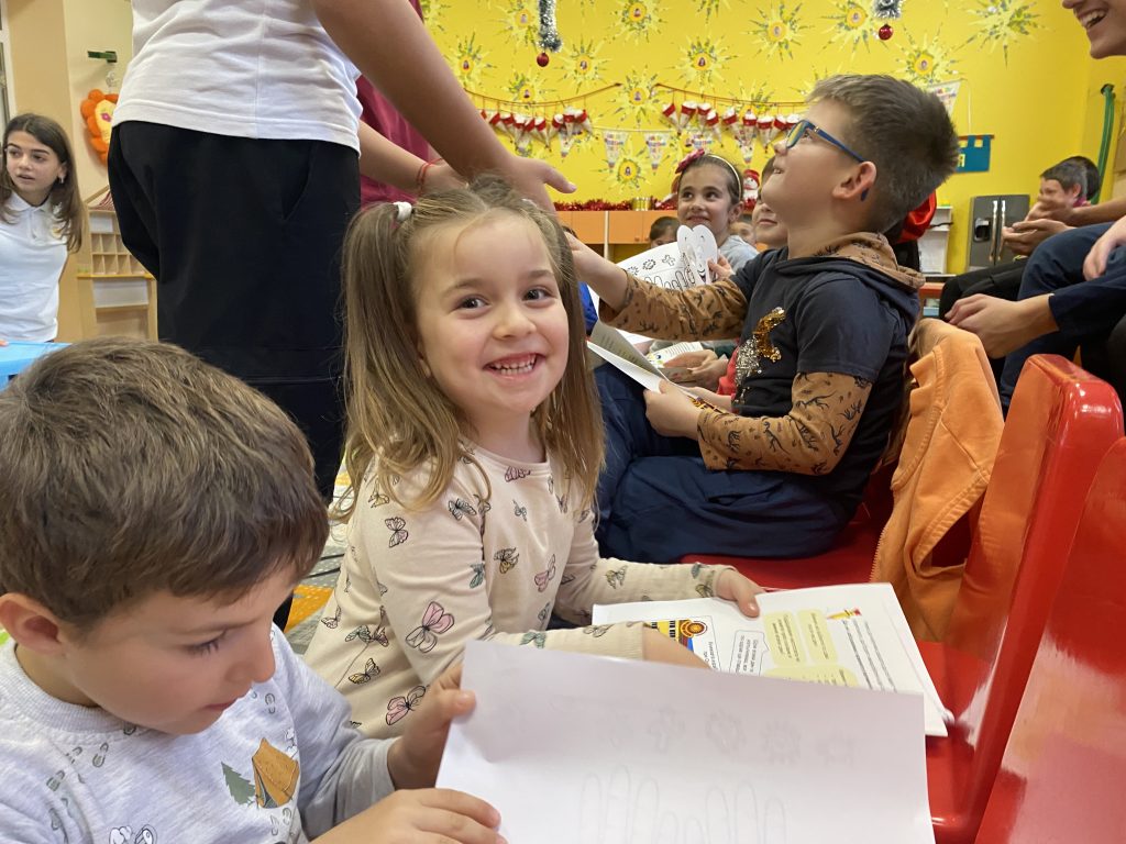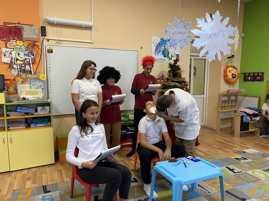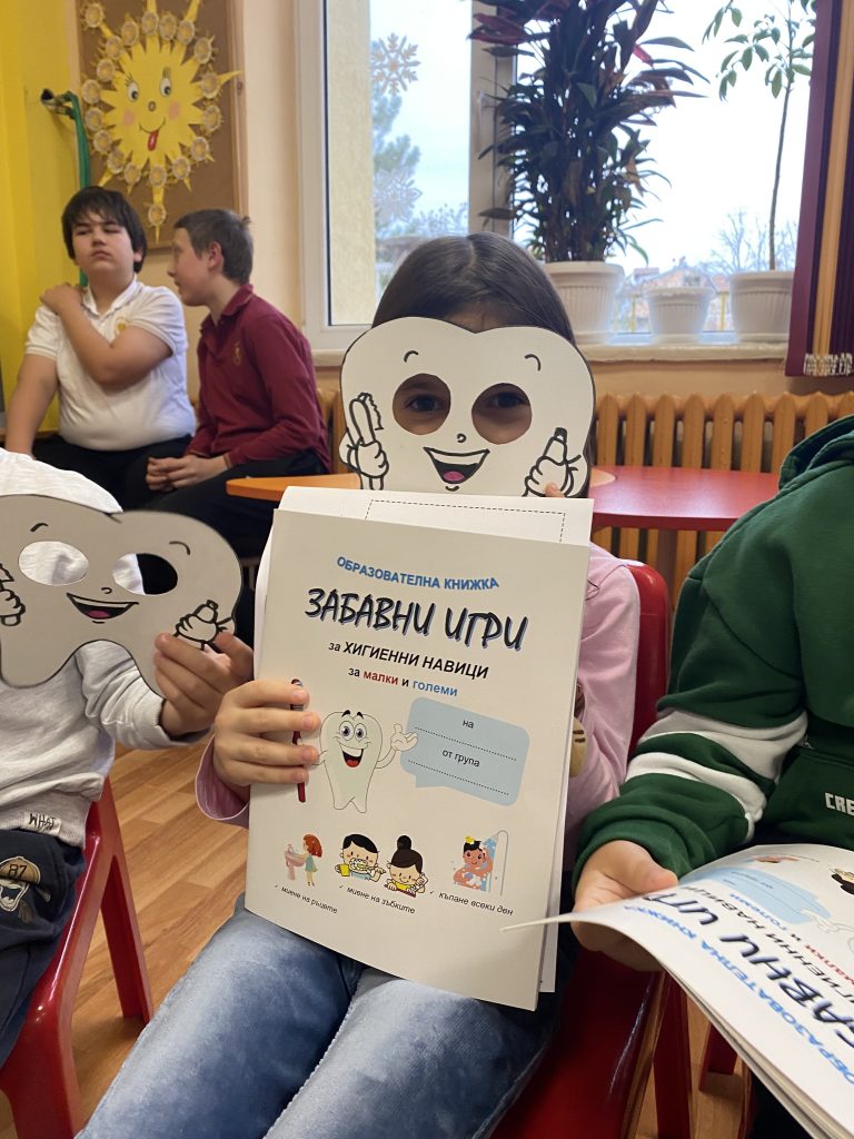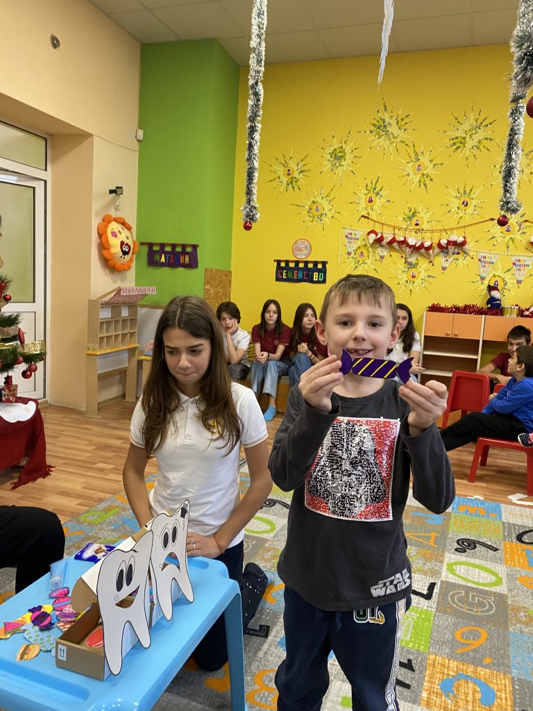 По интересен начин като герои от приказката за „Пук и Чук“, седмокласниците запознаха децата с това, защо трябва да си мием зъбките и ръцете, защо трябва да се къпем всеки ден. За да бъде още по-интересно и забавно на всички малчугани бе подарена образователна книжка „Забавни игри за хигиенни навици за малки и големи“. Книжката е изработена от седмокласниците с помощта на класния ръководител г-жа Калина Йорданова и педагогическия съветник Антоанета Баланова. За добро настроение с настъпването на предстоящите празници момичетата и момчетата поздравиха вече своите приятели с коледни песни. Пожелаха си да бъдат здрави, весели и да се срещнат отново.