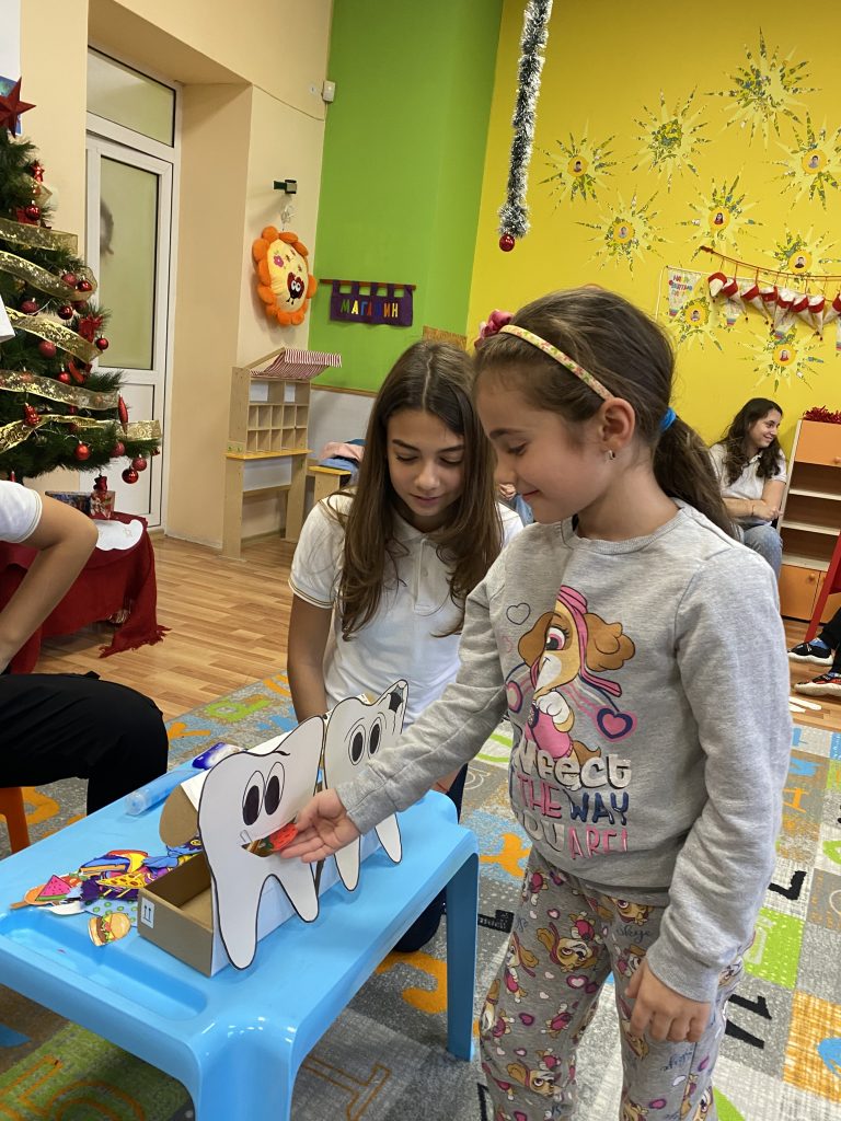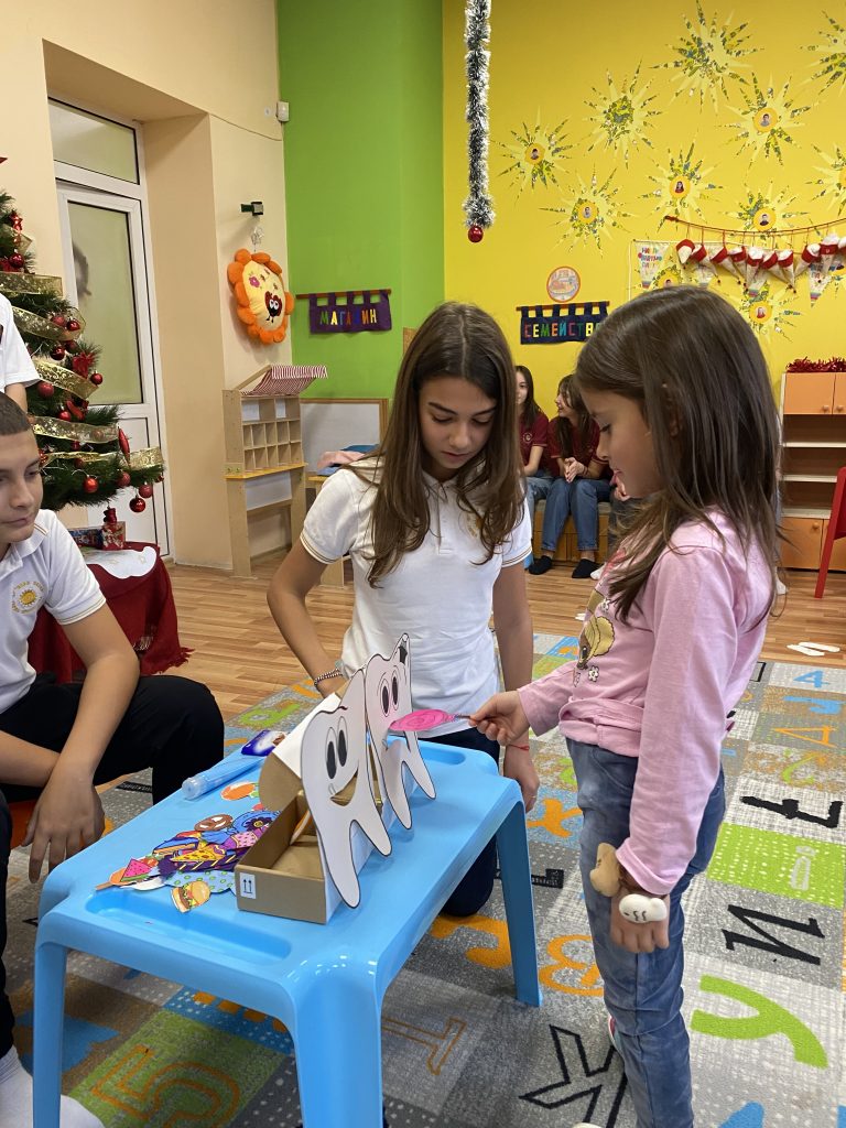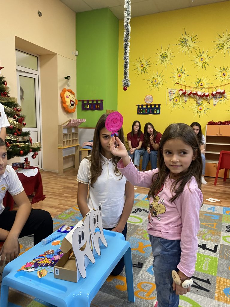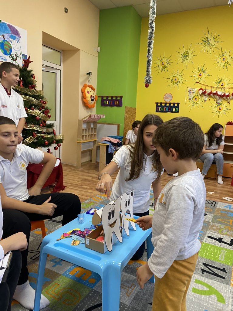 Учениците от 7 а клас при ОУ „Иван Вазов“ посетиха ЦДГ „Здравец“ и изнесоха урок пред малчуганите от група „Слънчице“ на тема Хигиенни навици.