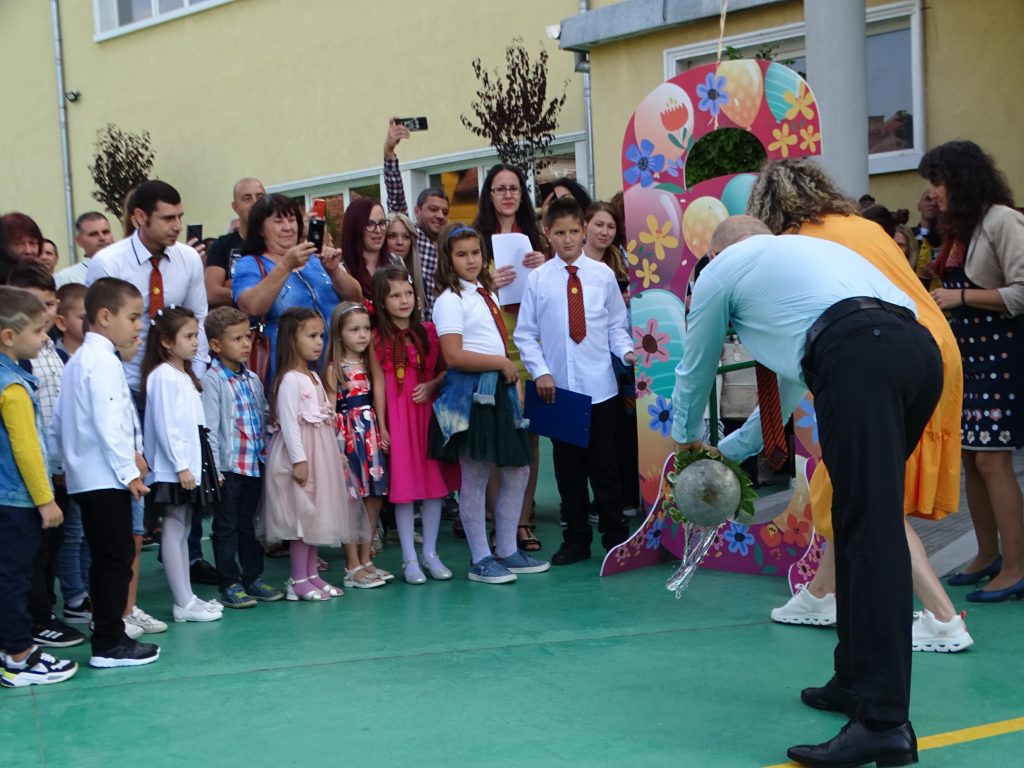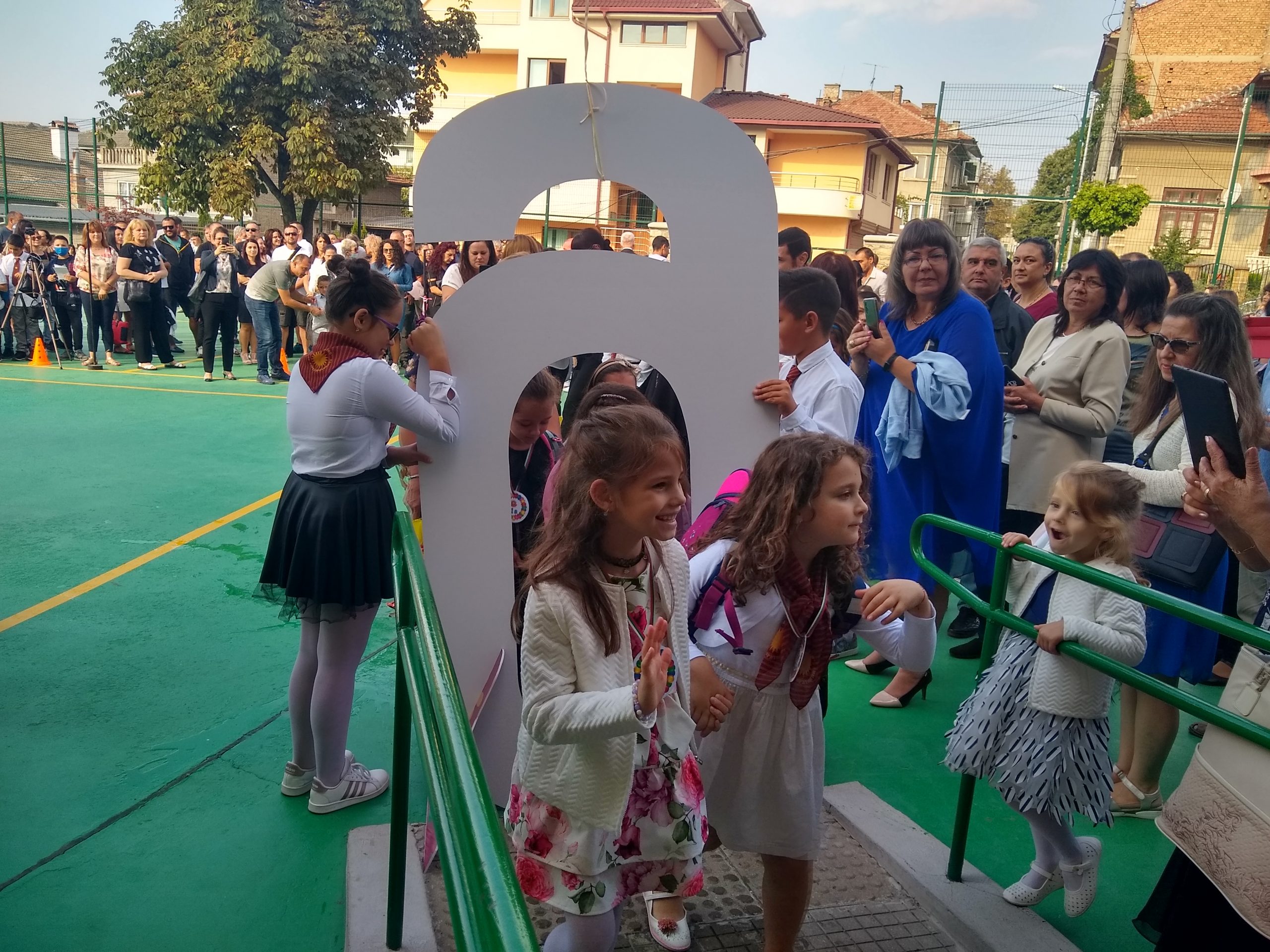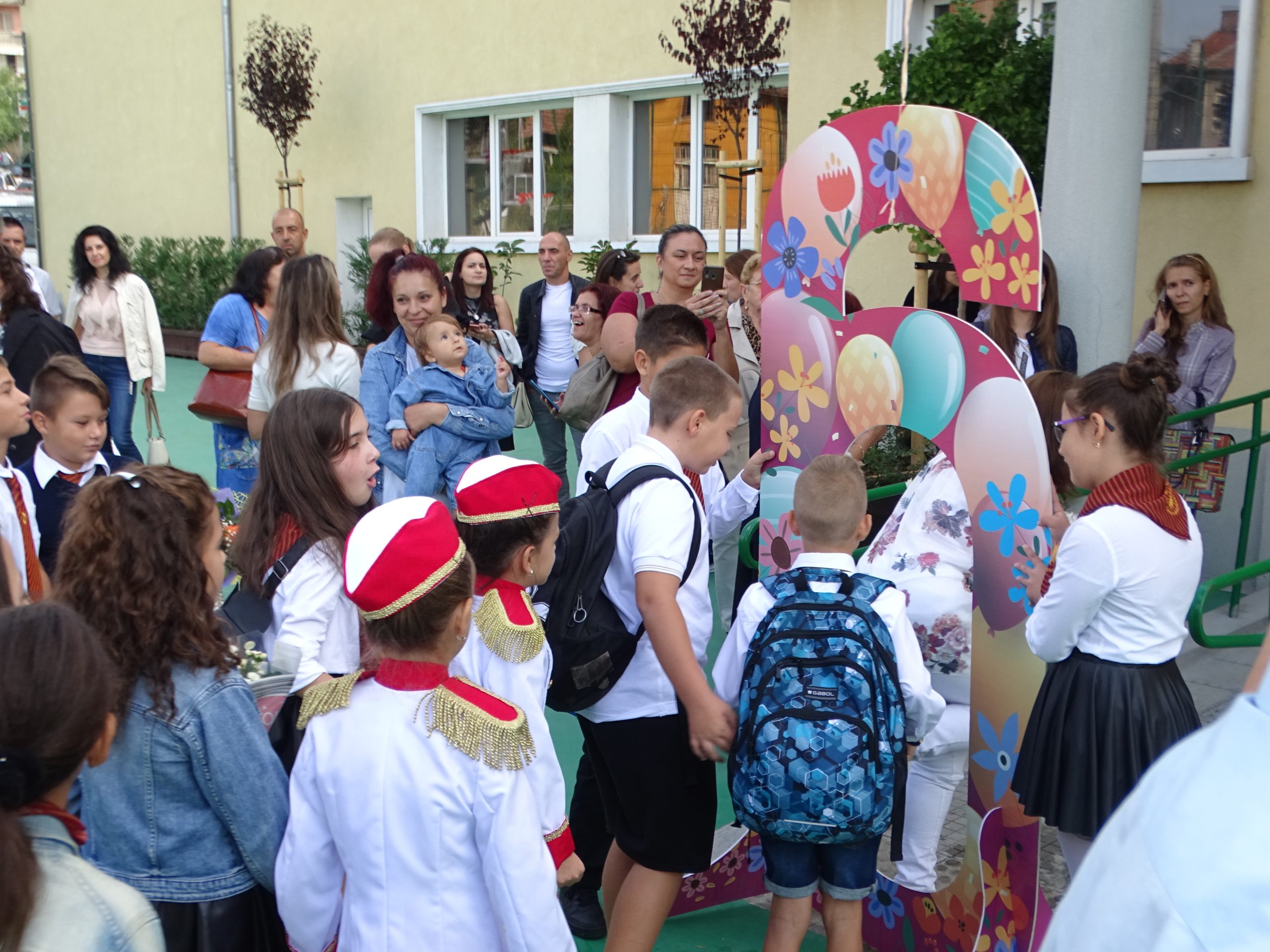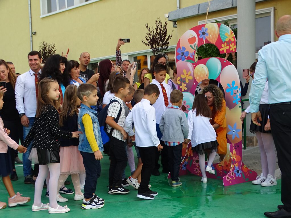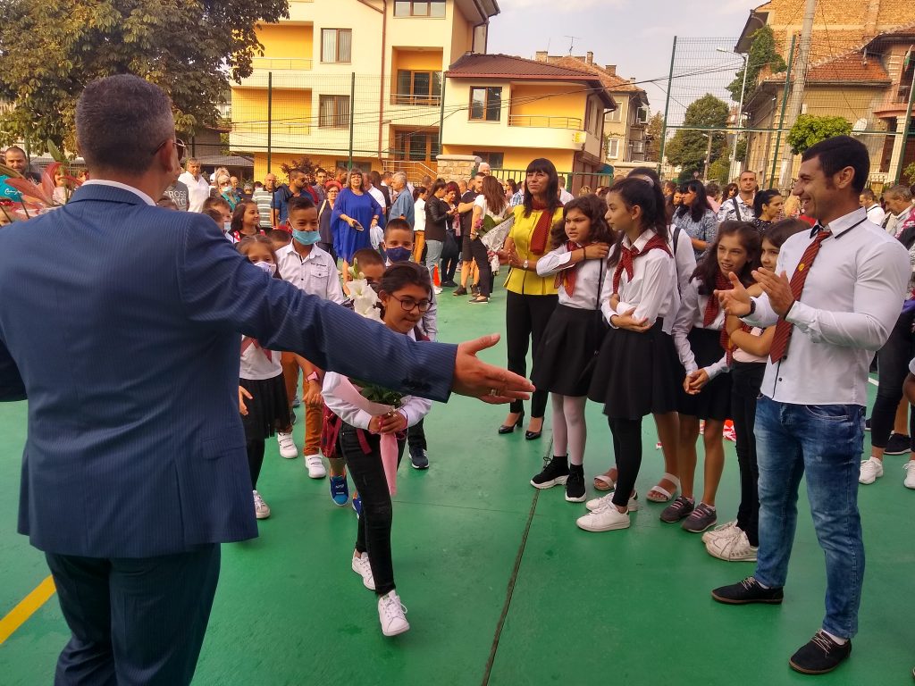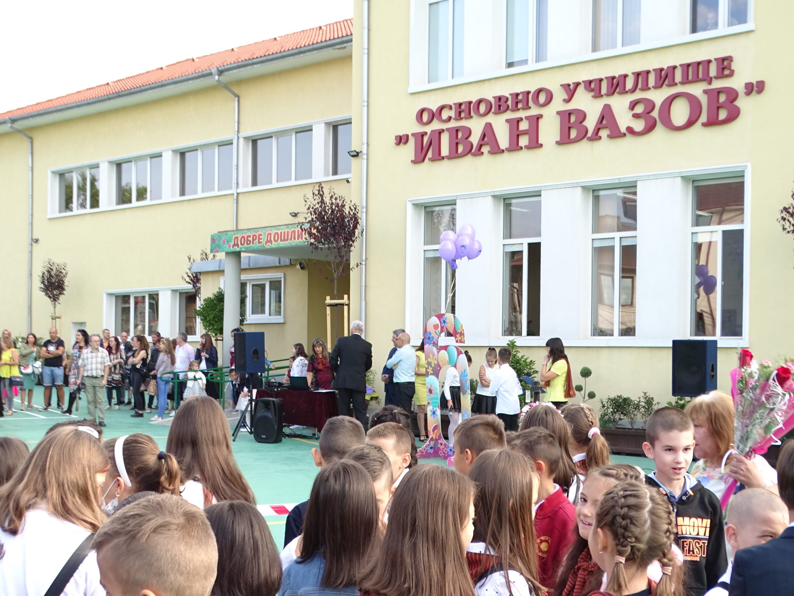 Екипът на ОУ „Иван Вазов“ зарадва ученици, родители и гости с повече зеленина в училищния двор, с по-добра спортна база и обновени кабинети. Първият учебен звънец проехтя два пъти в училището и тържествата бяха две, заради мерките срещу коронавируса. Точно в 9 часа прозвуча химнът и бе издигнато знамето на България. Честта за неговото издигане бе на най-изявените ученици на училището, отличили се с особени постижения през миналата година. Празничното посрещане на първокласниците беше уважено от един бивш възпитаник на училището – кметът инж. Добромир Добрев и общинският съветник Йордан Михтиев. Молитва за здраве и мъдрост отправи отец Зоран Мамучевски, който благослови ученици и учители. Учениците от начален етап минаха през огромна „6“ с надежната новата учебна година да бъде много успешна за тях. След като най-малките заеха своите места по чиновете, започна празникът и за по-големите ученици.