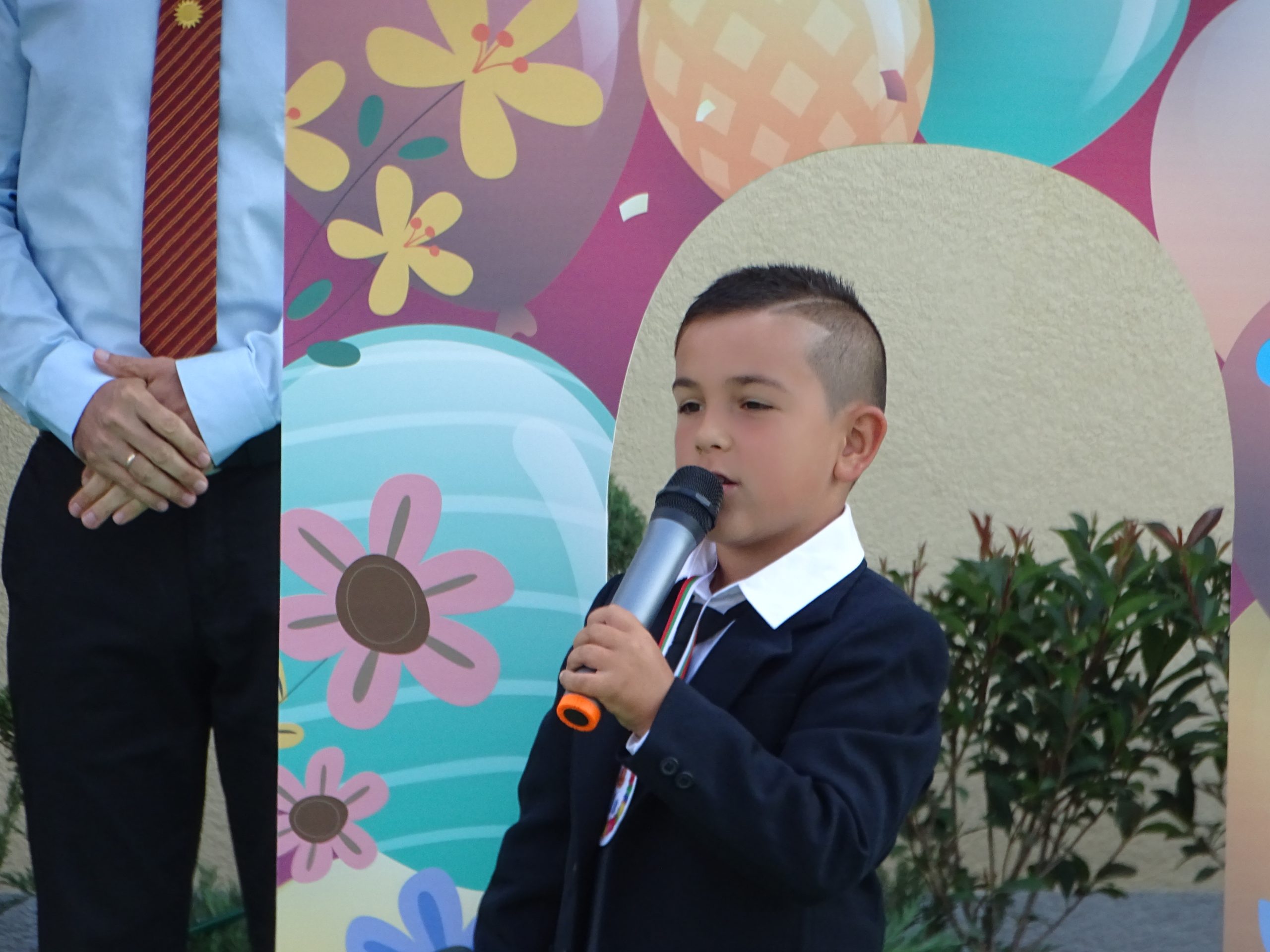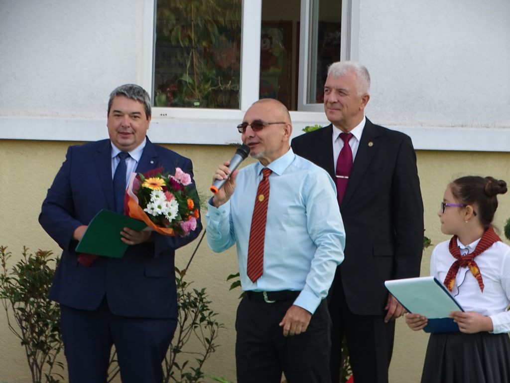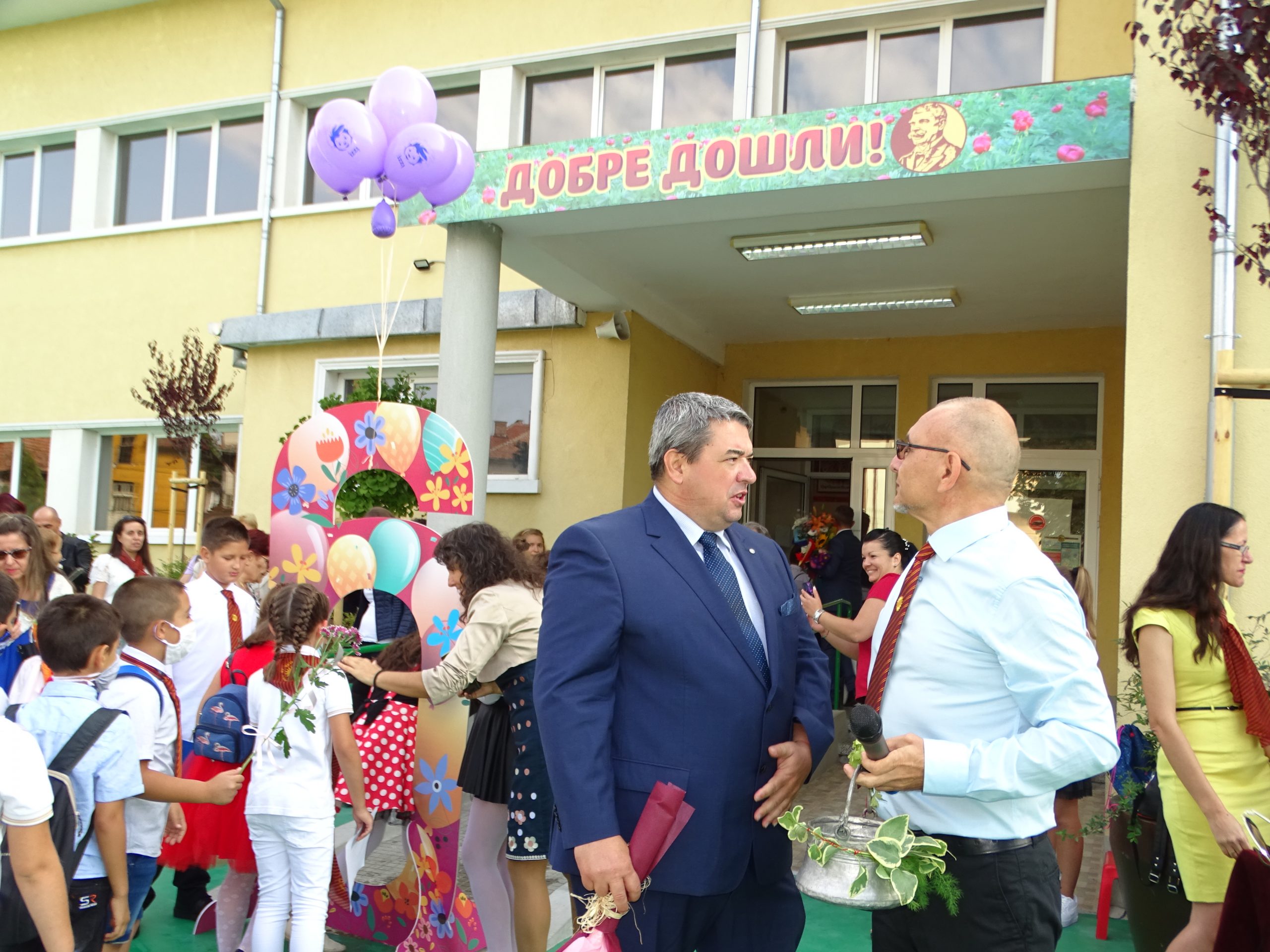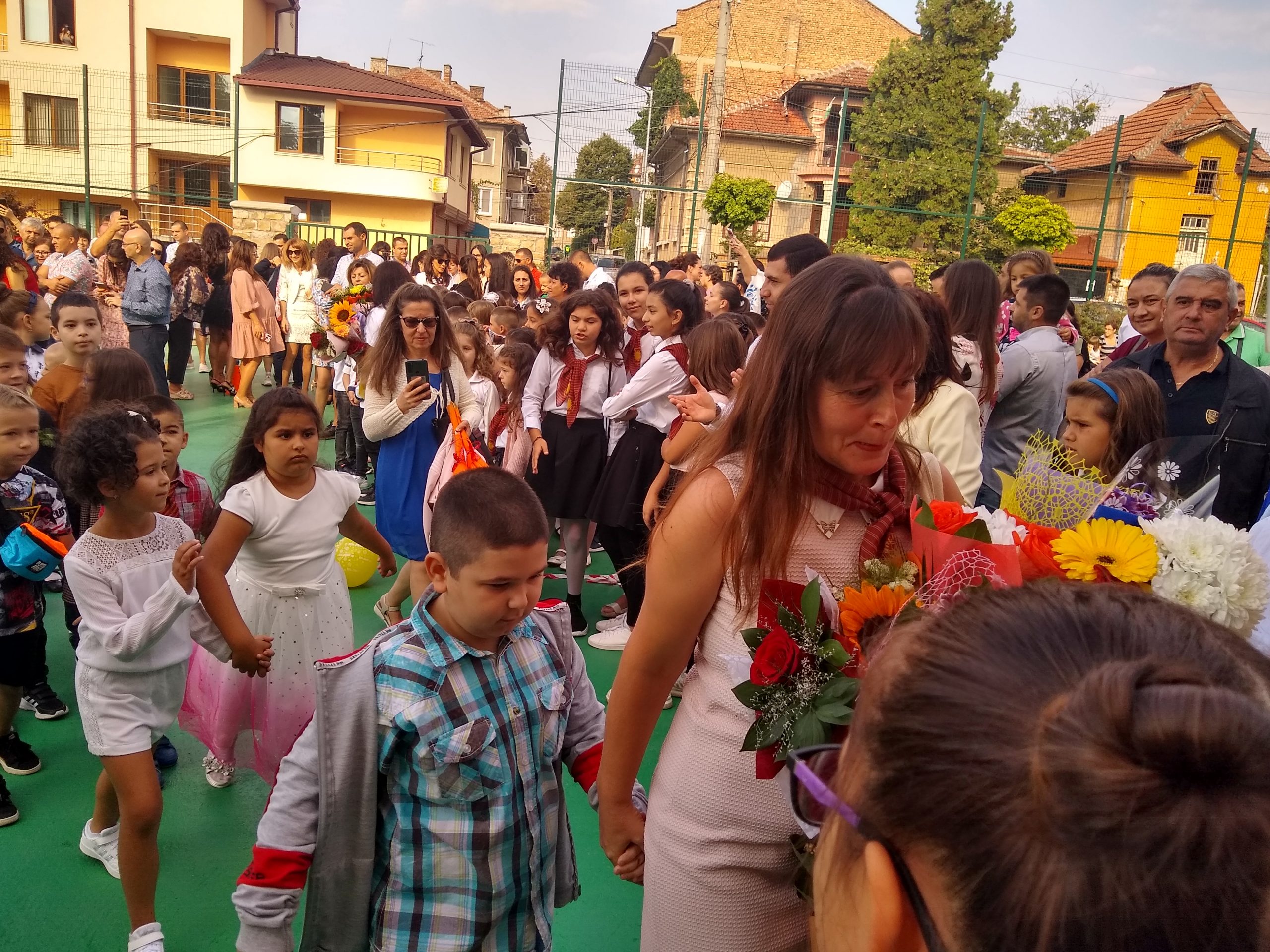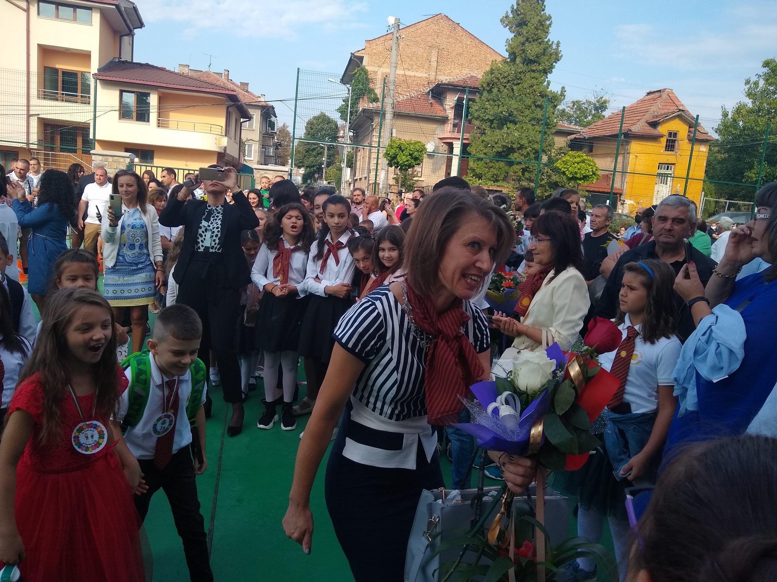 Екипът на ОУ „Иван Вазов“ зарадва ученици, родители и гости с повече зеленина в училищния двор, с по-добра спортна база и обновени кабинети. Първият учебен звънец проехтя два пъти в училището и тържествата бяха две, заради мерките срещу коронавируса. Точно в 9 часа прозвуча химнът и бе издигнато знамето на България. Честта за неговото издигане бе на най-изявените ученици на училището, отличили се с особени постижения през миналата година. Празничното посрещане на първокласниците беше уважено от един бивш възпитаник на училището – кметът инж. Добромир Добрев и общинският съветник Йордан Михтиев. Молитва за здраве и мъдрост отправи отец Зоран Мамучевски, който благослови ученици и учители. Учениците от начален етап минаха през огромна „6“ с надежната новата учебна година да бъде много успешна за тях. След като най-малките заеха своите места по чиновете, започна празникът и за по-големите ученици.