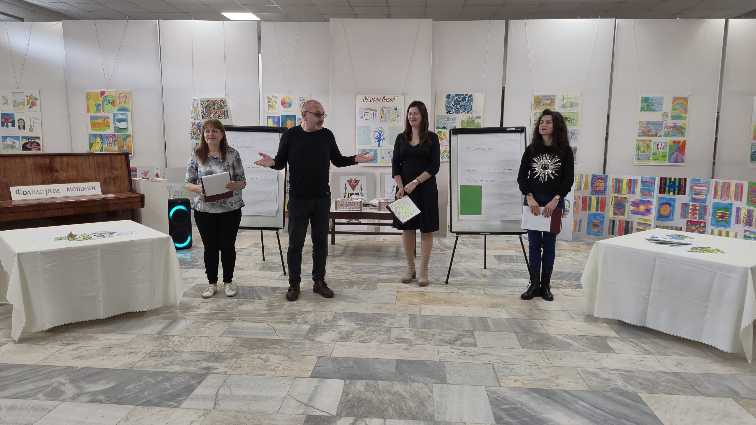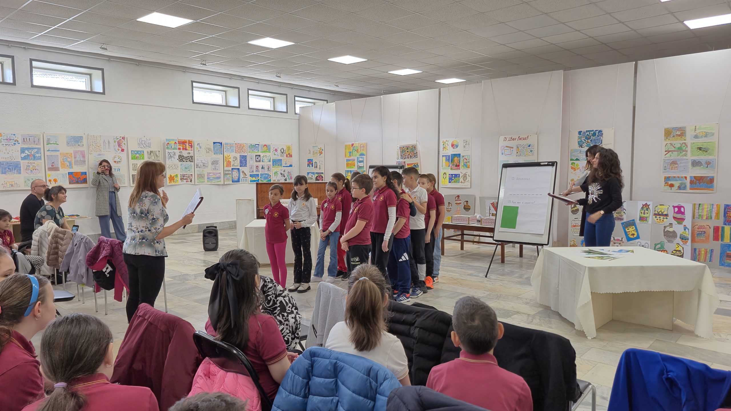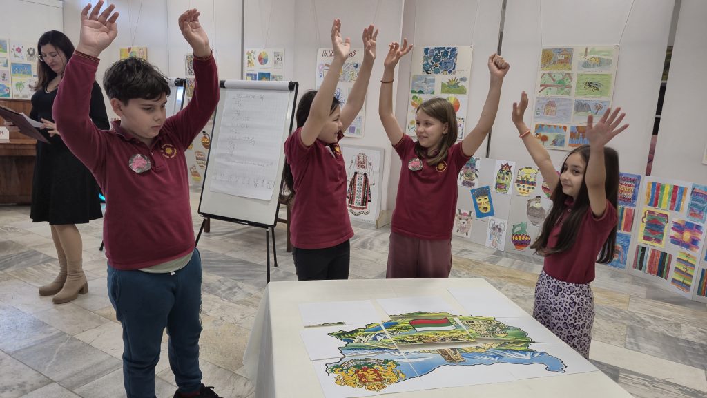 На фона на представената изложба „Фолклорни мотиви“, представена още по време на откриването на училищната изложба в Художествена галерия „Недялко Каранешев“, гр. Горна Оряховица учениците от всички трети класове на ОУ „Иван Вазов“ проведоха интерактивната  игра „Моя България. Всички бяха  заредени и готови за славна битка със знания.  Директорът на училището г-н Иван Момъков откри играта като подчерта значението на извънучилищната форма на осъществяване на тази прекрасна идея. На събитието присъстваха още и г-жа Гергана Павлова – зам. директор на училището, както и г-жа Деница Александрова – уредник на галерията и преподавател в катедра „Графика във ВТ университет „Св. св. Кирил и Методий“. Под ръководството на  своите учители Розалия Нанкова, Гергана Манчева, Ирина Стефанова, Нели Събева и Даниела Величкова третокласниците показаха какво са научили във всички учебни  часове в трети клас. Играта е посветена на патронния празник на училището, както и 150 годишнината от избухване на Априлското въстание.