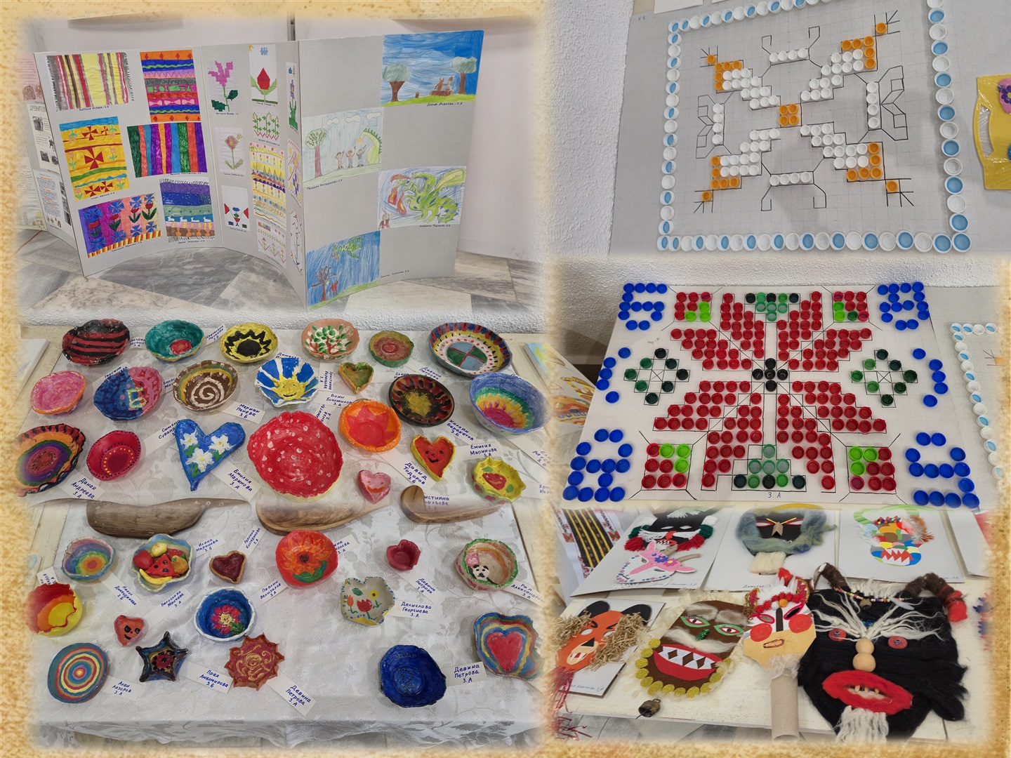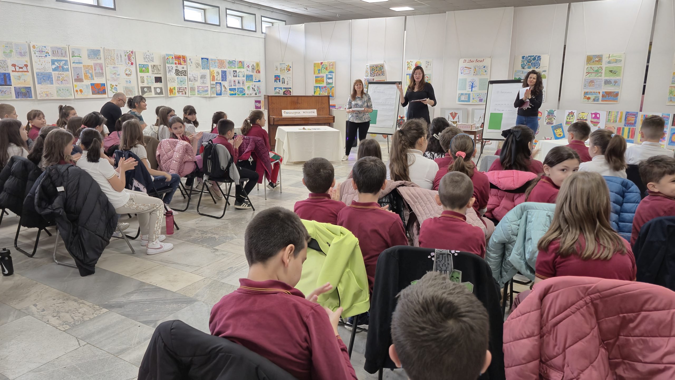 Проектът, върху който са работили всички третокласници заедно с  учители и родители започна още от началото на втория учебен срок. Проведени са няколко бинарни уроци, в които съчетаваха български език, литература, музика, изобразително изкуство, математика, човекът и обществото, човекът и природата, технологии и предприемачество, т.е. всички учебни дисциплини бяха обект на междупредметни вързки. Всичко това е събрано в представената изложба „Фолклорни мотиви“. Тя съдържа 40 табла и множество творби от приложното изкуство – кукерски маски, глинени съдове, проекти на халище и килимчета, оцветени стомнички, българска шевица от капачки, екипни проекти на женски носии. Представени са и проекти, свързани с Първото и Второто българско царство. Учениците създадоха своя книга със съчинения на тема „За мен България е…“. Произведенията са изработени в различни учебни часове, както и в часовете в занимания по интереси и ЦДО.