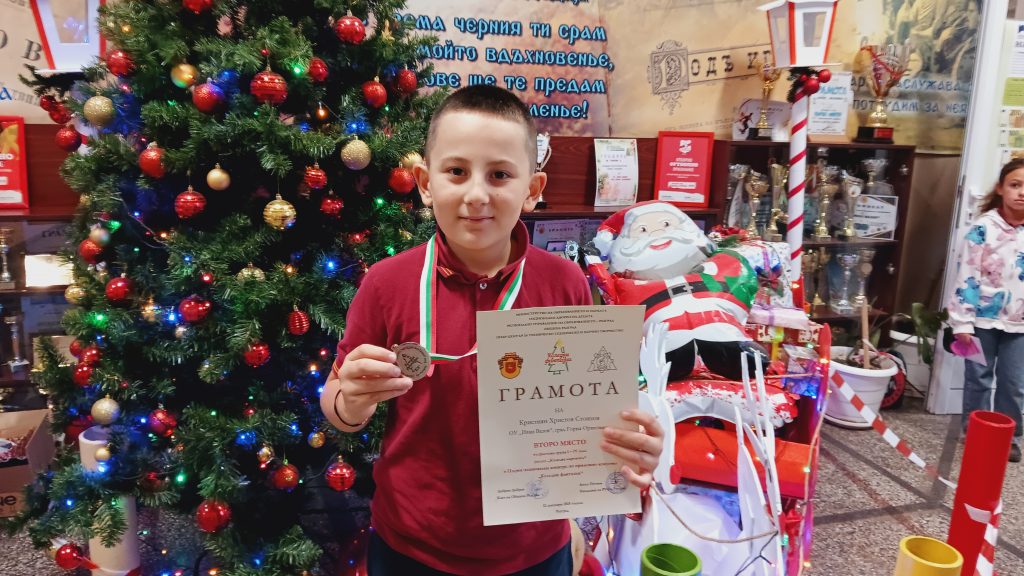 Кристиян Христов Стоянов, ученик във 2а клас, с класен ръководител Светла Новакова спечели почетното 2 място в Първи национален конкурс по приложно изкуство „Коледни фантазии“. Журито разгледа над 6980 творби от 350 училище, детски градини , ЦПЛР и школи от 169 населени места от всички 28 области в България.
