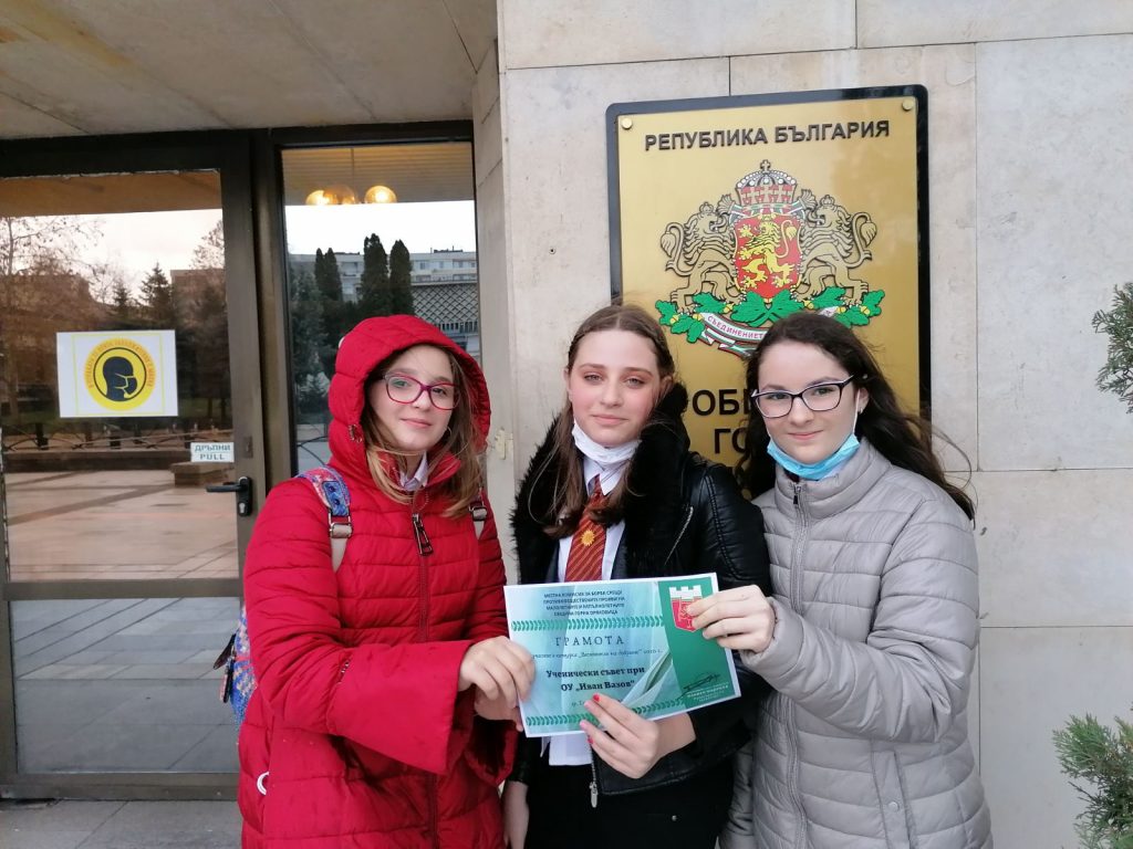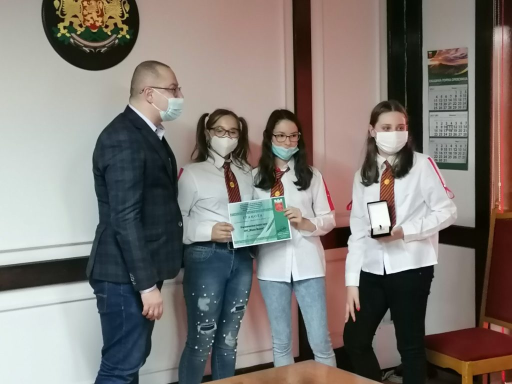 На 11.02.2021 г. представителите на ученическия съвет получиха грамота и плакет от председателя на общински съвет гр. Горна Оряховица, г-н Димитър Николов.