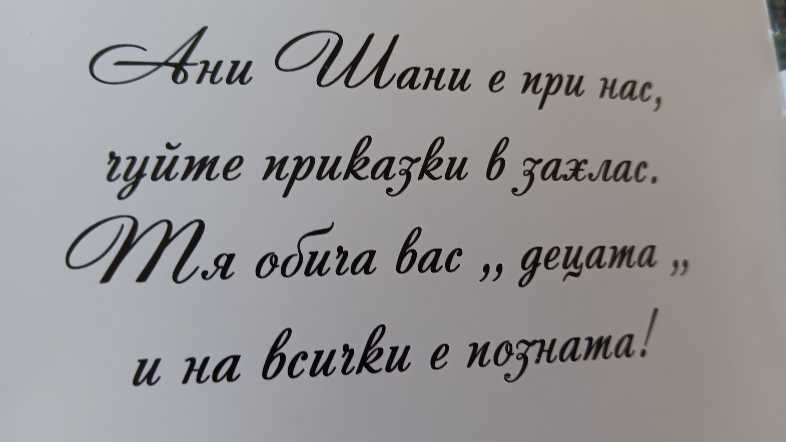 Днес авторката на детски книжки Ани Шани представи своите стихове  пред ученици от начален етап. Над 20 малчугани слушаха в захлас римувани стихове и приказки написани от нея. В увлекателен диалог поетесата достигна до сърцата на децата, които тепърва осъзнават какво е любовта към четенето. Учениците зададоха любопитни въпроси , на които авторката с огромно вхъдновение отговори. Децата изпратиха я изпратиха с бурни аплодисменти и с покана да гостува отново.
