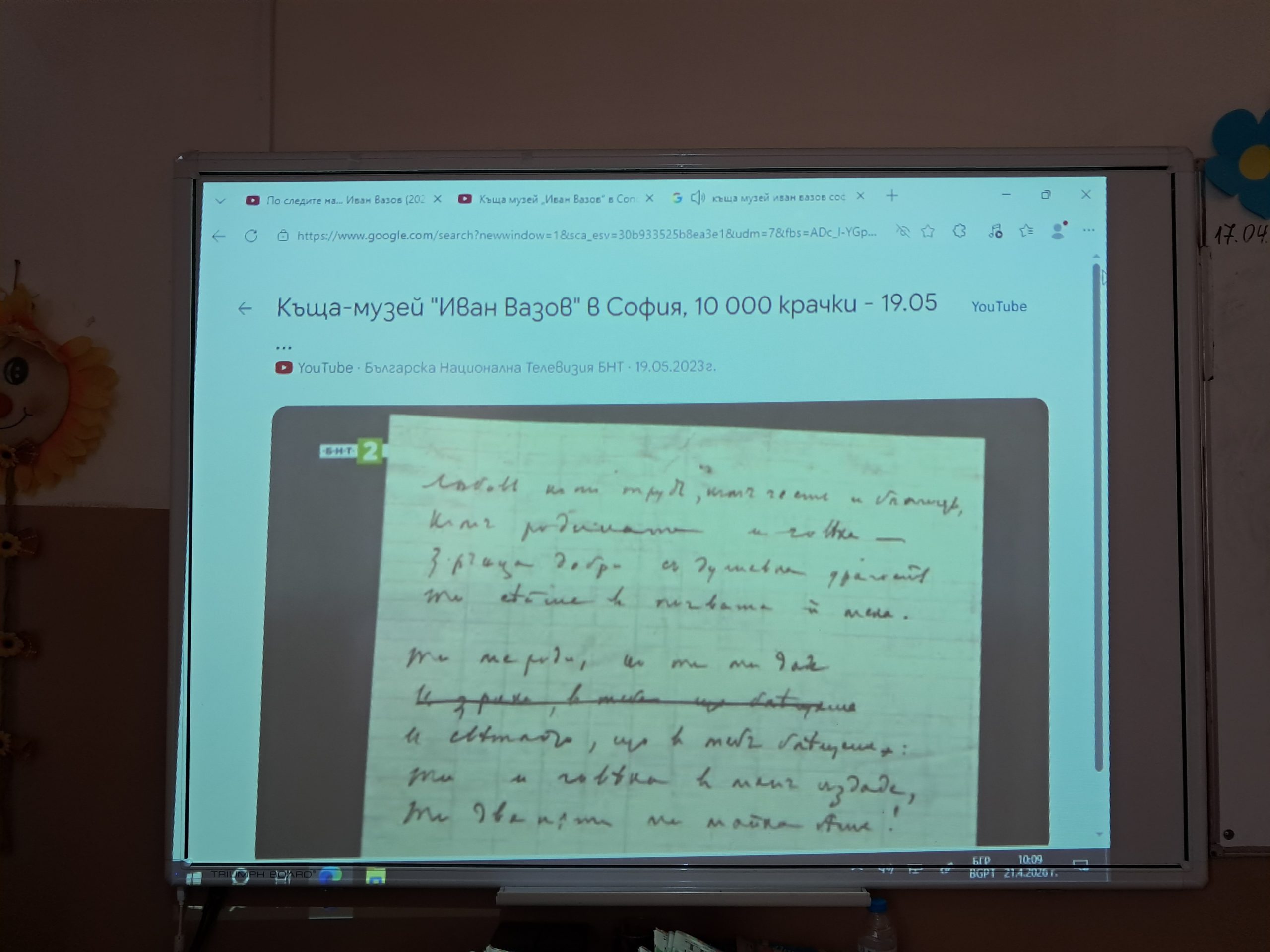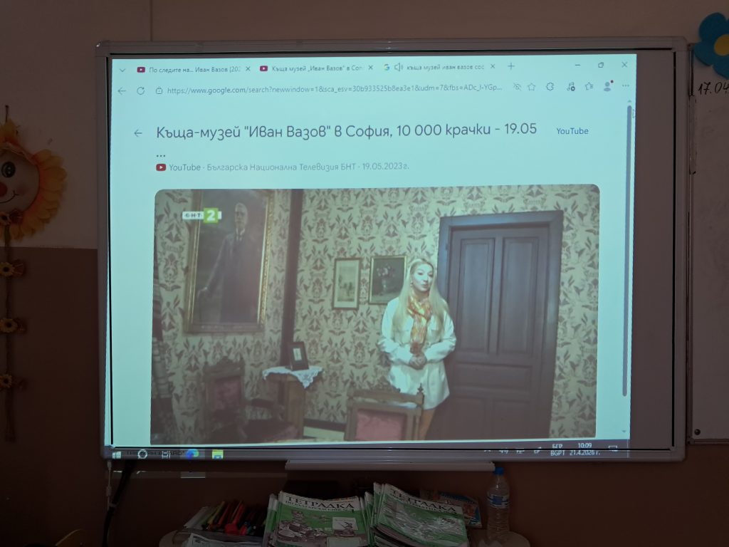 В празничния ден учениците гледаха документалия филм „ По следите на Вазов”, който ги отведе на вълнуващо пътешествие из живота и творчеството на Патриарха на българската литература. Децата с интерес гледаха и филми, посветени на къщите музеи на Иван Вазов в Сопот и София, като научиха любопитни факти за местата, където е живял и творил големият български писател.