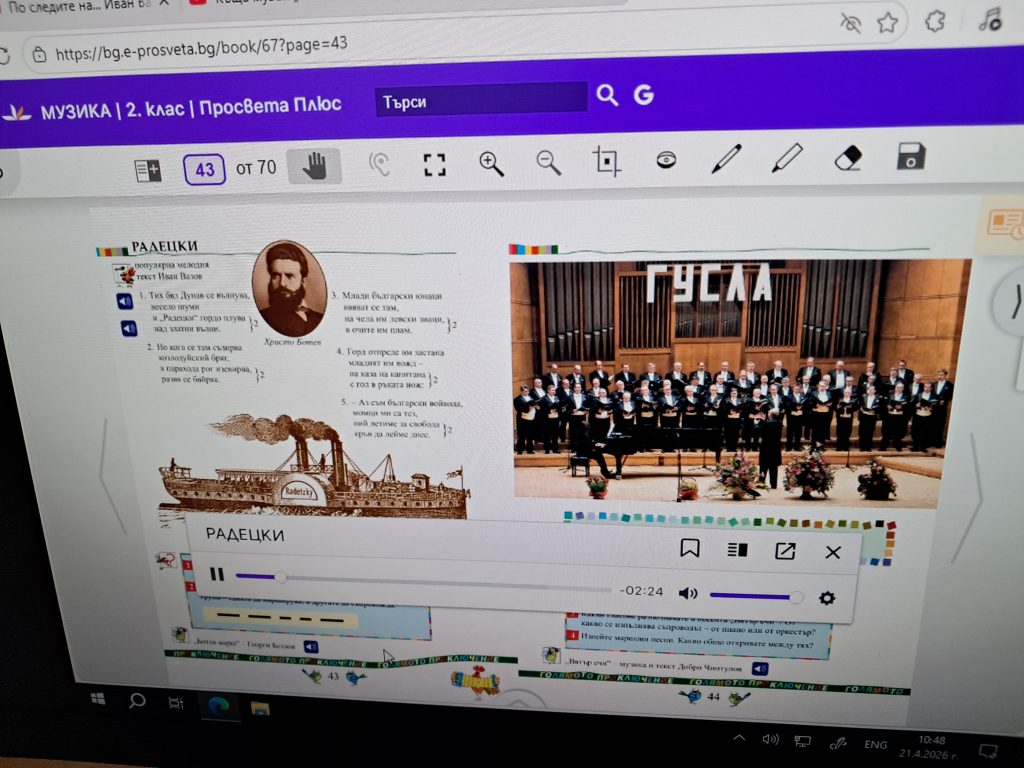 Празникът продължи с музикална част, в която второкласниците с ентусиазъм изпяха песните „ Аз съм българче” и „ Радецки”, изпълвайки класната стая с гордост и любов към родината.