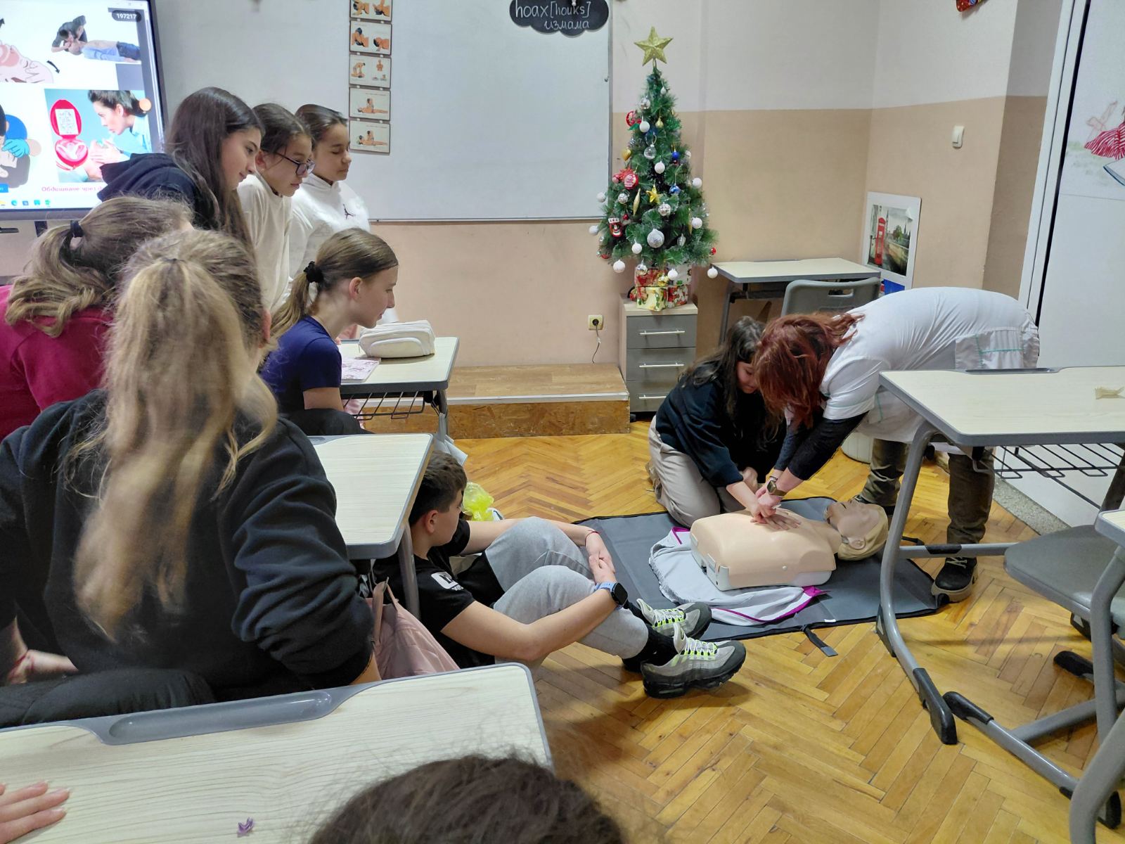 Важната поука от урока е, че знанието как да се оказва първа помощ може да спаси човешки живот. Занятието бе проведено от учителите – г-н Стоянов, г-жа Йорданова и г-жа Марчевска, които чрез екипна работа създадоха условия за полезно, ефективно и запомнящо се обучение.