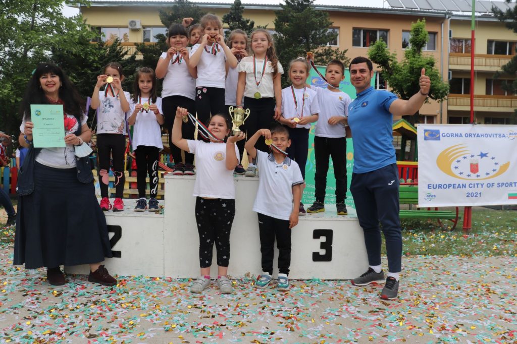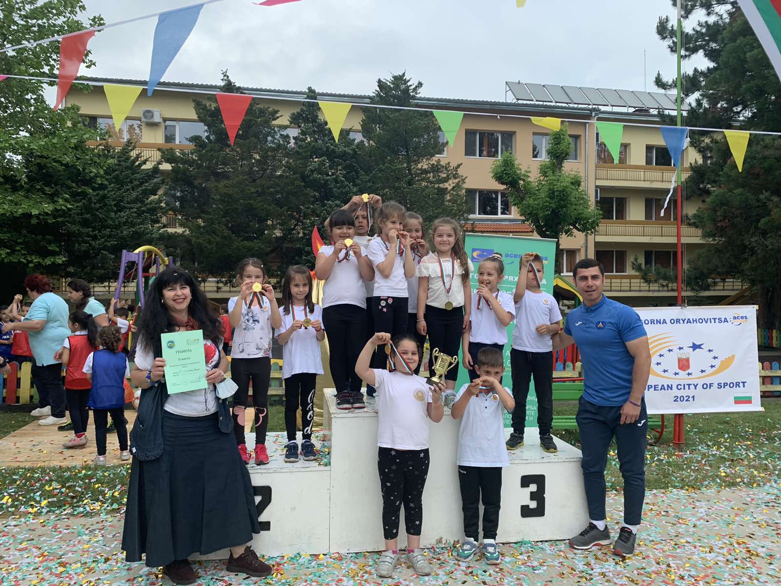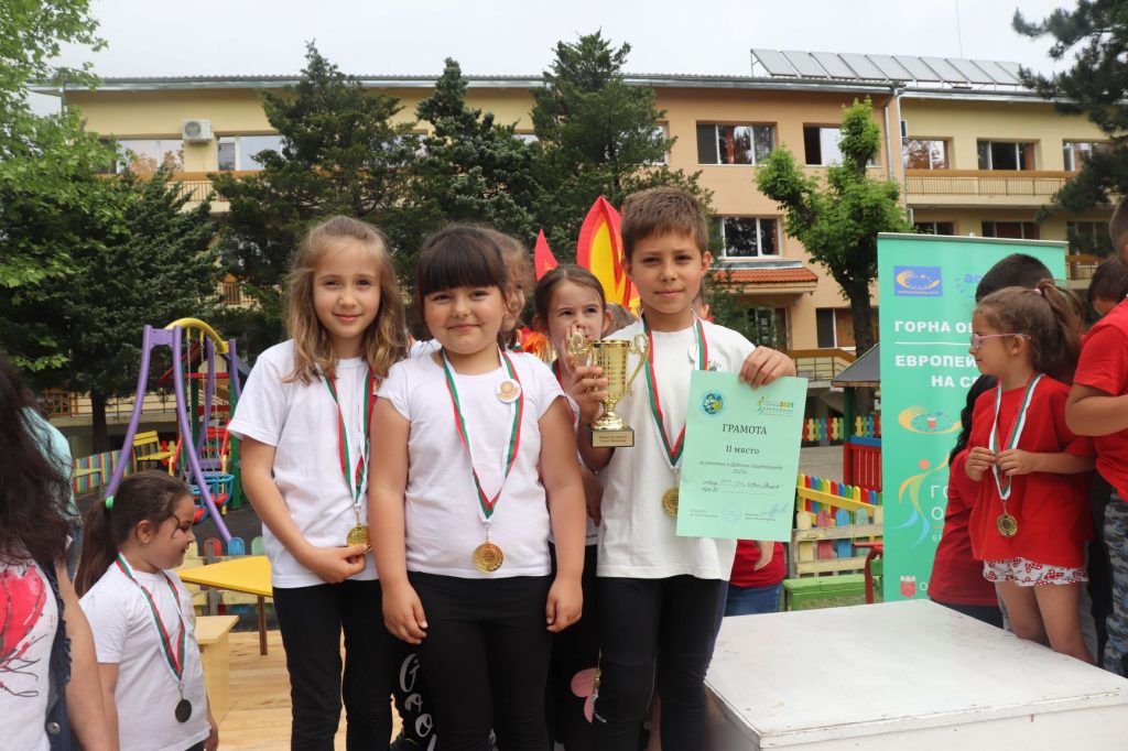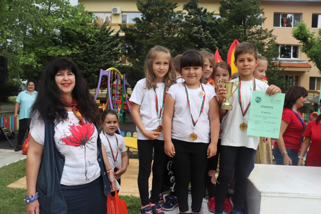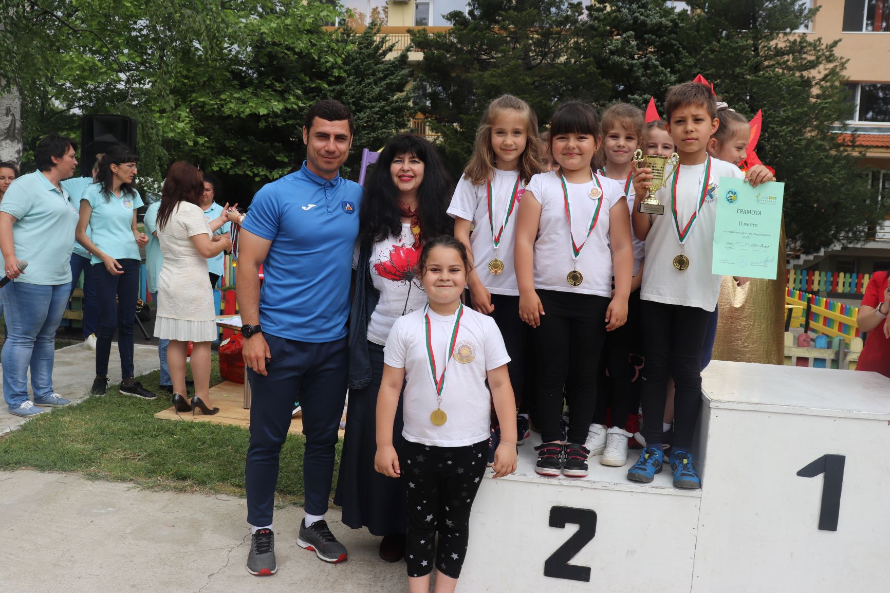 Малчуганите от група за задължителна предучилищна подготовка, с учител Валентина Стойкова и учител по ФВС Иван Маринов, участваха в Детската спартакиада, която се проведе в ДГ“Елена Грънчарова „,гр.Горна Оряховица. В организираните игри децата се изявиха с бързина, точност, прецизност и дисциплинираност и заслужено спечелиха купа и второто място. Наградите връчи кметът на общината Добромир Добрев.