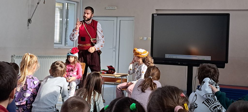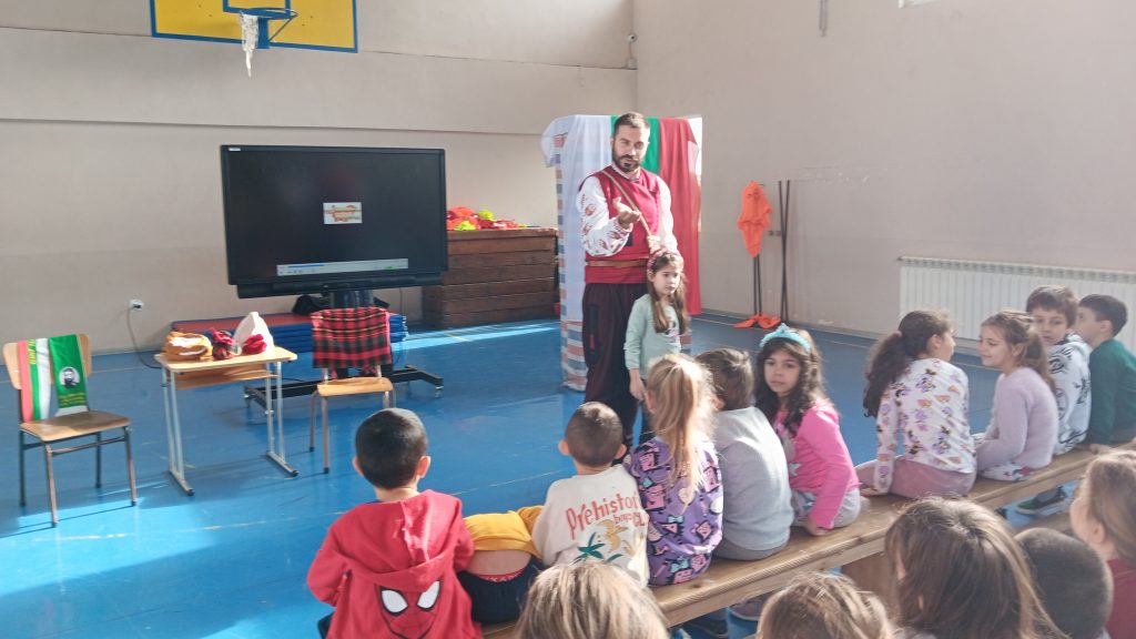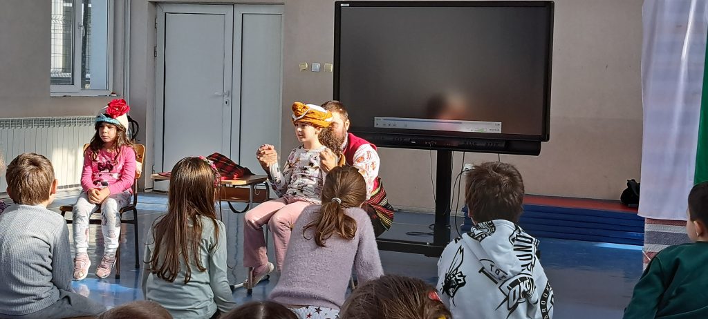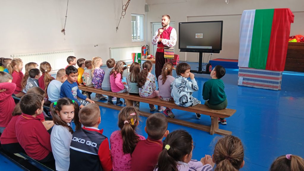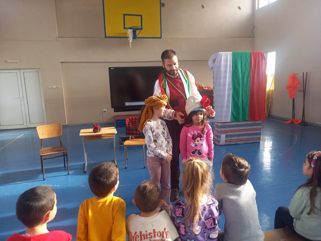 Писателят Искрен Красимиров, основател на проекта „Незабравимата България“, гостува на малчуганите от ПГ и първи клас с новия си образователен проект. Той представи урок по родолюбие на деца и ученици с изпълнение на своя нов спектакъл „Приказки безкрай“, превъплъщавайки се в ролята на Хитър Петър. Спектакълът е изграден около три от най-обичаните български народни приказки – „Тримата братя и златната ябълка“, „Крали Марко“, и разбира се – незабравимият Хитър Петър, който бе и водещ на спектакъла. Малчуганите от първи клас също се включиха активно, като участваха в няколко от сцените като помощници на Хитър Петър. Срещата завърши с