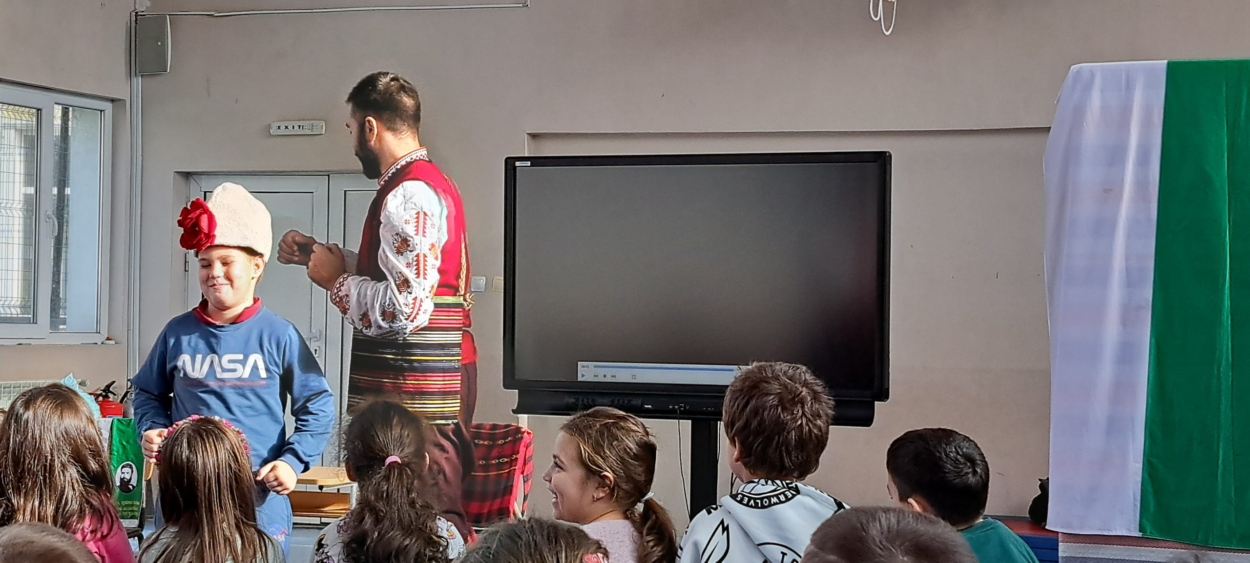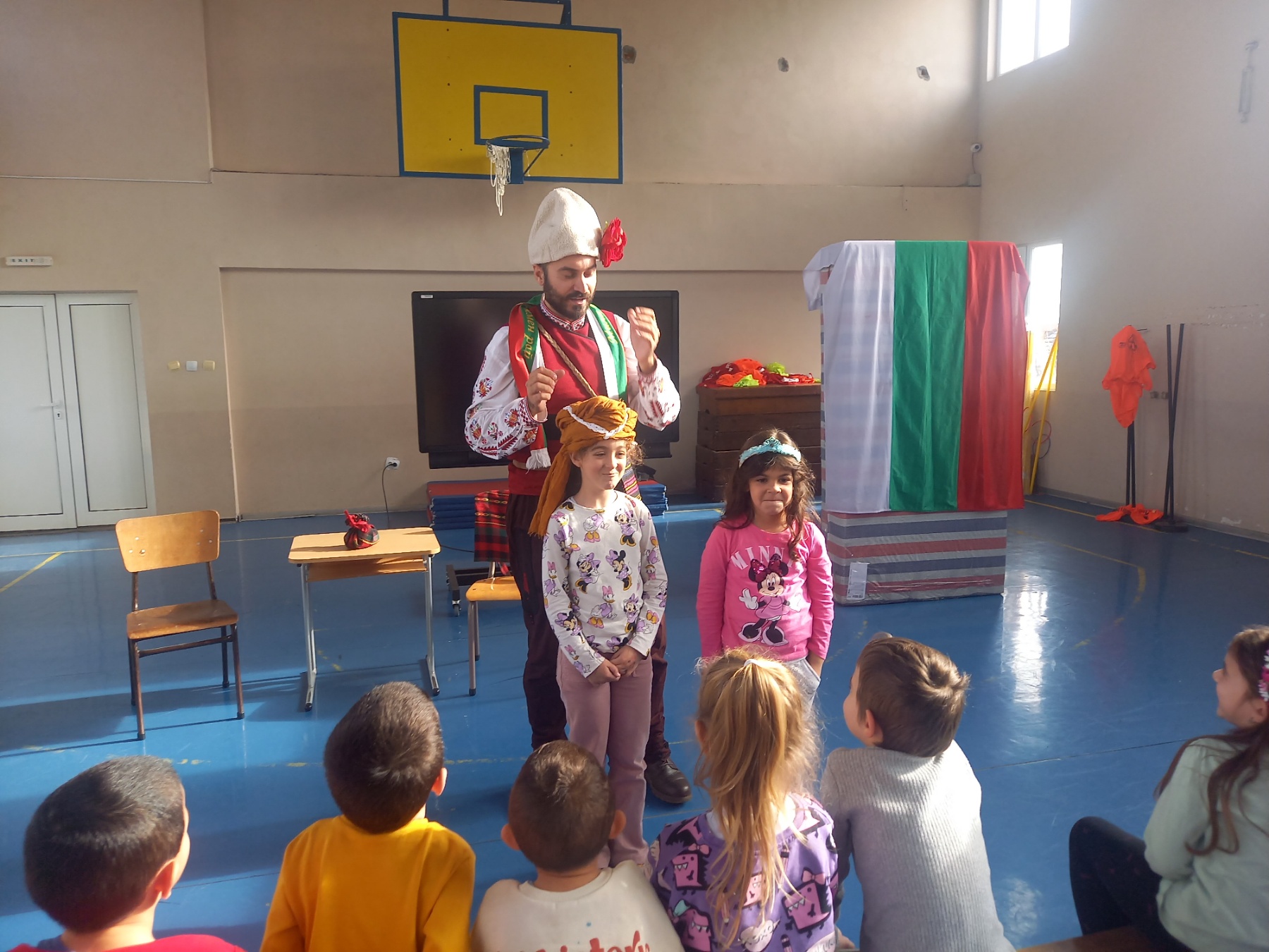 Писателят Искрен Красимиров, основател на проекта „Незабравимата България“, гостува на малчуганите от ПГ и първи клас с новия си образователен проект. Той представи урок по родолюбие на деца и ученици с изпълнение на своя нов спектакъл „Приказки безкрай“, превъплъщавайки се в ролята на Хитър Петър. Спектакълът е изграден около три от най-обичаните български народни приказки – „Тримата братя и златната ябълка“, „Крали Марко“, и разбира се – незабравимият Хитър Петър, който бе и водещ на спектакъла. Малчуганите от първи клас също се включиха активно, като участваха в няколко от сцените като помощници на Хитър Петър. Срещата завърши с