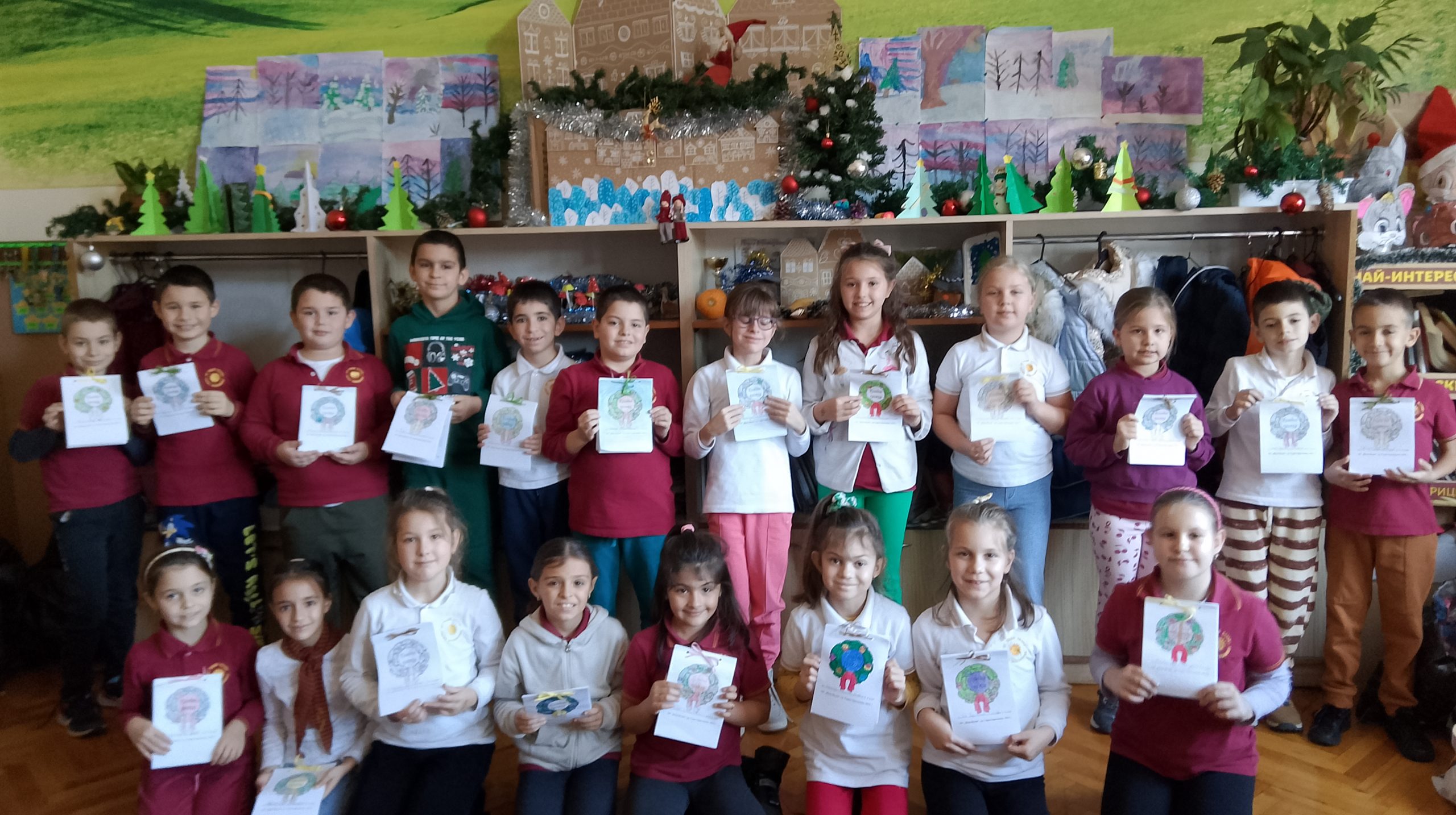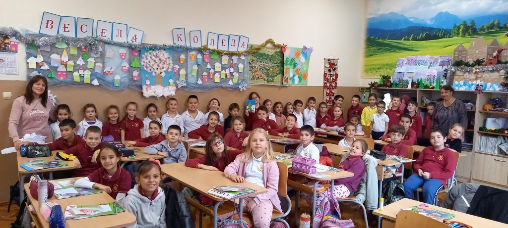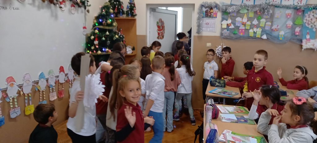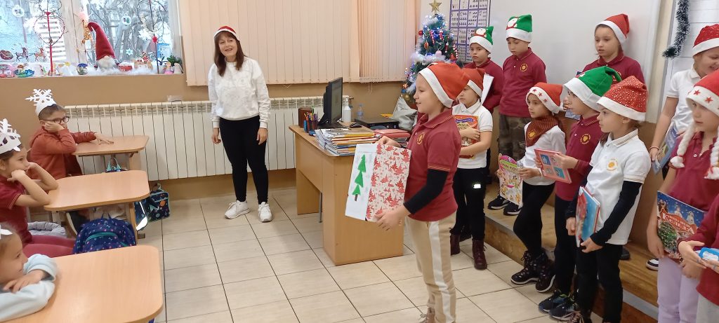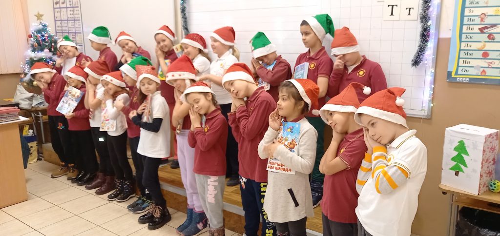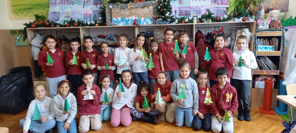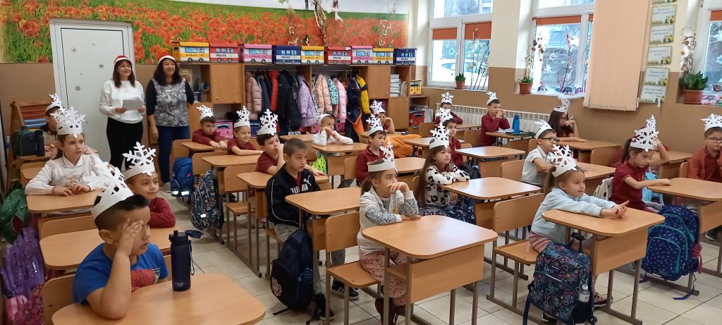Учениците от 1. А клас и 2. А клас, с класни ръководители г-жа Светла Новакова и г-жа Розалия Нанкова, успешно приключиха проекта „ Зимните празници“. На организираните срещи учениците показаха своите знания и умения по темата, придобити в процеса на провеждането на извънкласните занятия и урочни дейности. Децата разбраха, че за да се запазят българските народни традиции и обичаи, е необходимо да се изучават и пресъздават. Проектното обучение подпомогна те да интегрират свои знания от уроците по музика, изобразително изкуство, технологии и предприемачество, български език и литература, математика и родинознание. Първокласниците изработиха красива коледна украса в класната стая, сурвакници и сувенири. В часовете за дейности по интереси изработиха прекрасни снежинки, които се превърнаха в чудесен декор за представянето им по време на изпълненията. Второкласниците се включиха с рисуване на зимен пейзаж, изработиха обемни елхички от хартия, картички и коледна украса-пано „Коледно селце“. С огромен интерес се запознаха с техниката апликиране с пластилин, изработиха си коледна книжка. Взаимните посещения по класовете бяха изпълнени с коледно настроение и емоции. Двата класа се представиха със заучени стихове за зимните празници Коледа и Нова година. Първокласниците изпяха песента „Зимно хоро“, а след изпяването на песента „Мечо готви се за сън“ второкласниците разказаха любопитни факти за живота на мечката. Мил жест направи второкласничка, която беше изработила Коледна пощенска кутия с пожеланието догодина, когато и те станат във втори клас, сами да напишат поздравителните картички.