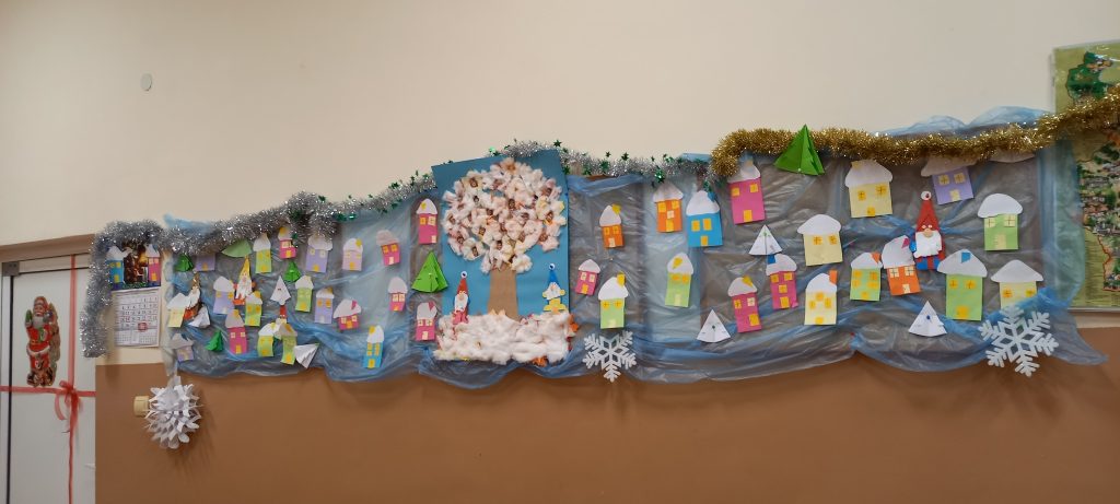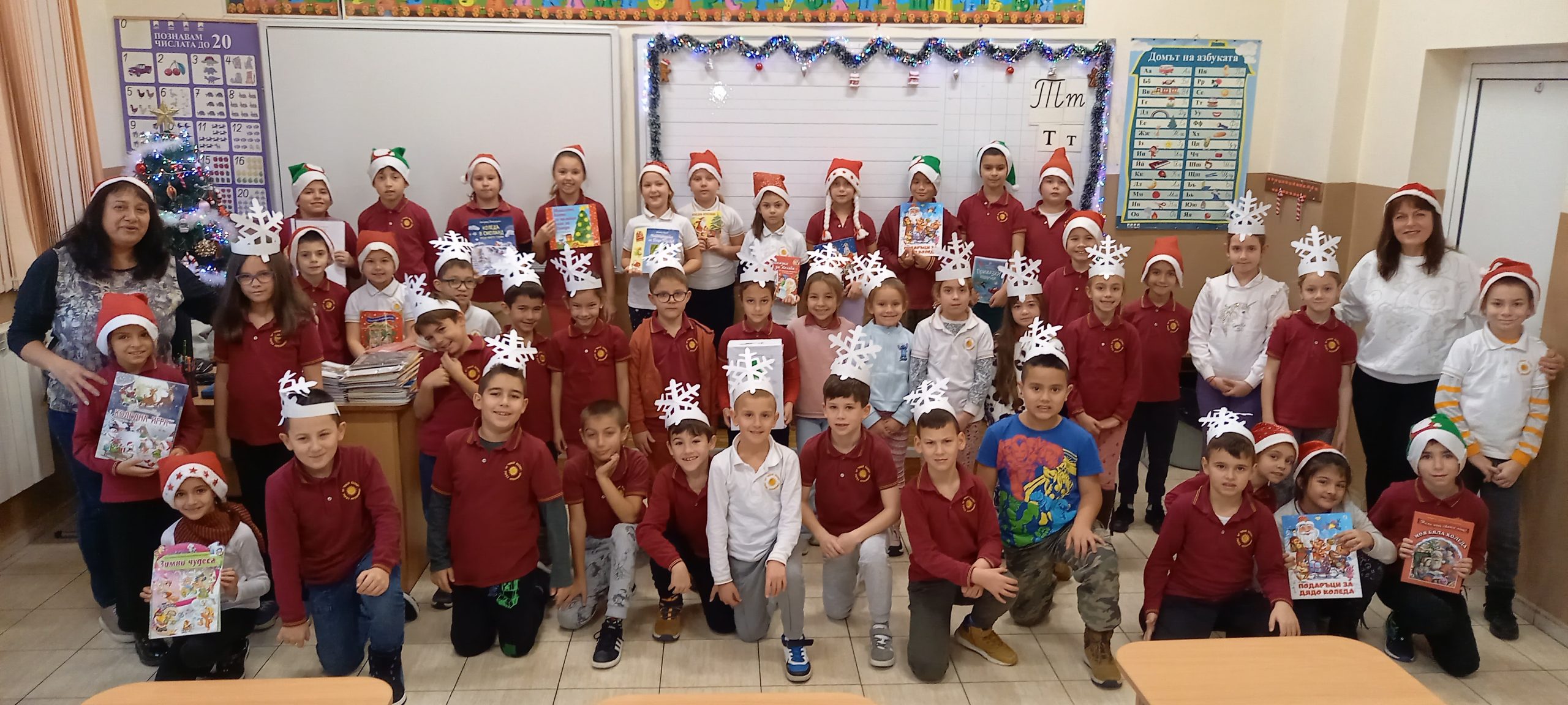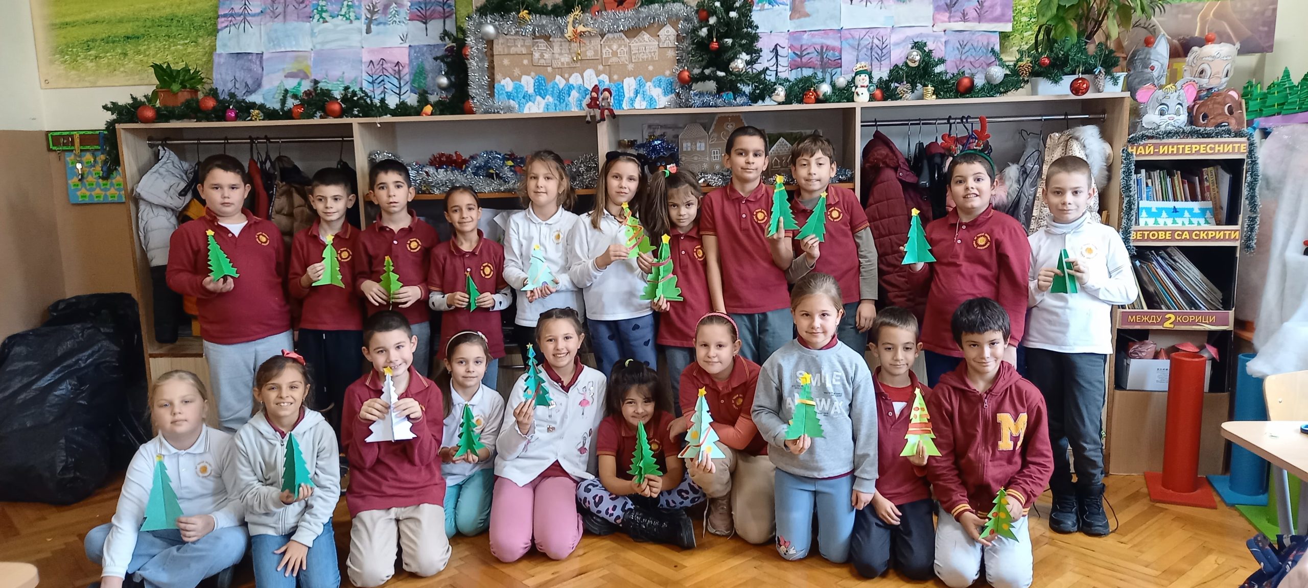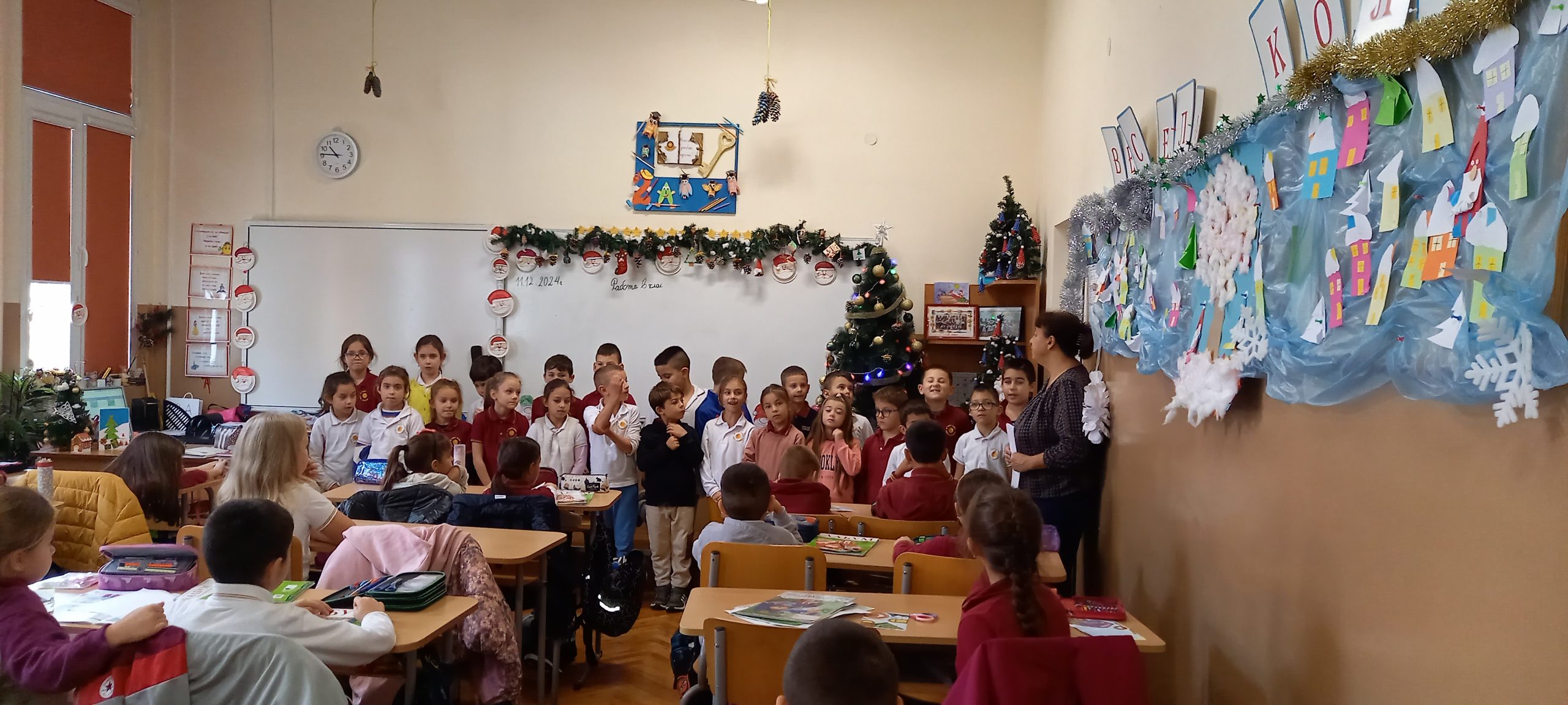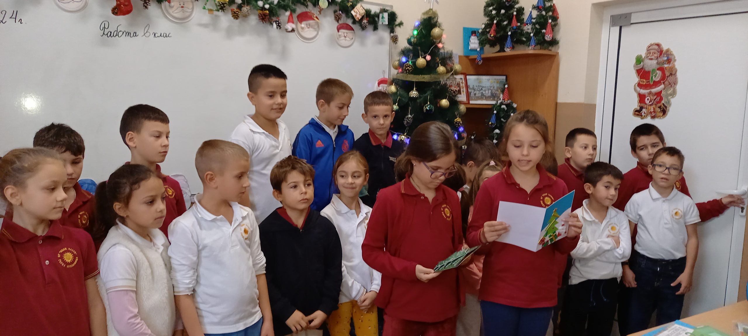 Учениците от 1. А клас и 2. А клас, с класни ръководители г-жа Светла Новакова и г-жа Розалия Нанкова, успешно приключиха проекта „ Зимните празници“. На организираните срещи учениците показаха своите знания и умения по темата, придобити в процеса на провеждането на извънкласните занятия и урочни дейности. Децата разбраха, че за да се запазят българските народни традиции и обичаи, е необходимо да се изучават и пресъздават. Проектното обучение подпомогна те да интегрират свои знания от уроците по музика, изобразително изкуство, технологии и предприемачество, български език и литература, математика и родинознание. Първокласниците изработиха красива коледна украса в класната стая, сурвакници и сувенири. В часовете за дейности по интереси изработиха прекрасни снежинки, които се превърнаха в чудесен декор за представянето им по време на изпълненията. Второкласниците се включиха с рисуване на зимен пейзаж, изработиха обемни елхички от хартия, картички и коледна украса-пано „Коледно селце“. С огромен интерес се запознаха с техниката апликиране с пластилин, изработиха си коледна книжка. Взаимните посещения по класовете бяха изпълнени с коледно настроение и емоции. Двата класа се представиха със заучени стихове за зимните празници Коледа и Нова година. Първокласниците изпяха песента „Зимно хоро“, а след изпяването на песента „Мечо готви се за сън“ второкласниците разказаха любопитни факти за живота на мечката. Мил жест направи второкласничка, която беше изработила Коледна пощенска кутия с пожеланието догодина, когато и те станат във втори клас, сами да напишат поздравителните картички.