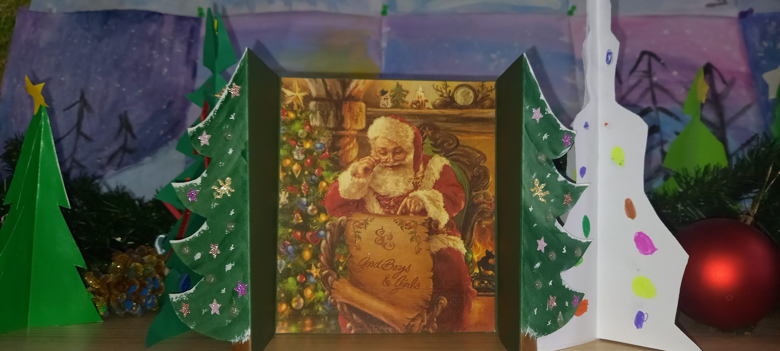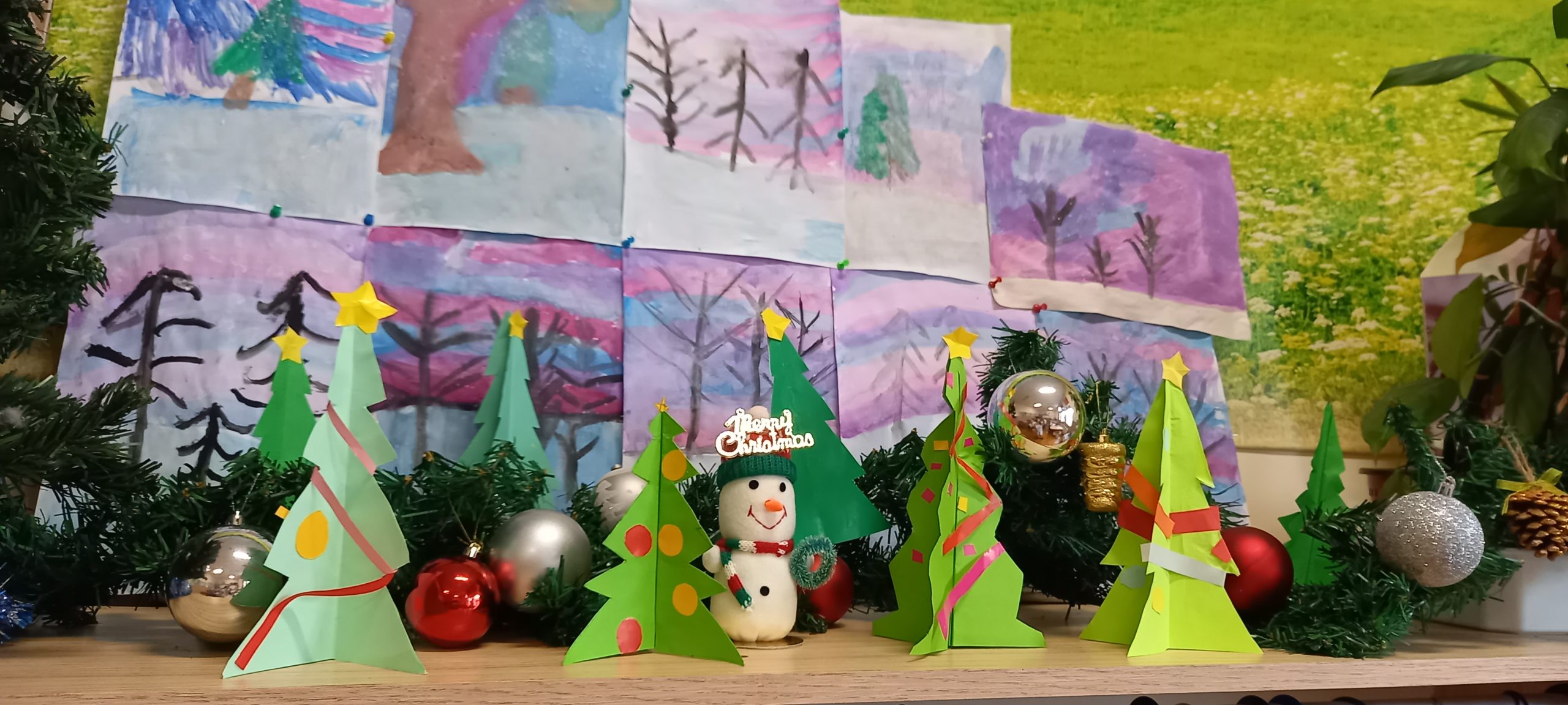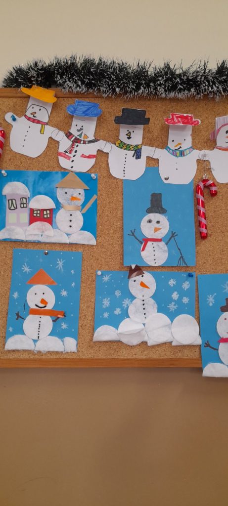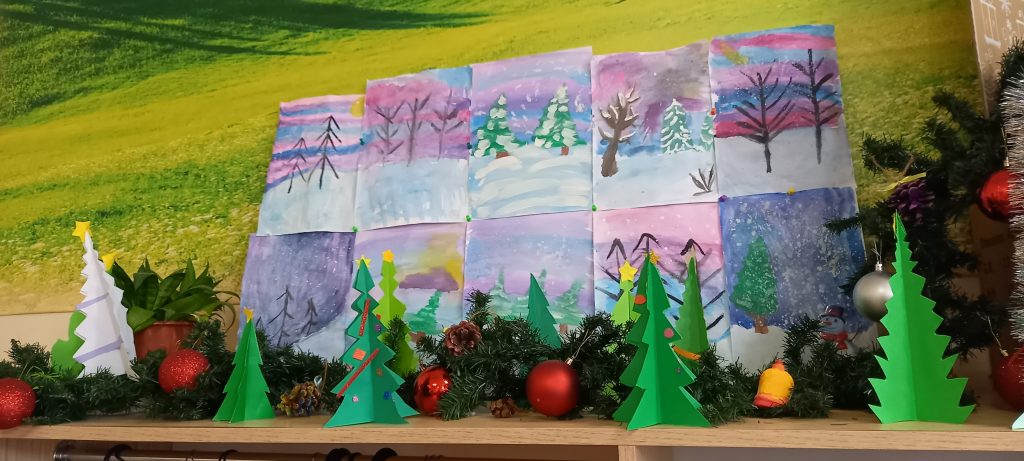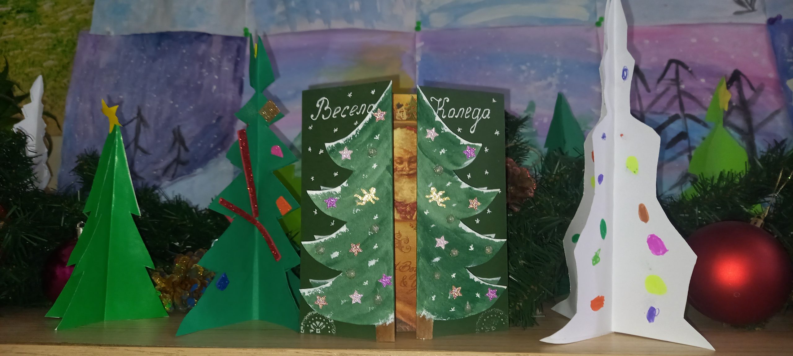 Учениците от 1. А клас и 2. А клас, с класни ръководители г-жа Светла Новакова и г-жа Розалия Нанкова, успешно приключиха проекта „ Зимните празници“. На организираните срещи учениците показаха своите знания и умения по темата, придобити в процеса на провеждането на извънкласните занятия и урочни дейности. Децата разбраха, че за да се запазят българските народни традиции и обичаи, е необходимо да се изучават и пресъздават. Проектното обучение подпомогна те да интегрират свои знания от уроците по музика, изобразително изкуство, технологии и предприемачество, български език и литература, математика и родинознание. Първокласниците изработиха красива коледна украса в класната стая, сурвакници и сувенири. В часовете за дейности по интереси изработиха прекрасни снежинки, които се превърнаха в чудесен декор за представянето им по време на изпълненията. Второкласниците се включиха с рисуване на зимен пейзаж, изработиха обемни елхички от хартия, картички и коледна украса-пано „Коледно селце“. С огромен интерес се запознаха с техниката апликиране с пластилин, изработиха си коледна книжка. Взаимните посещения по класовете бяха изпълнени с коледно настроение и емоции. Двата класа се представиха със заучени стихове за зимните празници Коледа и Нова година. Първокласниците изпяха песента „Зимно хоро“, а след изпяването на песента „Мечо готви се за сън“ второкласниците разказаха любопитни факти за живота на мечката. Мил жест направи второкласничка, която беше изработила Коледна пощенска кутия с пожеланието догодина, когато и те станат във втори клас, сами да напишат поздравителните картички.