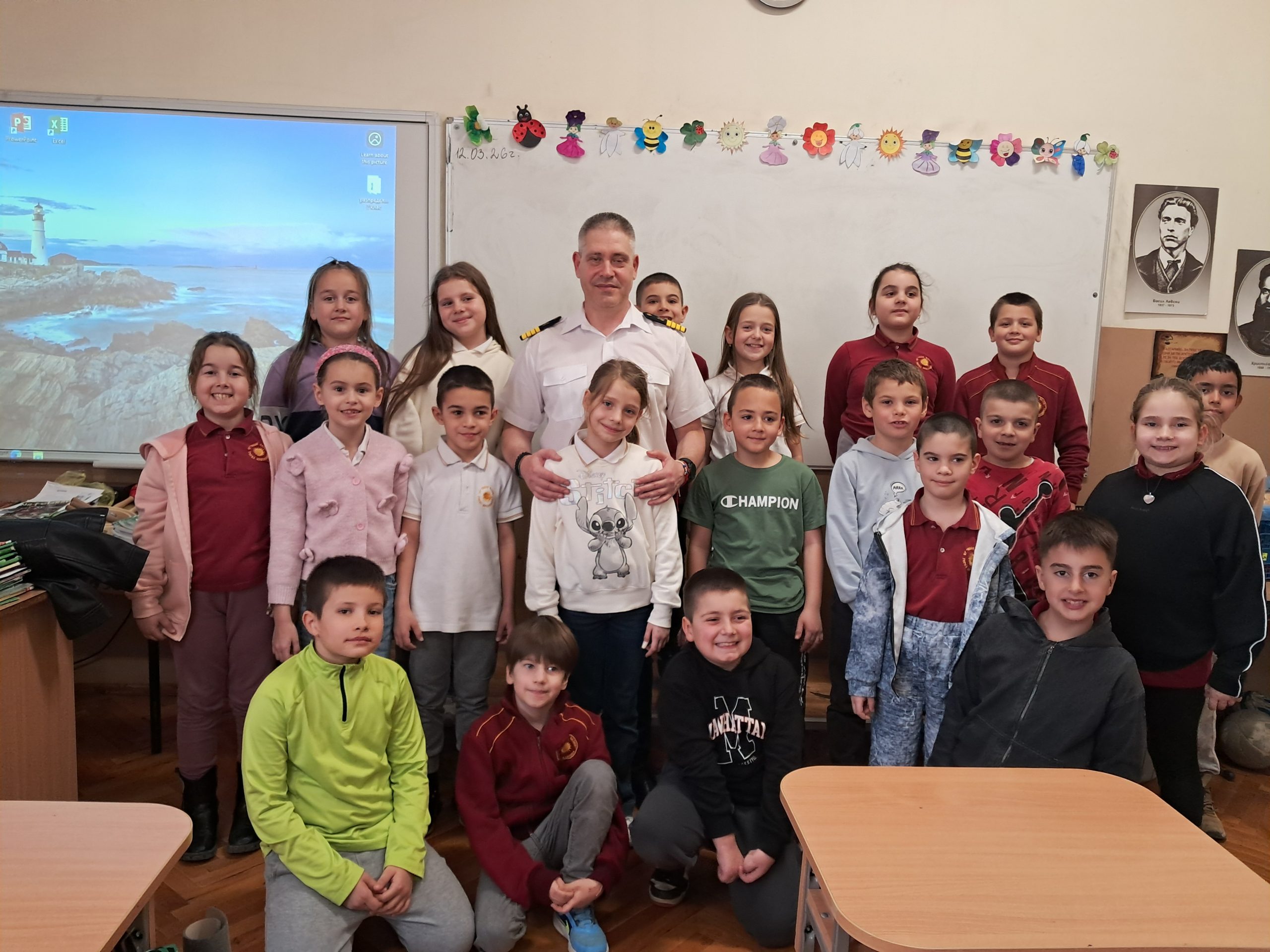 Учениците от 2.б клас с класен ръководител Петя Босилкова и учител ЦДО Елена Тодорова посрещнаха специален гост. Това е бащата на Виктория Атанасова – г-н Евлоги Атанасов – капитан далечно плаване. Г-н Атанасов е възпитаник на ОУ „Иван Вазов”. Той сподели свои ученически спомени и отбеляза промяната в училище от неговото време и времето за неговите деца днес.
