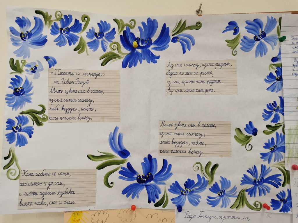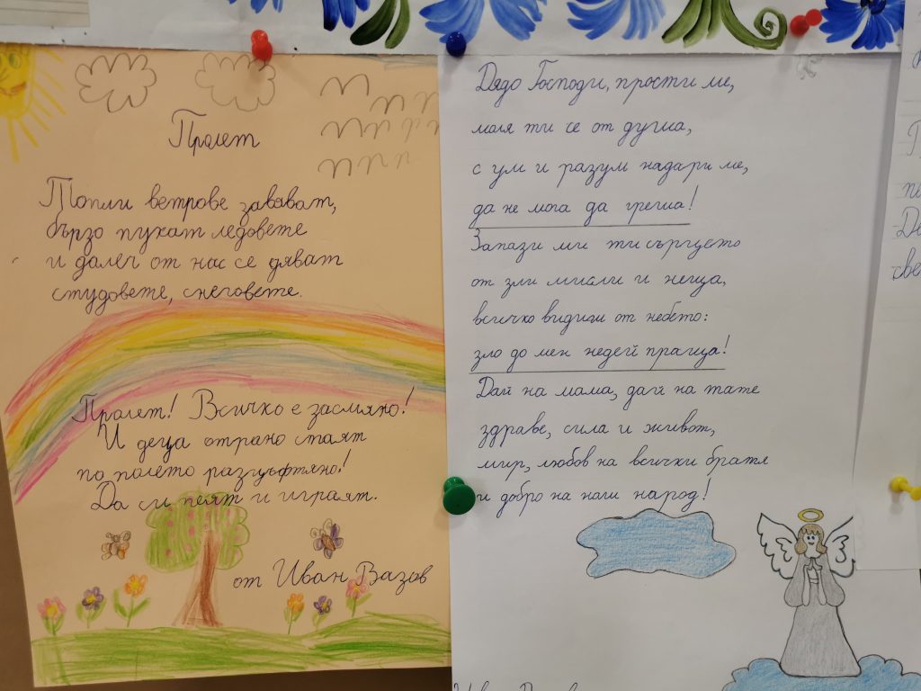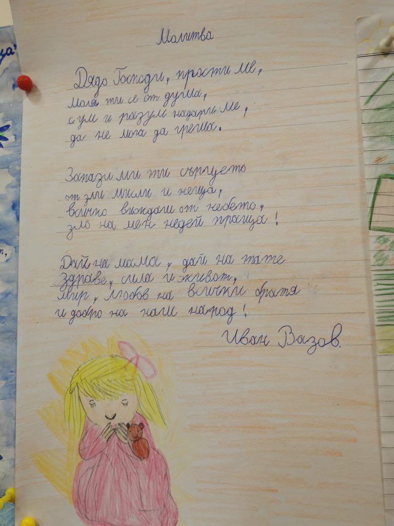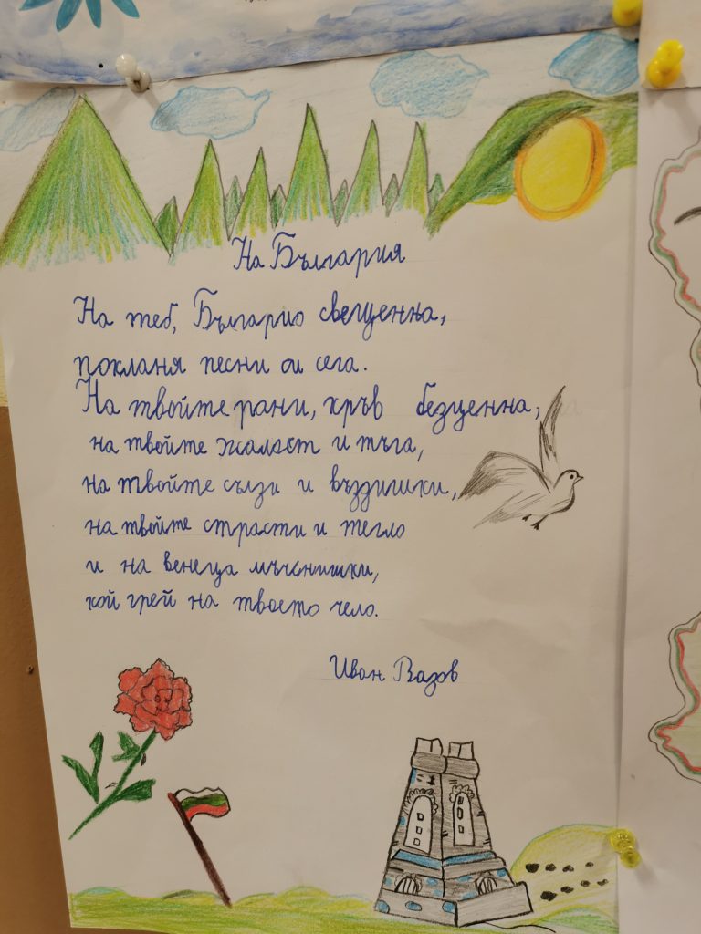 Учениците от 1 „а“ клас, с класен ръководител г-жа Лидия Минчева, за първи път празнуват патронният празник на своето училище. Те с голямо желание четоха, красиво и старателно преписваха и рисуваха илюстрации по Вазови произведения. Рецитираха „ Аз съм българче“. Подредиха изложба в класната стая. Така малките ученици изразиха своята признателност към най-великият учител по родолюбие – Иван Вазов.
