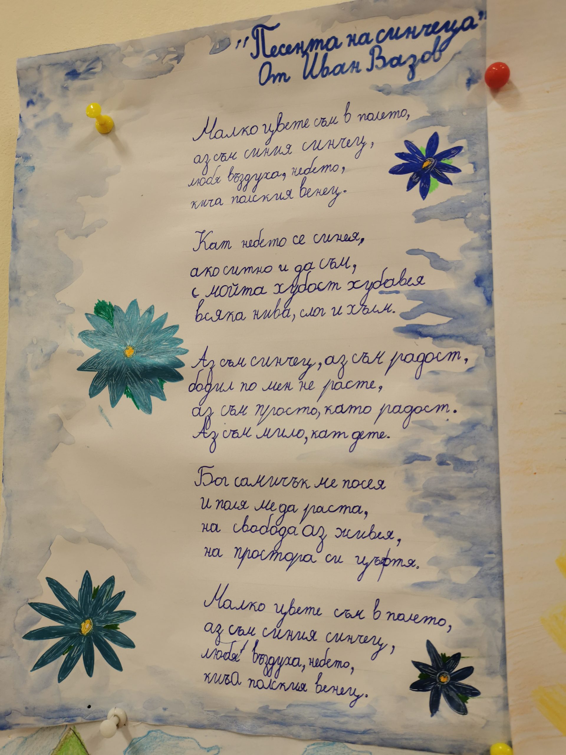 Учениците от 1 „а“ клас, с класен ръководител г-жа Лидия Минчева, за първи път празнуват патронният празник на своето училище. Те с голямо желание четоха, красиво и старателно преписваха и рисуваха илюстрации по Вазови произведения. Рецитираха „ Аз съм българче“. Подредиха изложба в класната стая. Така малките ученици изразиха своята признателност към най-великият учител по родолюбие – Иван Вазов.