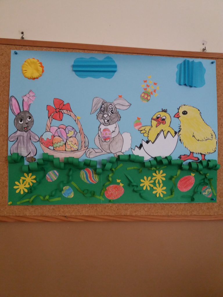 Учениците от 1 в клас изработиха със сръчните си ръчички красива украса за най-светлия християнски празник- Великден. Класната им стая грейна с “ Великденска полянка“ и други весели украси. Възпитаниците на училището и техните ръководители Даниела Величкова и Атанас Давидов, отправят своето Великденско пожелание за здраве и благополучие към своите родители и учители.