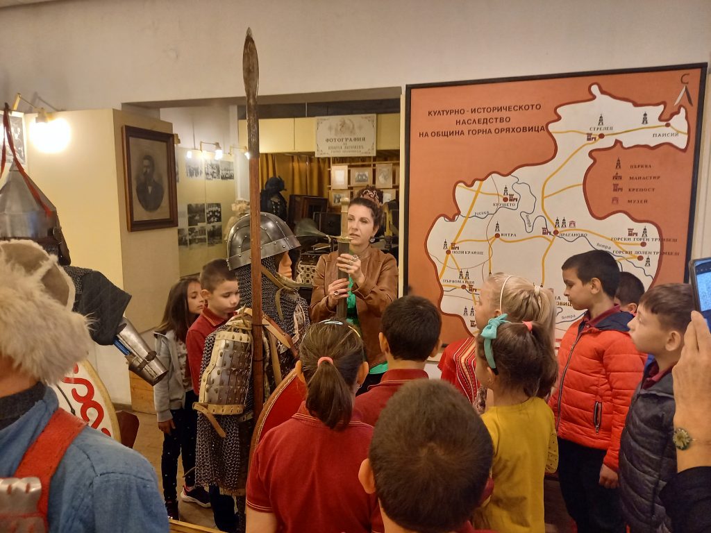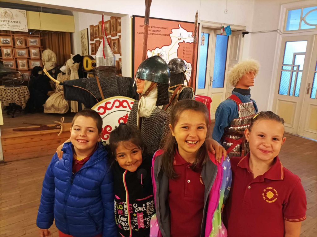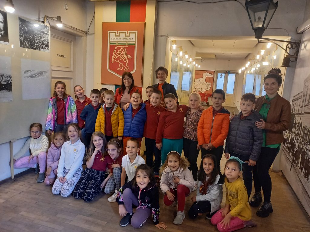 Учениците от 1. А и 1. Б клас през месец април, в чест на празника на училището, посетиха няколко институции, които са свързани с образованието и културата. Освен в художествената галерия и детски отдел към общинската библиотека, те посетиха и Историческия музей в града. Там им беше проведена беседа, която ги запозна с историята на град Горна Оряховица. Археолог и историк им разказаха за крепостта „Раховец“ и какви предмети са открили при разкопките ѝ. Също така чуха за жителите на града и едни от най-великите патриоти на България – Елена Грънчарова, Вичо Грънчаров, Георги Измирлиев и др. В Музея седнаха на чинове, на които са учили в миналото и им обясниха как са били подреждани учениците. Като едни истински ученици слушаха с интерес лекцията за града и фактите, които са събрани за Горна Оряховица. Малка армия посрещна учениците, а именно експонати, включени в пътуващата експозиция. Това е една нестандартна изложба. В нея могат да се видят войните от българската и византийската войска, в новата изложба могат да се видят облекла, въоръжение и снаряжение, накити, дори игрите на средновековния човек.Тъй като месец април е свързан с кариерното ориентиране, учениците бяха любопитни да попитат хората с какви професии са, които работят в музея.