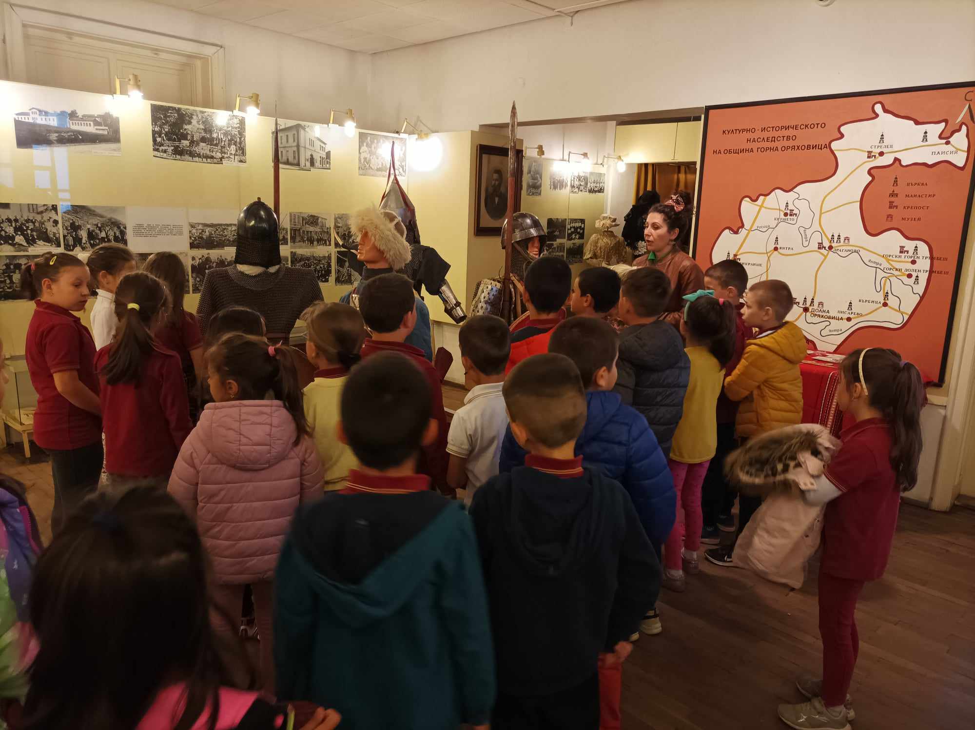 Учениците от 1. А и 1. Б клас през месец април, в чест на празника на училището, посетиха няколко институции, които са свързани с образованието и културата. Освен в художествената галерия и детски отдел към общинската библиотека, те посетиха и Историческия музей в града. Там им беше проведена беседа, която ги запозна с историята на град Горна Оряховица. Археолог и историк им разказаха за крепостта „Раховец“ и какви предмети са открили при разкопките ѝ. Също така чуха за жителите на града и едни от най-великите патриоти на България – Елена Грънчарова, Вичо Грънчаров, Георги Измирлиев и др. В Музея седнаха на чинове, на които са учили в миналото и им обясниха как са били подреждани учениците. Като едни истински ученици слушаха с интерес лекцията за града и фактите, които са събрани за Горна Оряховица. Малка армия посрещна учениците, а именно експонати, включени в пътуващата експозиция. Това е една нестандартна изложба. В нея могат да се видят войните от българската и византийската войска, в новата изложба могат да се видят облекла, въоръжение и снаряжение, накити, дори игрите на средновековния човек.Тъй като месец април е свързан с кариерното ориентиране, учениците бяха любопитни да попитат хората с какви професии са, които работят в музея.