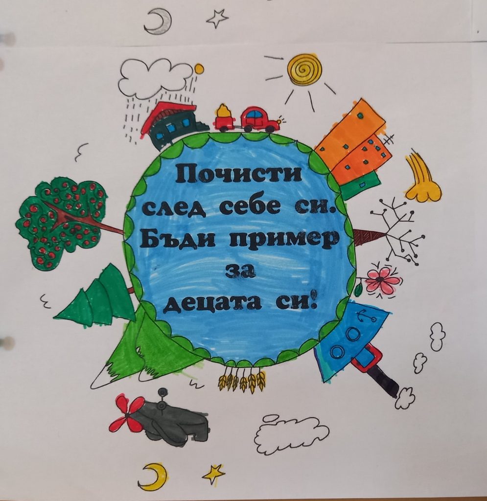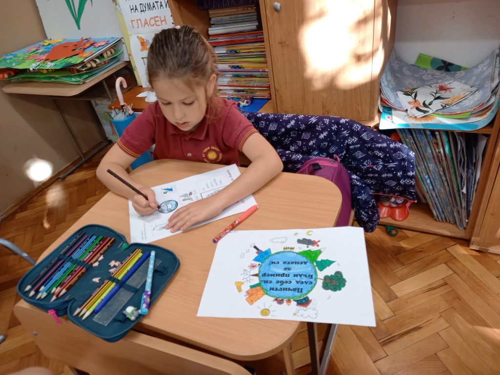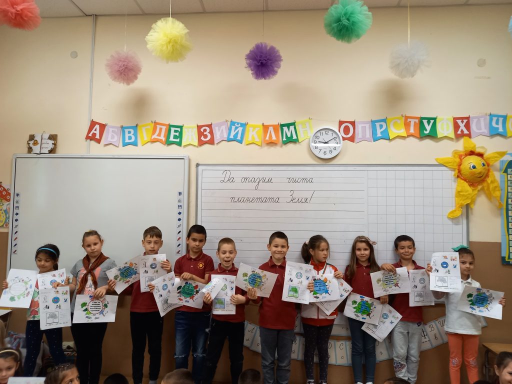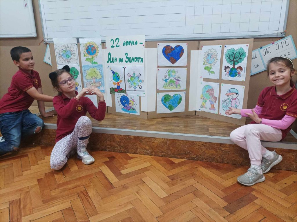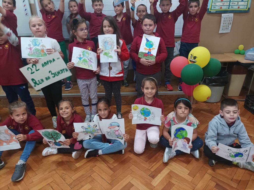 Учениците от 1. А клас отбелязаха Деня на Земята, като си припомниха колко е важно опазването на околната среда. Разговаряха как нашата планета страда от мръсния въздух, от боклуците в реките, моретата и океаните, от изсичането на горите и други човешки дейности. Първокласниците се забавляваха с оцветяване и пеене на песни, посветени на опазването на природата и посочиха примери за това как можем да помогнем на Земята да е чиста: разделно да събираме отпадъци и да ги изхвърляме на определените места; да посадим дърво; да се движим повече с велосипед или пеша, за да не замърсяваме въздуха с изгорелите газове от автомобилите. Припомниха си добрия пример от наскоро проведения туристически поход до хижа „Божур“ . Под ръководството на класния ръководител Розалия Нанкова и учителя ЦДО Нели Събева учениците от 1. А клас изработиха тематичен кът и отбелязаха, че Земята е нашият дом и нейното бъдеще зависи от нас.