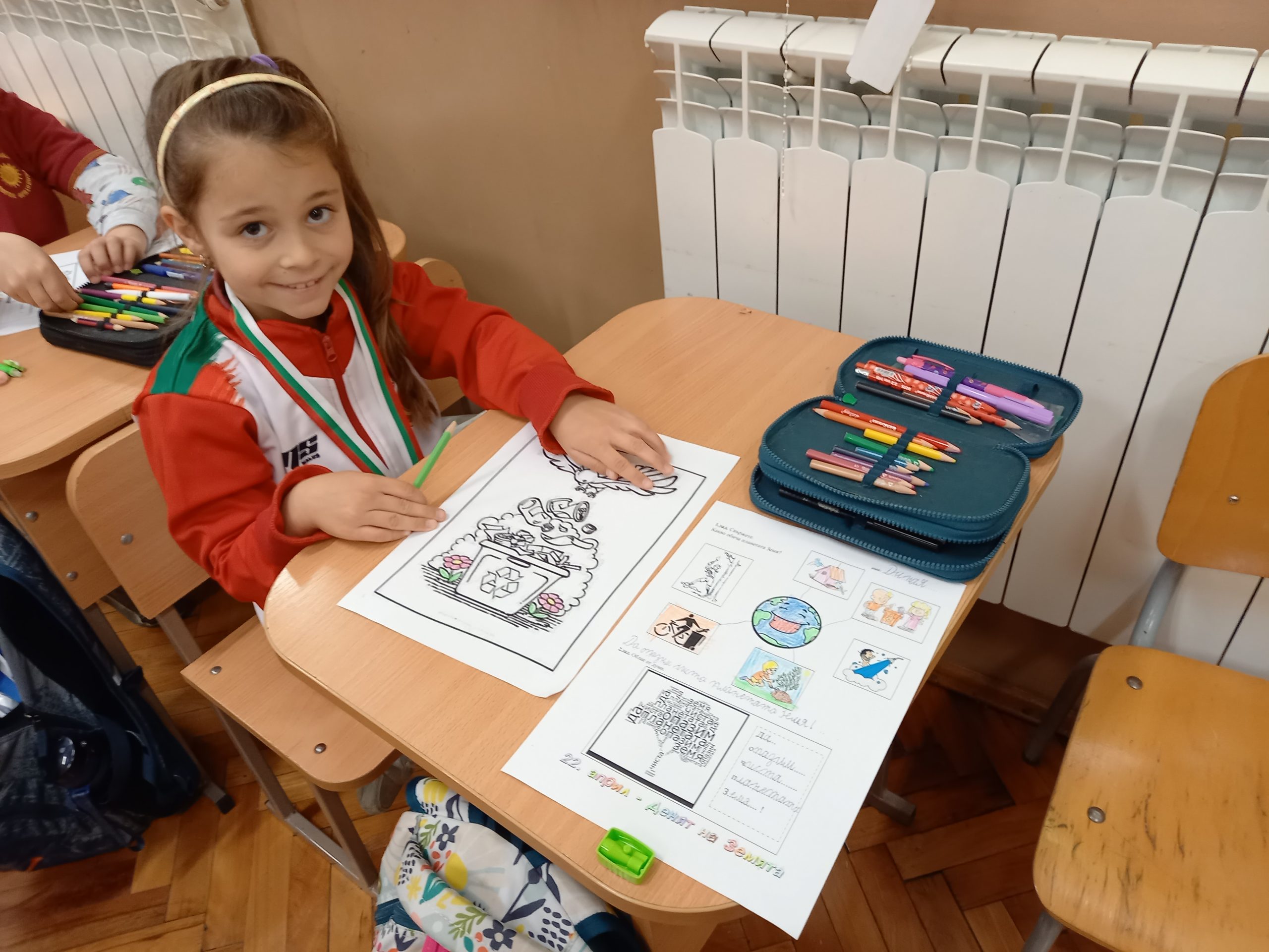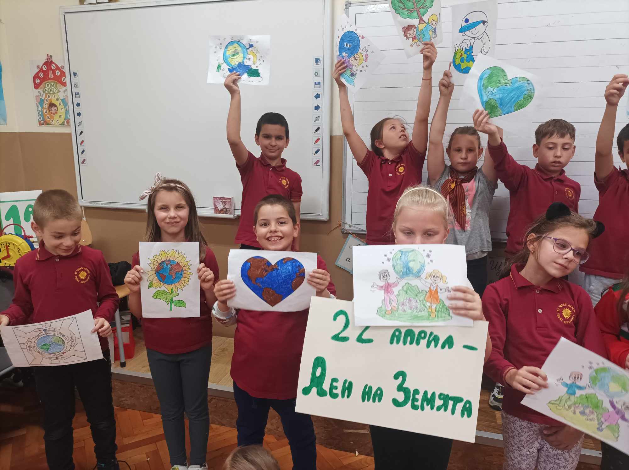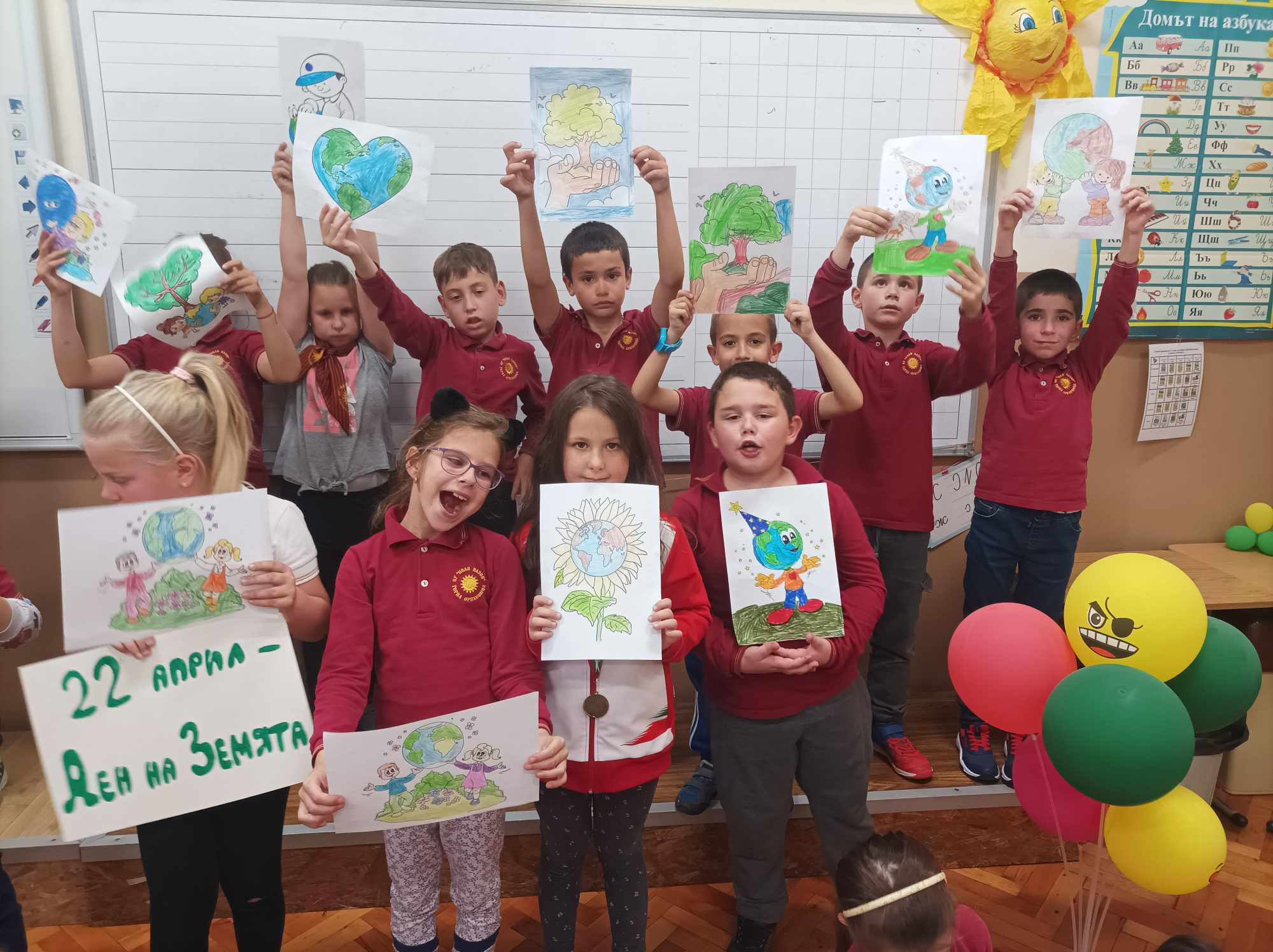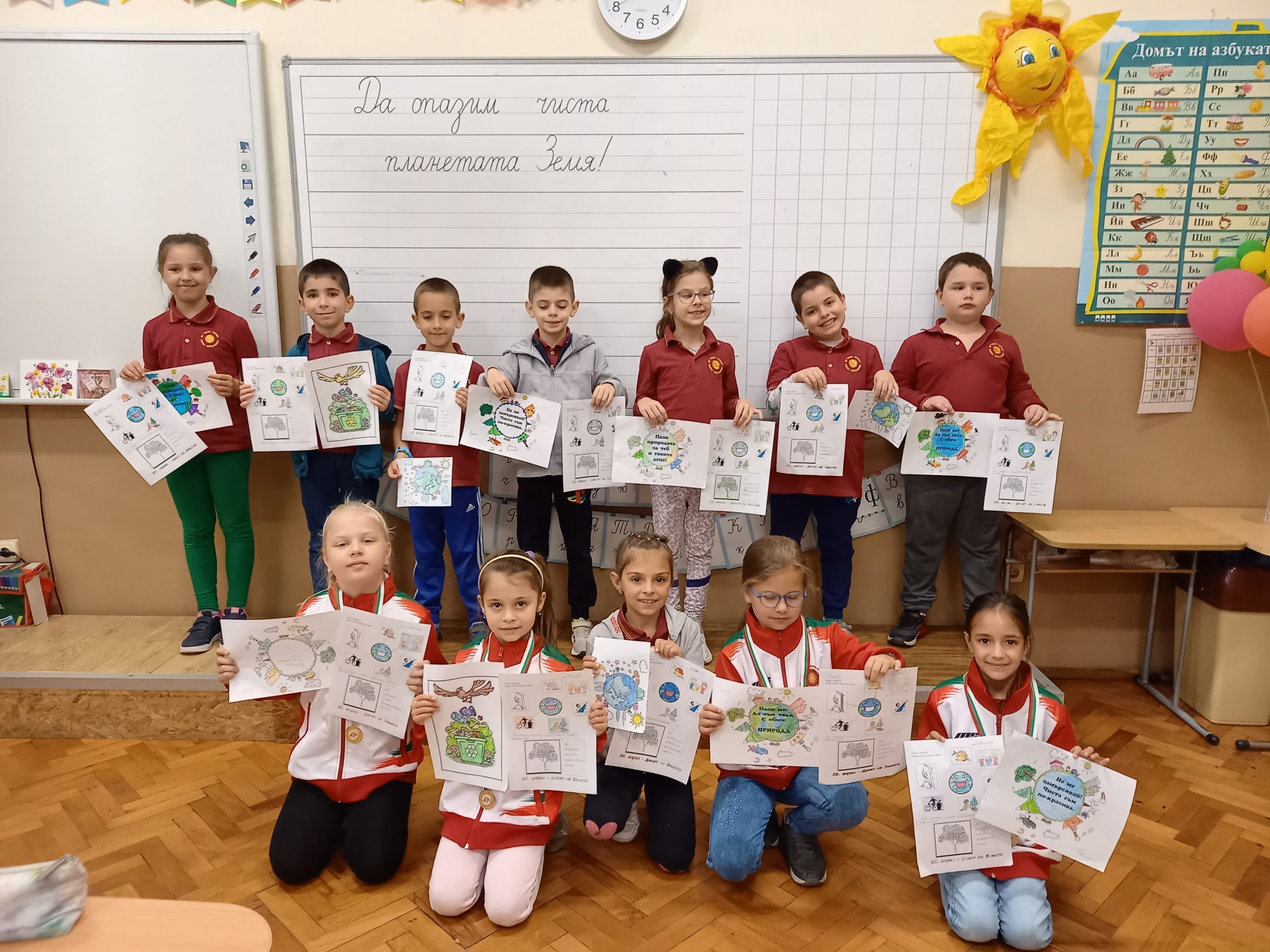 Учениците от 1. А клас отбелязаха Деня на Земята, като си припомниха колко е важно опазването на околната среда. Разговаряха как нашата планета страда от мръсния въздух, от боклуците в реките, моретата и океаните, от изсичането на горите и други човешки дейности. Първокласниците се забавляваха с оцветяване и пеене на песни, посветени на опазването на природата и посочиха примери за това как можем да помогнем на Земята да е чиста: разделно да събираме отпадъци и да ги изхвърляме на определените места; да посадим дърво; да се движим повече с велосипед или пеша, за да не замърсяваме въздуха с изгорелите газове от автомобилите. Припомниха си добрия пример от наскоро проведения туристически поход до хижа „Божур“ . Под ръководството на класния ръководител Розалия Нанкова и учителя ЦДО Нели Събева учениците от 1. А клас изработиха тематичен кът и отбелязаха, че Земята е нашият дом и нейното бъдеще зависи от нас.