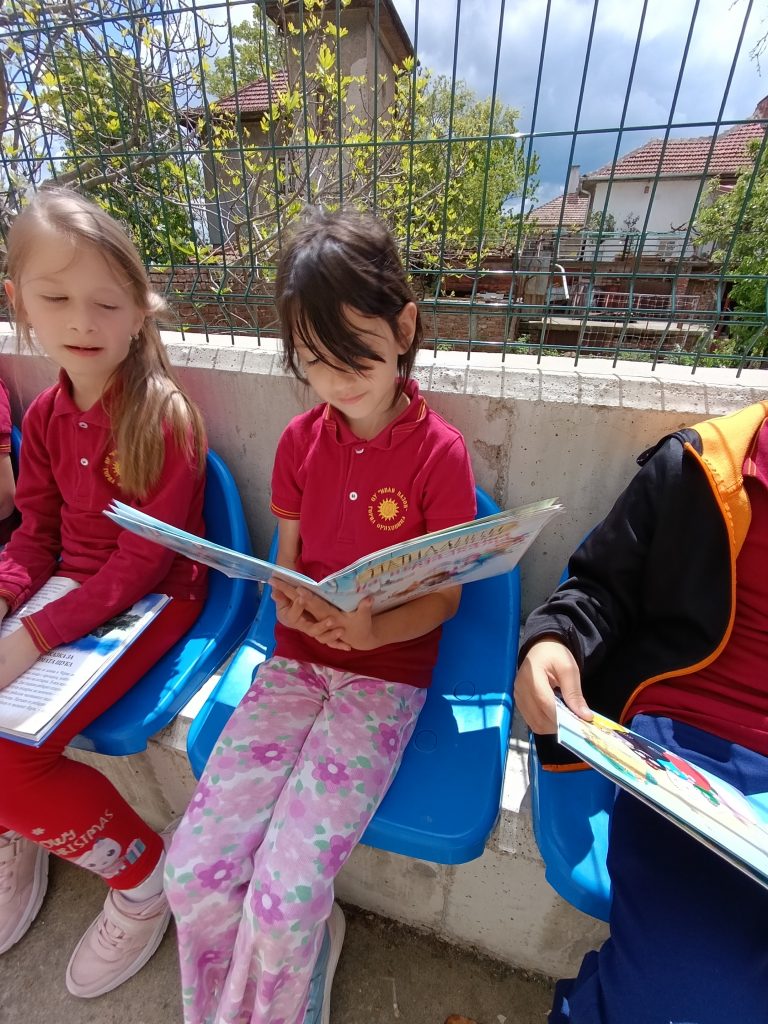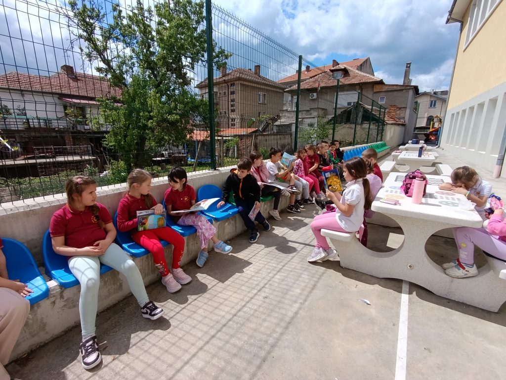 Световният ден на книгата и авторското право беше отбелязан с много настроение от учениците от 1″Б“ клас!Малките читатели се потопиха в света на детските книжки, като с интерес слушаха и четяха любими истории. Денят беше изпълнен с усмивки, въображение и творчество, а вълнението продължи с оцветяване на красиви илюстрации.