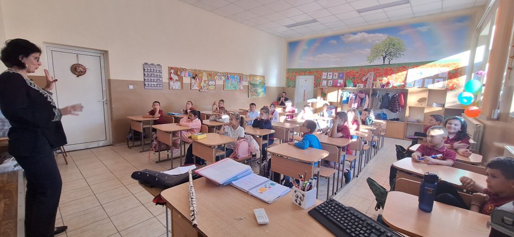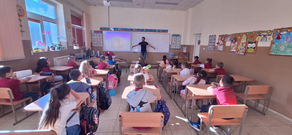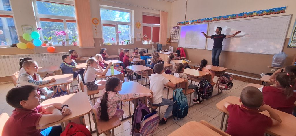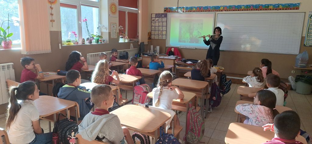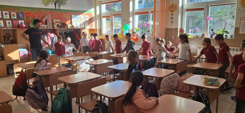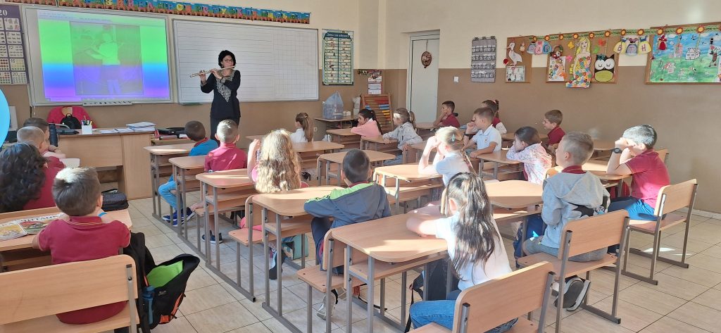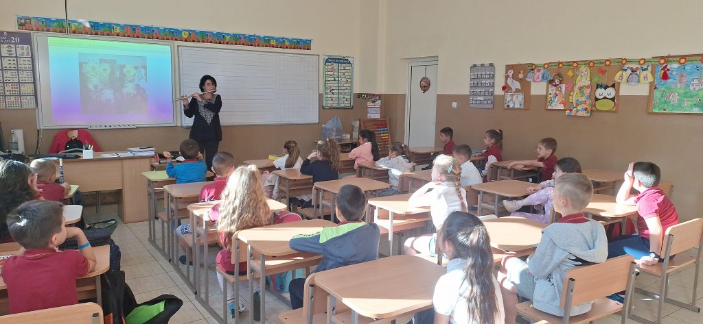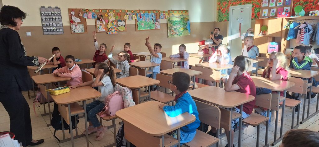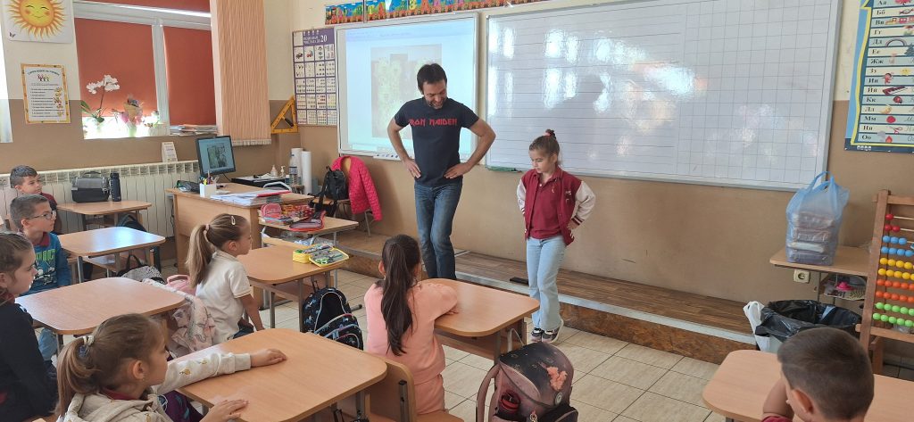 В месеца на кариерното ориентиране родители посещават ученици и разказват за своите професии. На 15.04.2024 г. в 1. Б клас гости бяха Марияна Стефанова – артист-хорист в МДТ „Константин Кисимов“, гр. Велико Търново и Павлин Стайков – професионален танцьор в ПФА „Искра“, гр. Велико Търново. Те разказаха на учениците за своите професии, как са ги избрали и защо. Г-жа Стефанова показа, че освен хорист, тя свири и на музикален инсрумент – флейта. Започнала е още от дете и тогава е разбрала, че музиката е нейната страст. Учениците бяха много развълнувани от посещението, слушаха с интерес, успяха да се докоснат до флейтата и изслушаха няколко произведения изсвирени от гостенката. Заедно изпяха песента „Празник на буквите“, а г-жа Стефанова им изпя малка част от репертоара си, за да чуят как звучи оперното пеене. От своя страна г-н Стайков им разказа за фолклорните области в България, показа им основни стойки, с които са характерни танците в тези области и поведе едно право хорце заедно с учениците. Имаше беседа на тема народни танци, както и демонстрация на стъпки. Посещението беше много интересно и учениците бяха развълнувани, че виждат по-различни професии от тези, за които предимно са чували. Тяхната учителка-Гергана Манчева обеща, че няма да спре да им показва и разказва за българския фолклор.