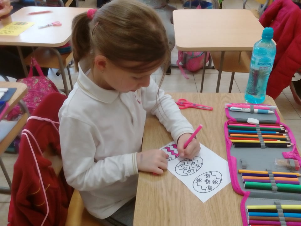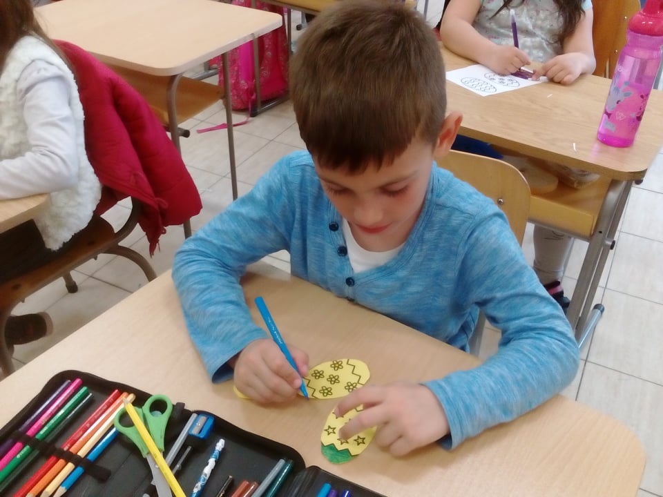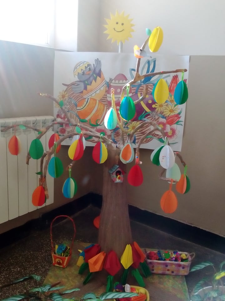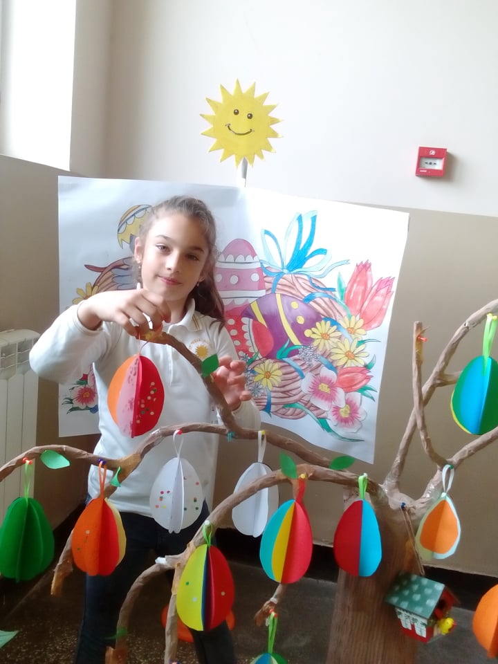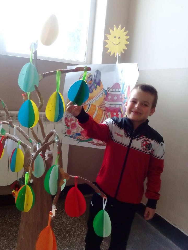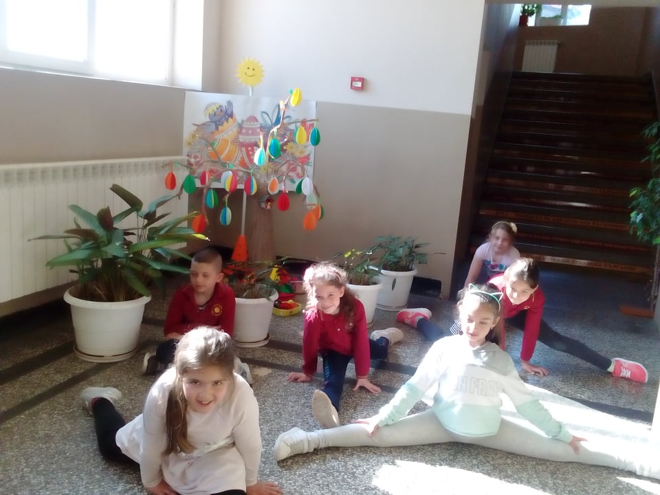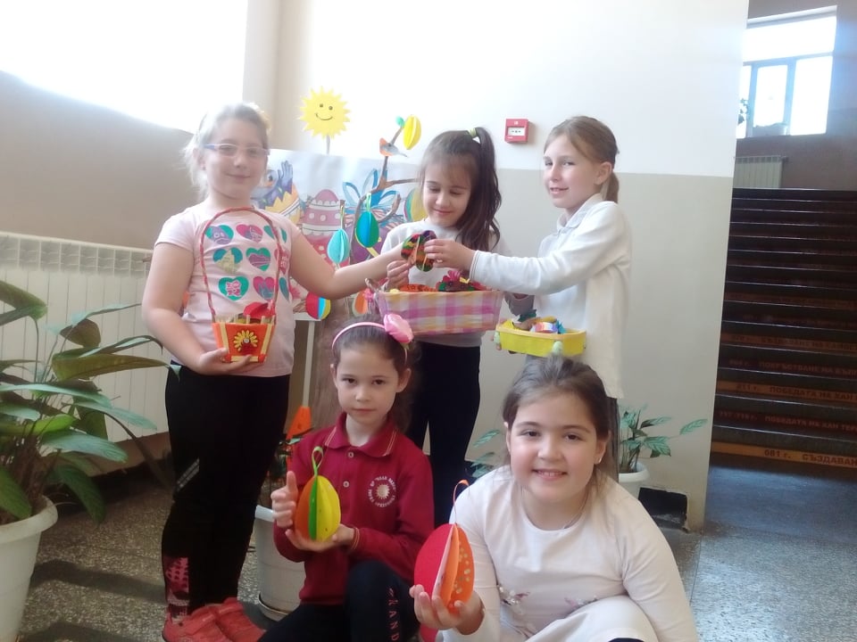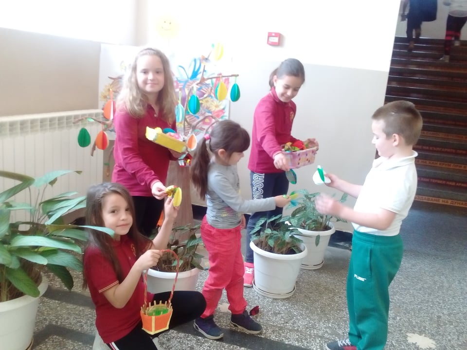 С много ентусиазъм и креативност учениците от 1″А“ клас и деца от ПГ изработиха великденски яйца. Оформиха кът с великденско дърво и пълни кошнички с яйца. Въодушевени от предстоящия празник дори се бориха с книжните яйца и показаха гимнастически умения. Подготовката за празника ще продължи и утре с участието на родителите.