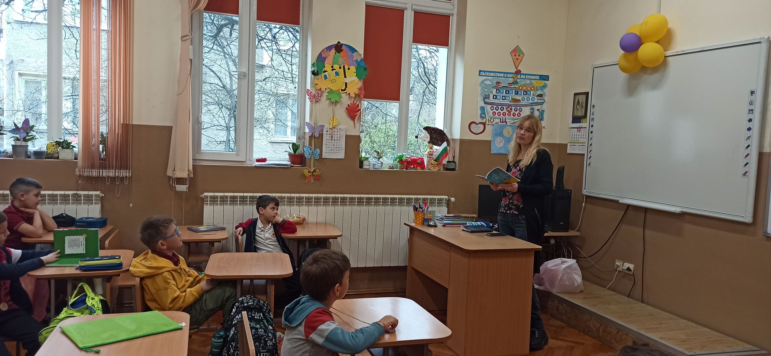 В международния ден на детската книга на гости на учениците от I „В“ клас беше поетесата от Горна Оряховица Ивелина Семова. Гостенката представи новата си стихосбирка, посветена на децата. Сподели спомени от своето детство, вдъхновили много от творбите в книгата. С умиление и обич към децата прочете някои от стиховете си. Посъветва ги винаги да имат до себе си любимата книга като скъп и верен приятел. На раздяла поднесе като общ подарък за класа своята стихоссбирка „Детенце, все си ти“, рисунки на пролетни цветя, които са част от илюстрациите и личен подарък за всеки първокласник. С обща снимка запечатахме хубави моменти от гостуването на писателката и обещанието и отново да ни посети със следващата си книга с приказки, която подготвя.