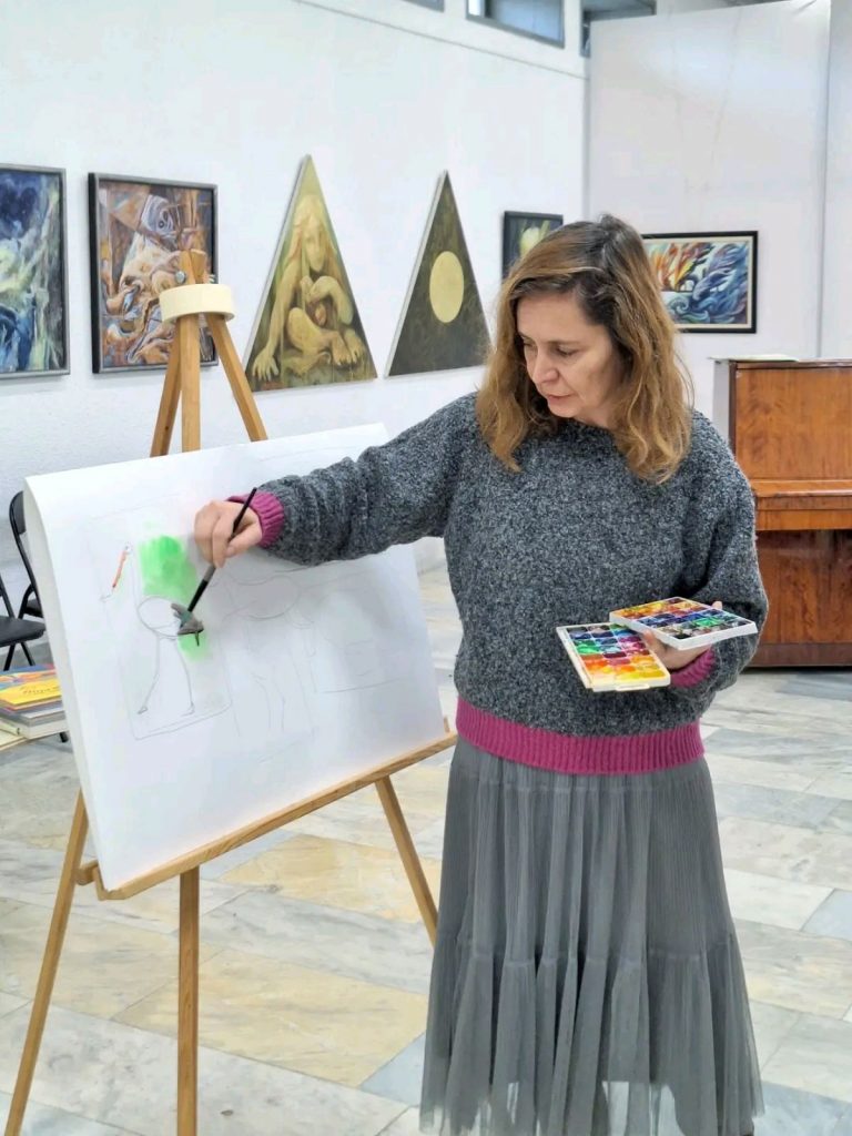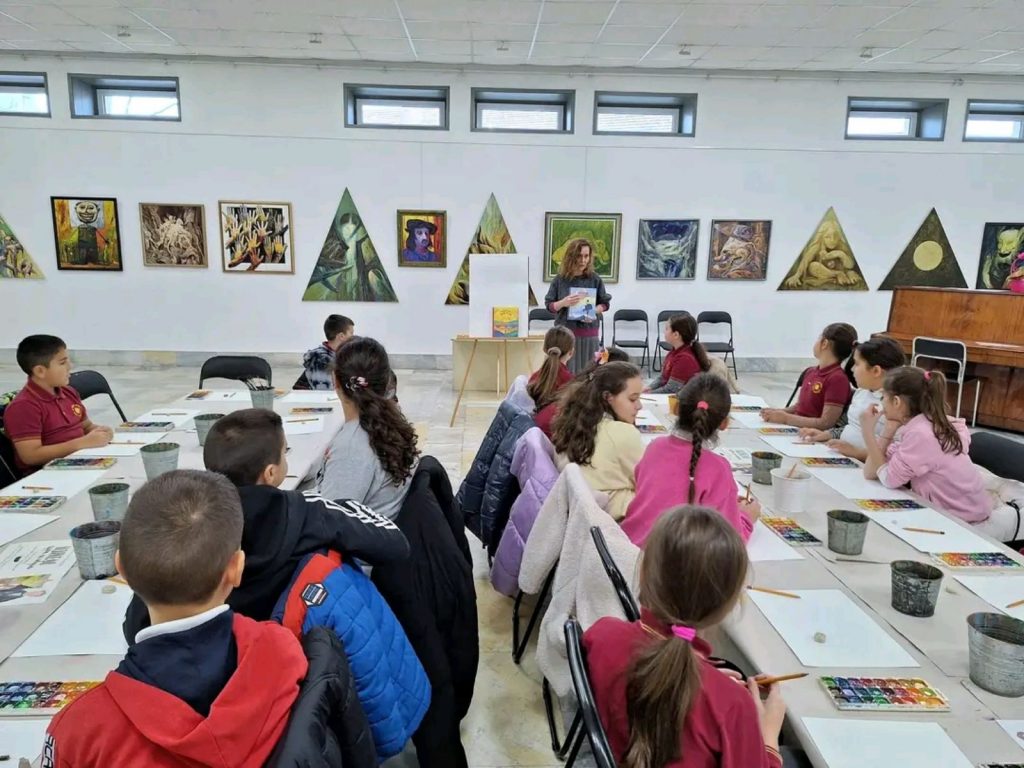 Увлекателна и изпълнена с емоции, първата среща на деца от Горна Оряховица с авторката Кристина Тужарова, остави множество спомени и върволица от съхнещи акварелни рисунки в галерията! Наши специални гости бяха ученици от 4В клас към ОУ „Иван Вазов“, заедно с тяхна малка съученичка от 2А. Рисуването с акварел се превърна в игра на цветовете и формите под вдъхновеното ръководство на гостенката ни. Припомняме, че днес от 11. 00 до 13.00 ч. се проведе първата част от вълнуващата среща с художничката Кристина Тужарова, автор на поредица книги за видни български художници. Провелото се ателие за рисуване с акварелни бои, беше насочено към най-малките, деца над 6 години, чрез което те имаха възможност да се запознаят с личността и изкуството на един от майсторите на българския акварел Константин Щъркелов. Децата се докоснаха до една от най-сложните техники в живописта, но работейки рамо до рамо с Кристина изразиха творческите си заложби по искрен и неповторим начин. Споделяме с вас в снимки малко от вълнуващите моменти от днешния предобед и насочваме внимание към втората част от срещата с гостенката ни Кристина Тужарова, на която големи и малки ще могат да се насладят цялостно на творчеството й.