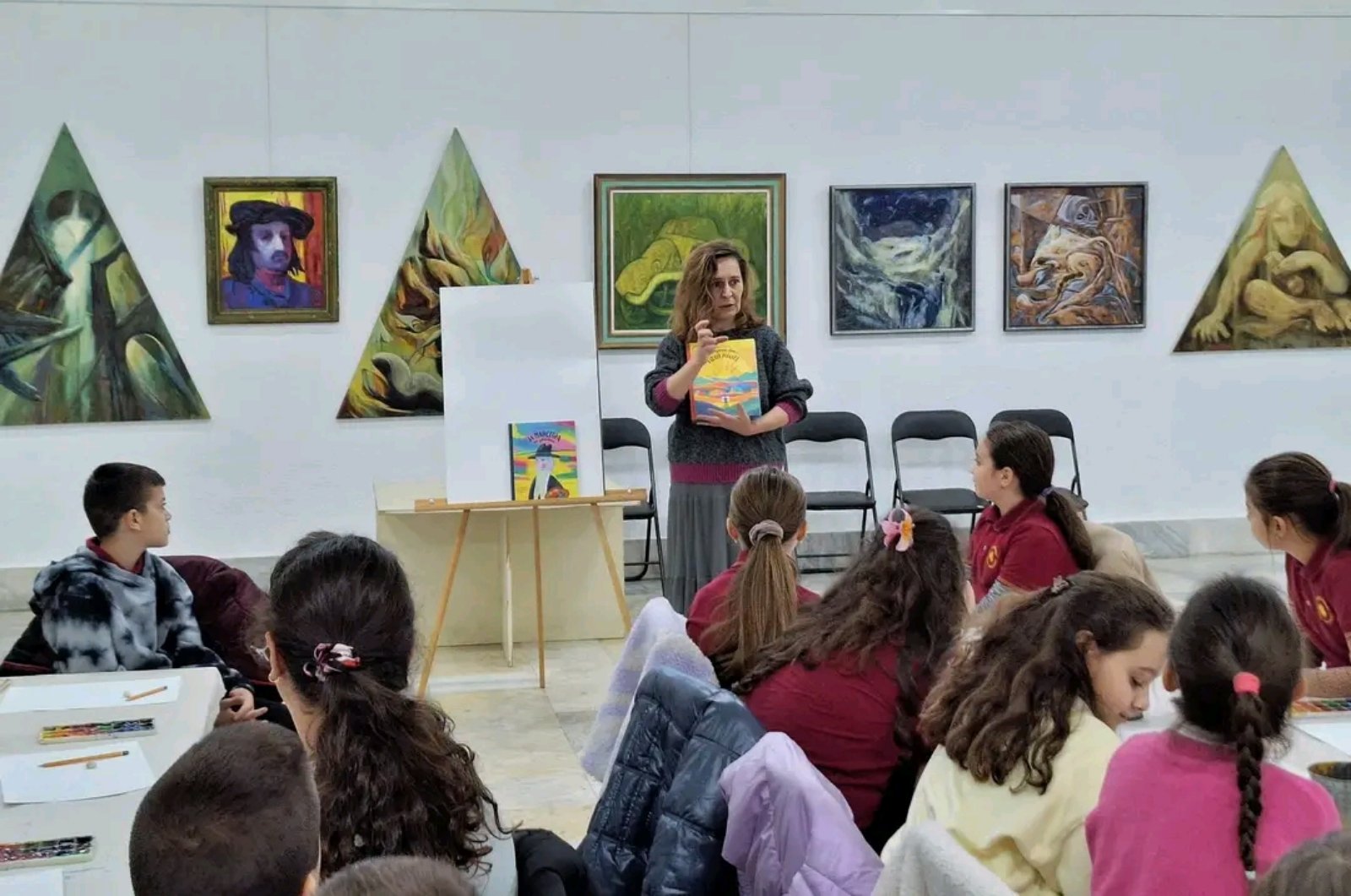 Увлекателна и изпълнена с емоции, първата среща на деца от Горна Оряховица с авторката Кристина Тужарова, остави множество спомени и върволица от съхнещи акварелни рисунки в галерията! Наши специални гости бяха ученици от 4В клас към ОУ „Иван Вазов“, заедно с тяхна малка съученичка от 2А. Рисуването с акварел се превърна в игра на цветовете и формите под вдъхновеното ръководство на гостенката ни. Припомняме, че днес от 11. 00 до 13.00 ч. се проведе първата част от вълнуващата среща с художничката Кристина Тужарова, автор на поредица книги за видни български художници. Провелото се ателие за рисуване с акварелни бои, беше насочено към най-малките, деца над 6 години, чрез което те имаха възможност да се запознаят с личността и изкуството на един от майсторите на българския акварел Константин Щъркелов. Децата се докоснаха до една от най-сложните техники в живописта, но работейки рамо до рамо с Кристина изразиха творческите си заложби по искрен и неповторим начин. Споделяме с вас в снимки малко от вълнуващите моменти от днешния предобед и насочваме внимание към втората част от срещата с гостенката ни Кристина Тужарова, на която големи и малки ще могат да се насладят цялостно на творчеството й.