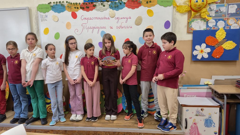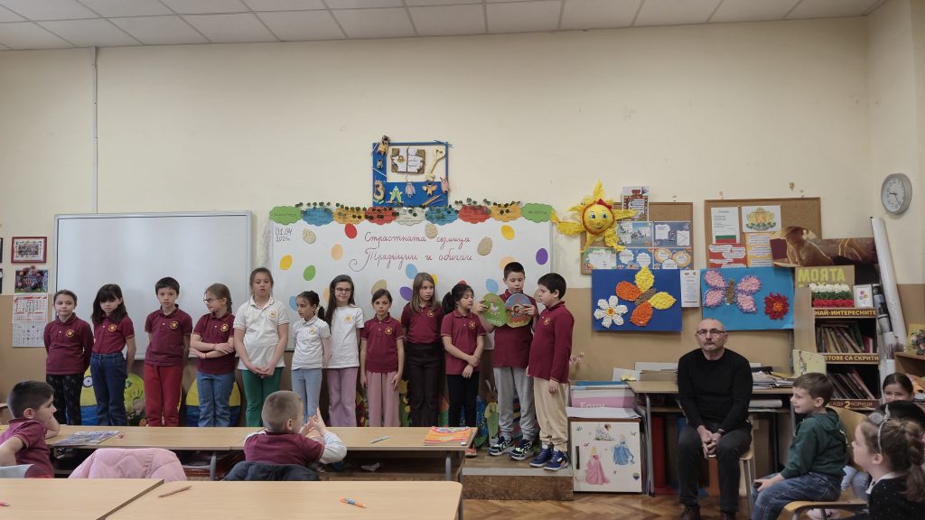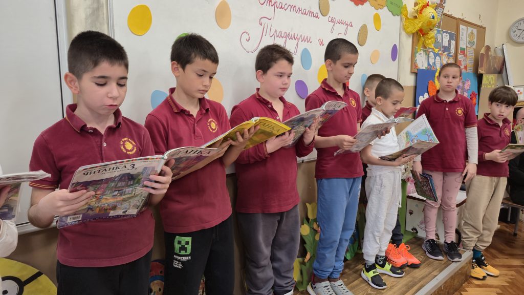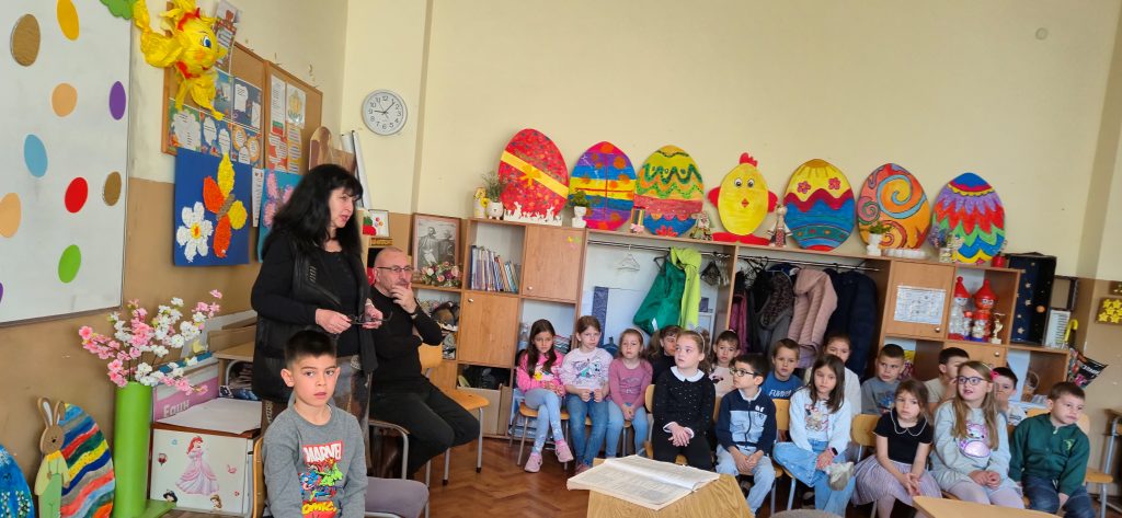 С маратон на четенето отбелязаха Деня на детската книга учениците от 3. А клас, заедно с децата от подготвителната група на училището. Големите ученици прочетаха книжката „Страстната седмица – обичаи и традиции“, както и народни песни за Лазаровден и Цветница. Трима от малчуганите, с помощта на тяхната учителка Валентина Стойкова също прочетоха четиво, свързано с Великденските празници – произведение, което третокласниците от своя страна доразказаха и беседваха каква е поуката от приказката на Светослав Минков „Златното яйце“. За часа третокласниците със своя класен ръководител Розалия Нанкова подготвиха богато украсена стая, подредиха пъзел, решаваха кръстословица, а за отличното си представяне всички участници получиха подарък – яйце, което оцветиха и ще отнесат вкъщи като прекрасен спомен от този урок. Специален гост на събитието беше Директорът на училището – г-н Иван Момъков. Урокът завърши с изпълнение от всички на Великденска песен.