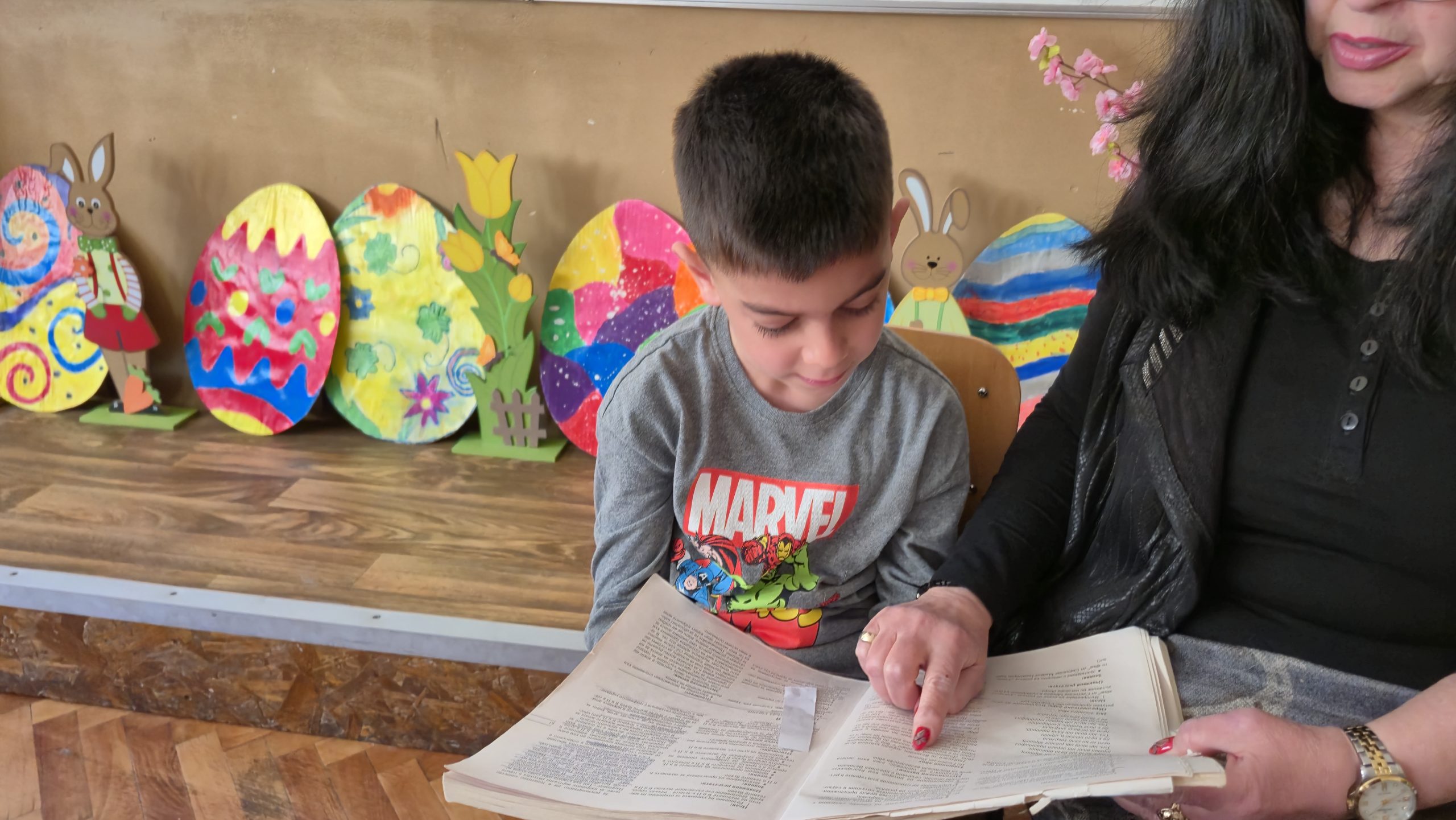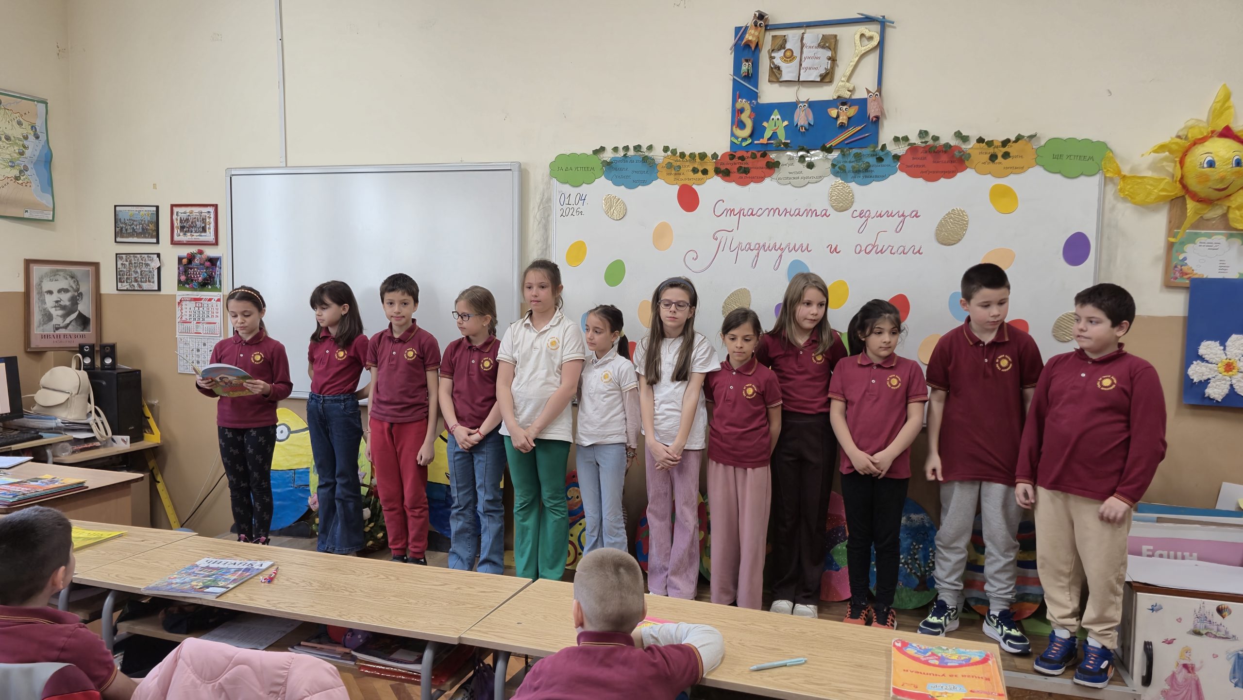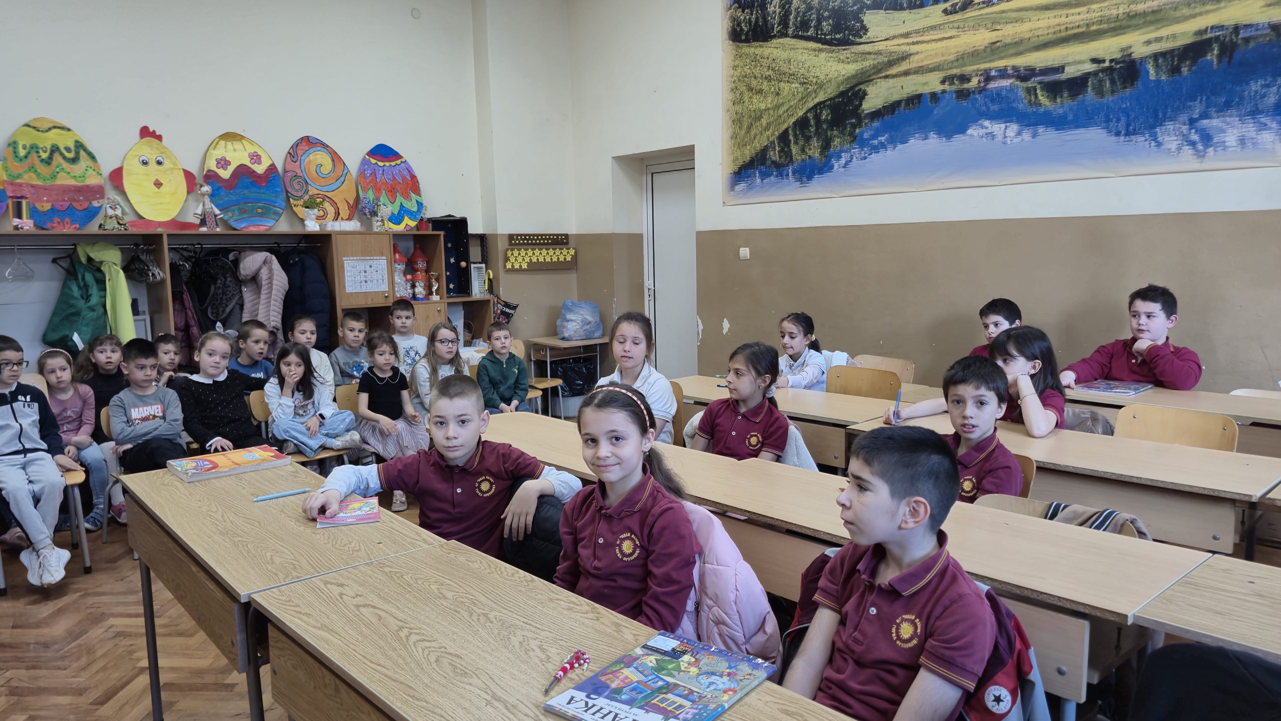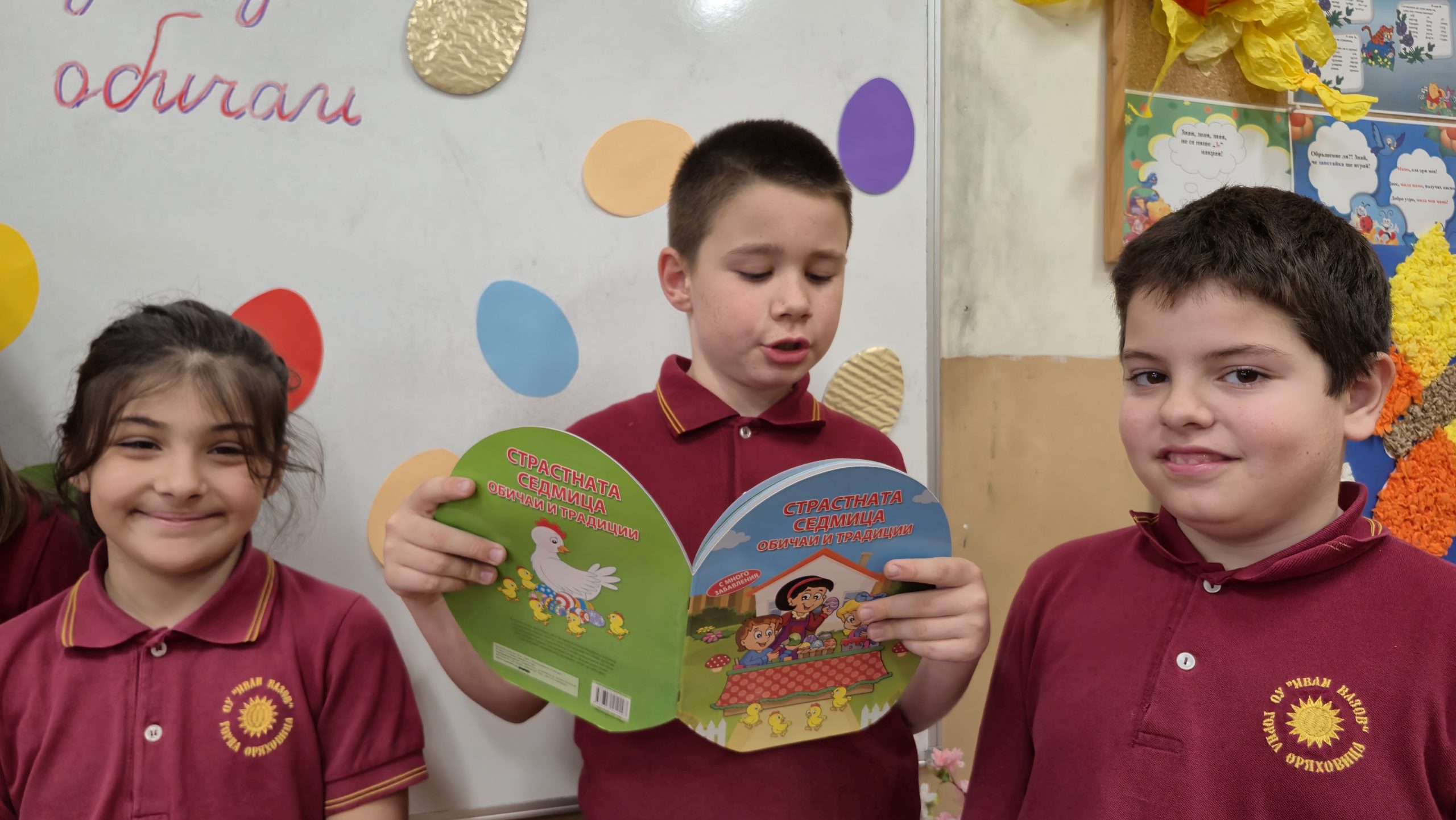 С маратон на четенето отбелязаха Деня на детската книга учениците от 3. А клас, заедно с децата от подготвителната група на училището. Големите ученици прочетаха книжката „Страстната седмица – обичаи и традиции“, както и народни песни за Лазаровден и Цветница. Трима от малчуганите, с помощта на тяхната учителка Валентина Стойкова също прочетоха четиво, свързано с Великденските празници – произведение, което третокласниците от своя страна доразказаха и беседваха каква е поуката от приказката на Светослав Минков „Златното яйце“. За часа третокласниците със своя класен ръководител Розалия Нанкова подготвиха богато украсена стая, подредиха пъзел, решаваха кръстословица, а за отличното си представяне всички участници получиха подарък – яйце, което оцветиха и ще отнесат вкъщи като прекрасен спомен от този урок. Специален гост на събитието беше Директорът на училището – г-н Иван Момъков. Урокът завърши с изпълнение от всички на Великденска песен.